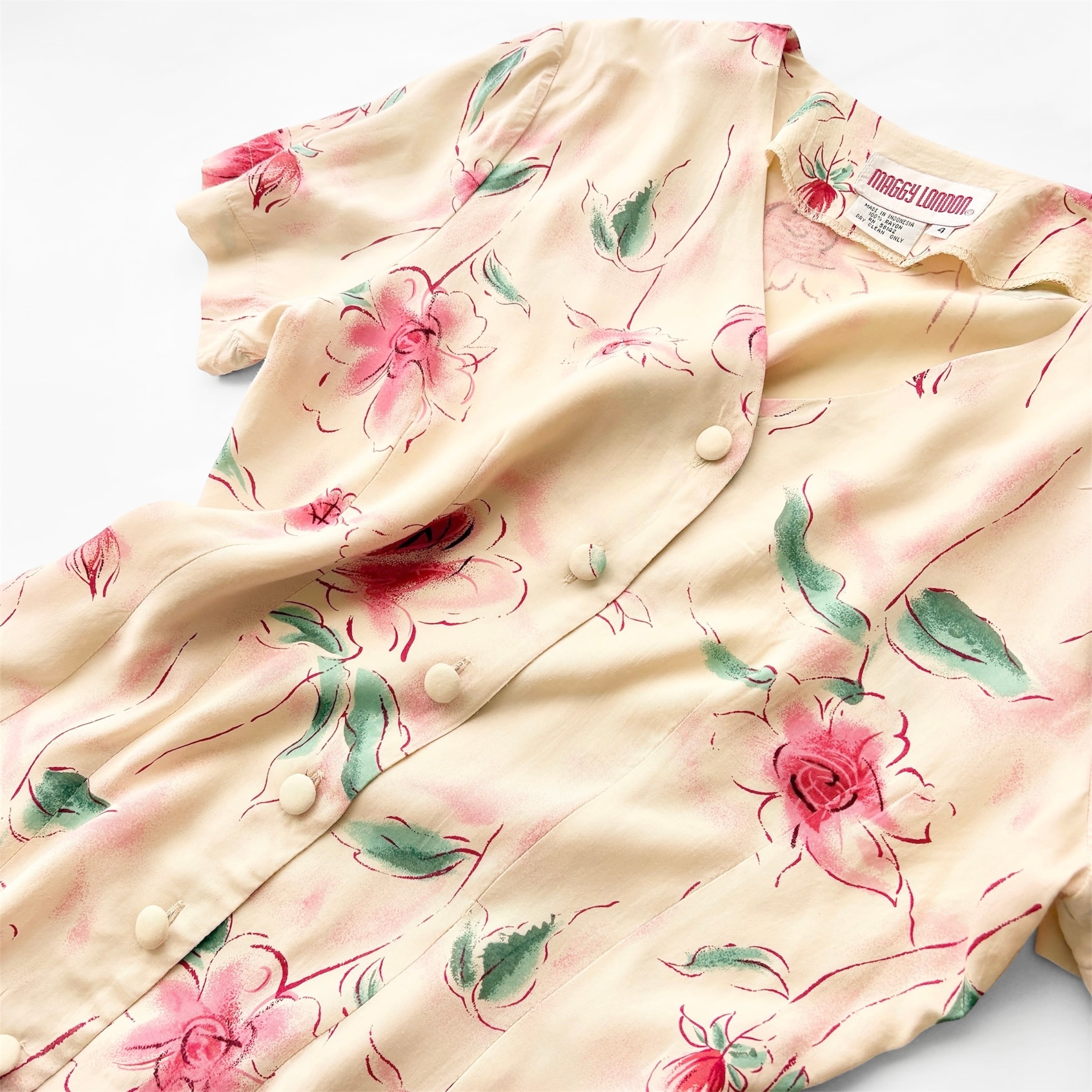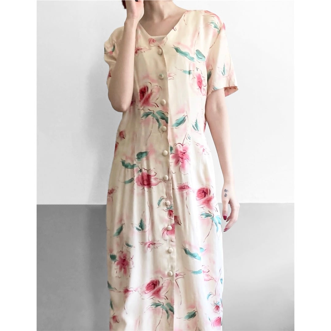 伸びやかなボタニカル柄とレーヨンの落ち感が美しいワンピース。