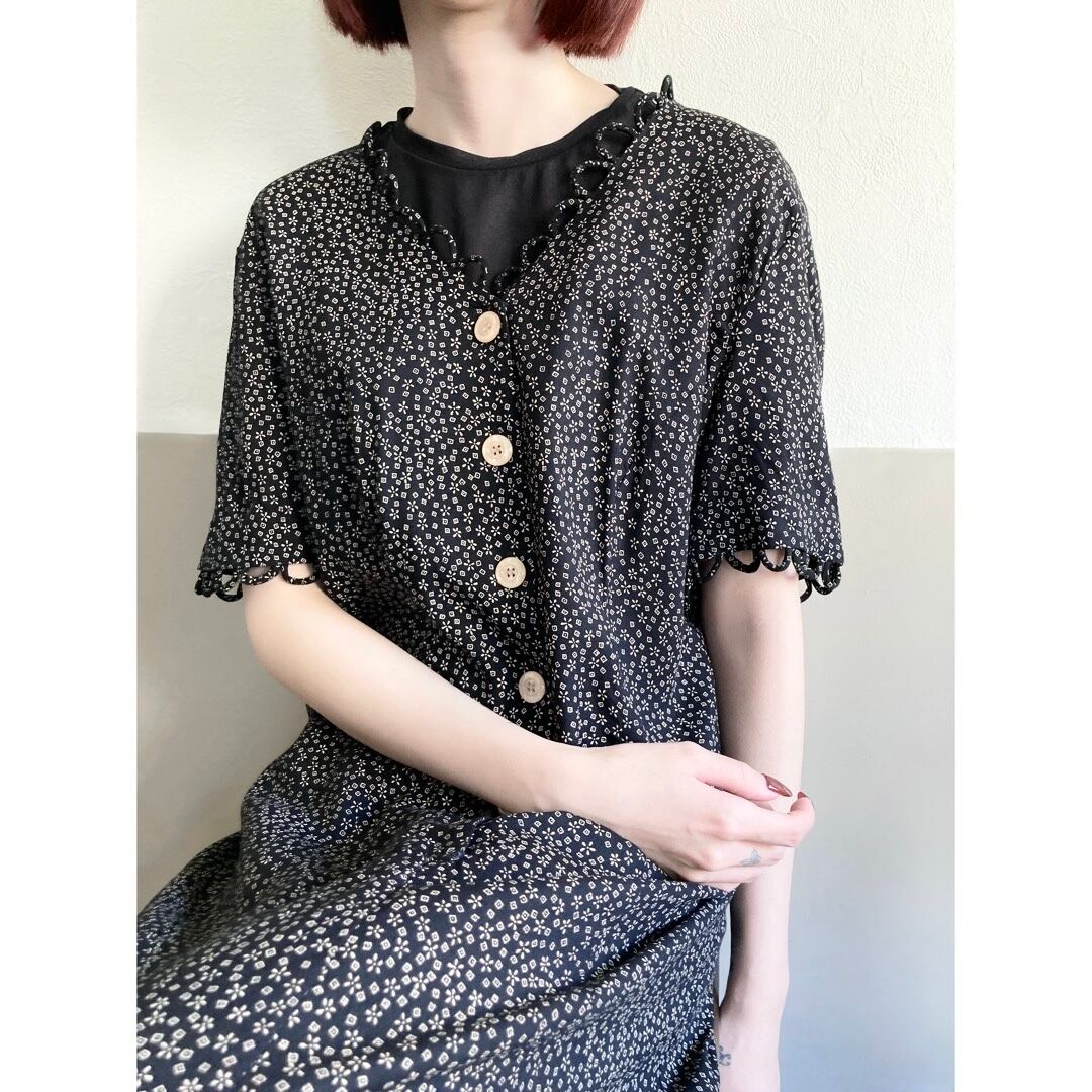 小さなスクエアとフラワーモチーフプリント。