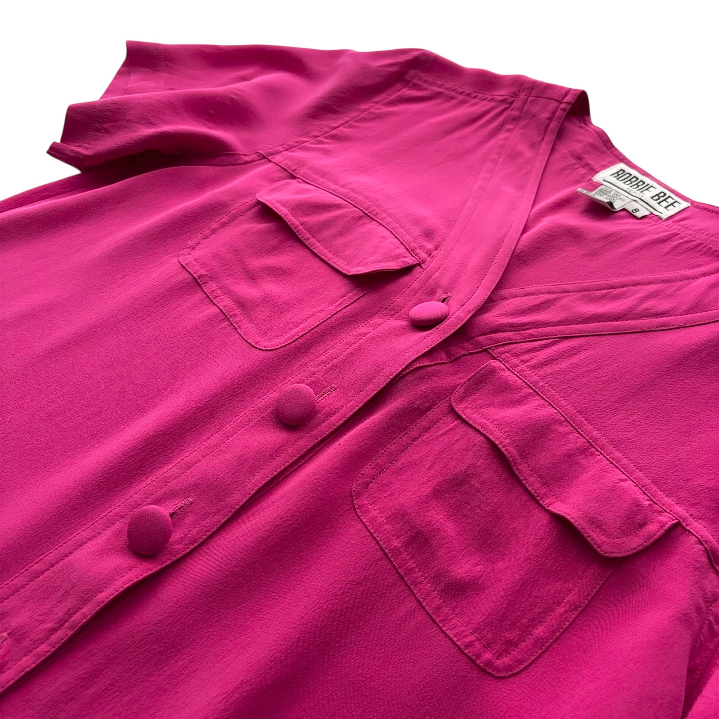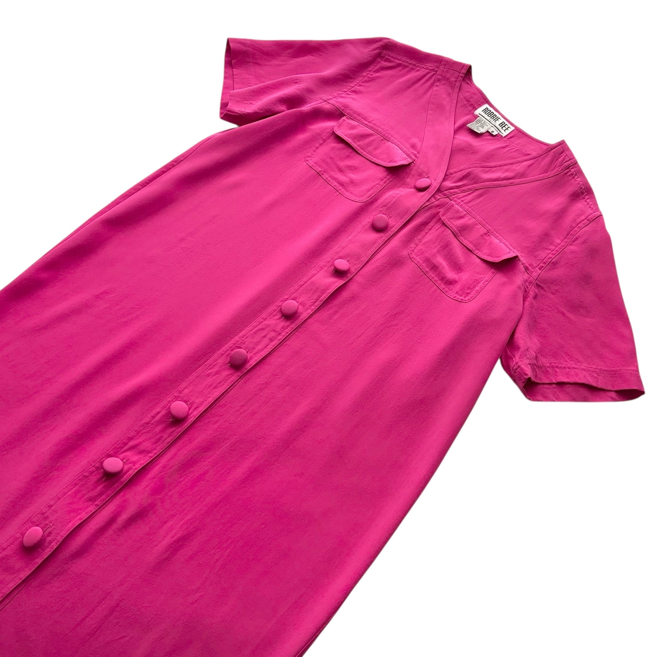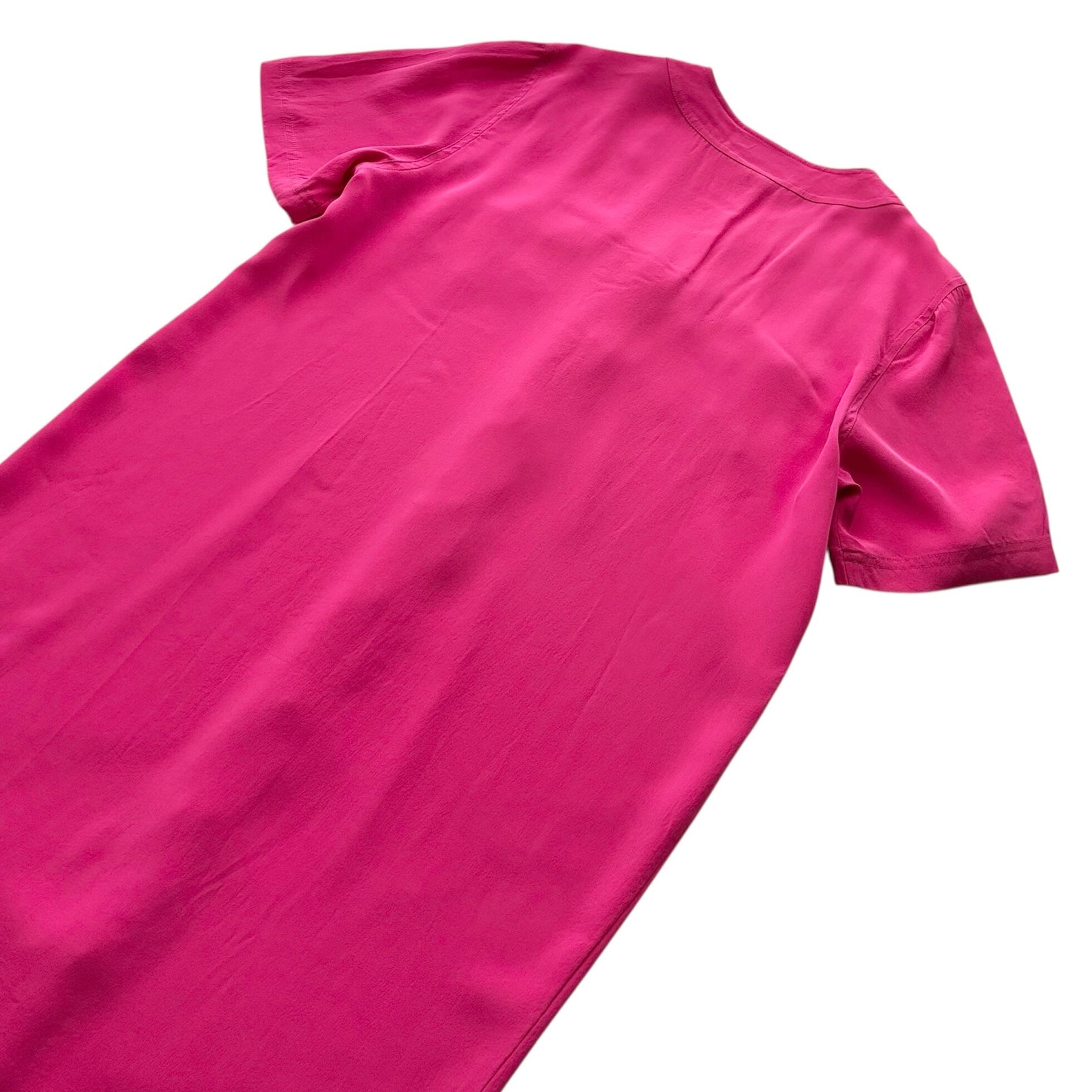 シルクならではの発色の良さが際立つフューシャピンクのワンピース。