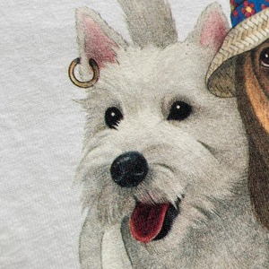 3匹の犬、テリア、バセットハウンド、ボストンテリアでしょうか。
