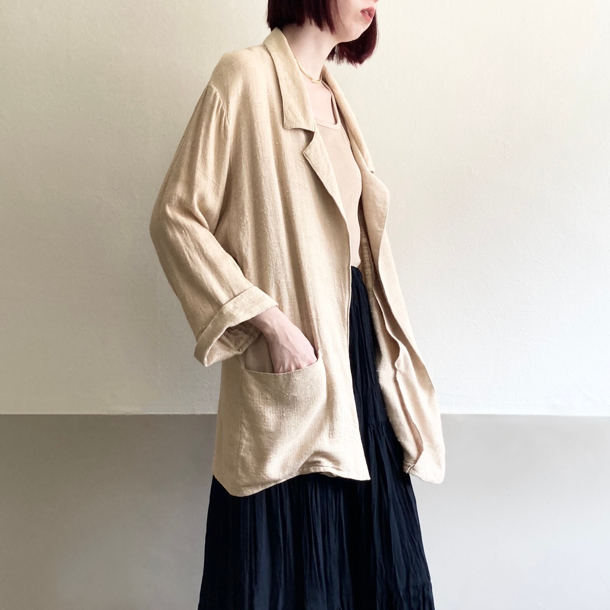 柔らかなレーヨン素材で、独特な落ち感とシルエットが美しいジャケット。
