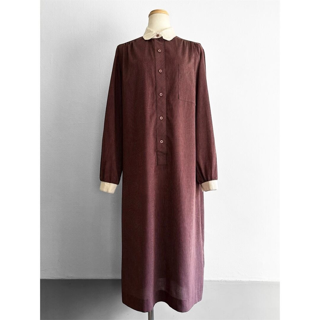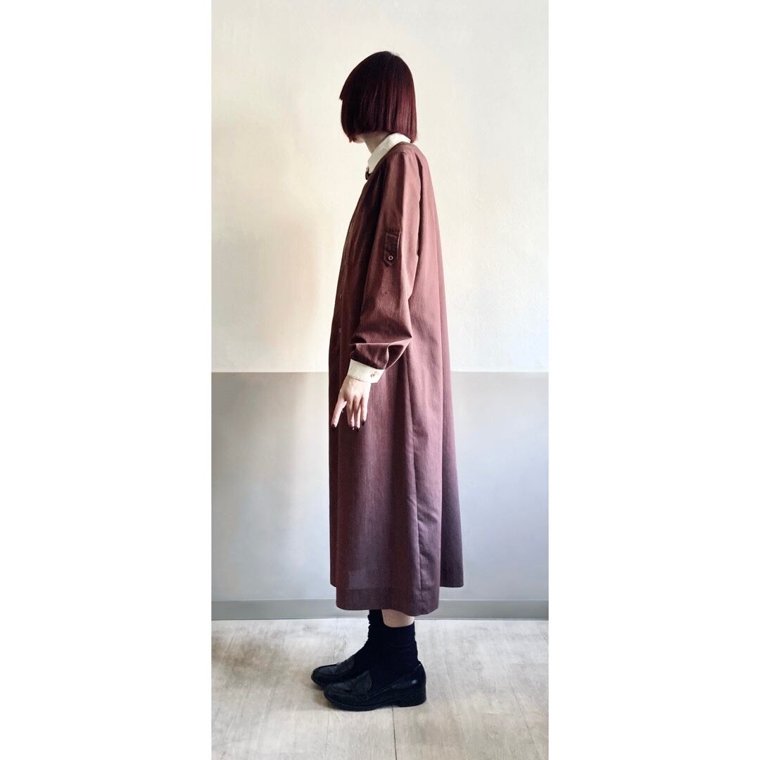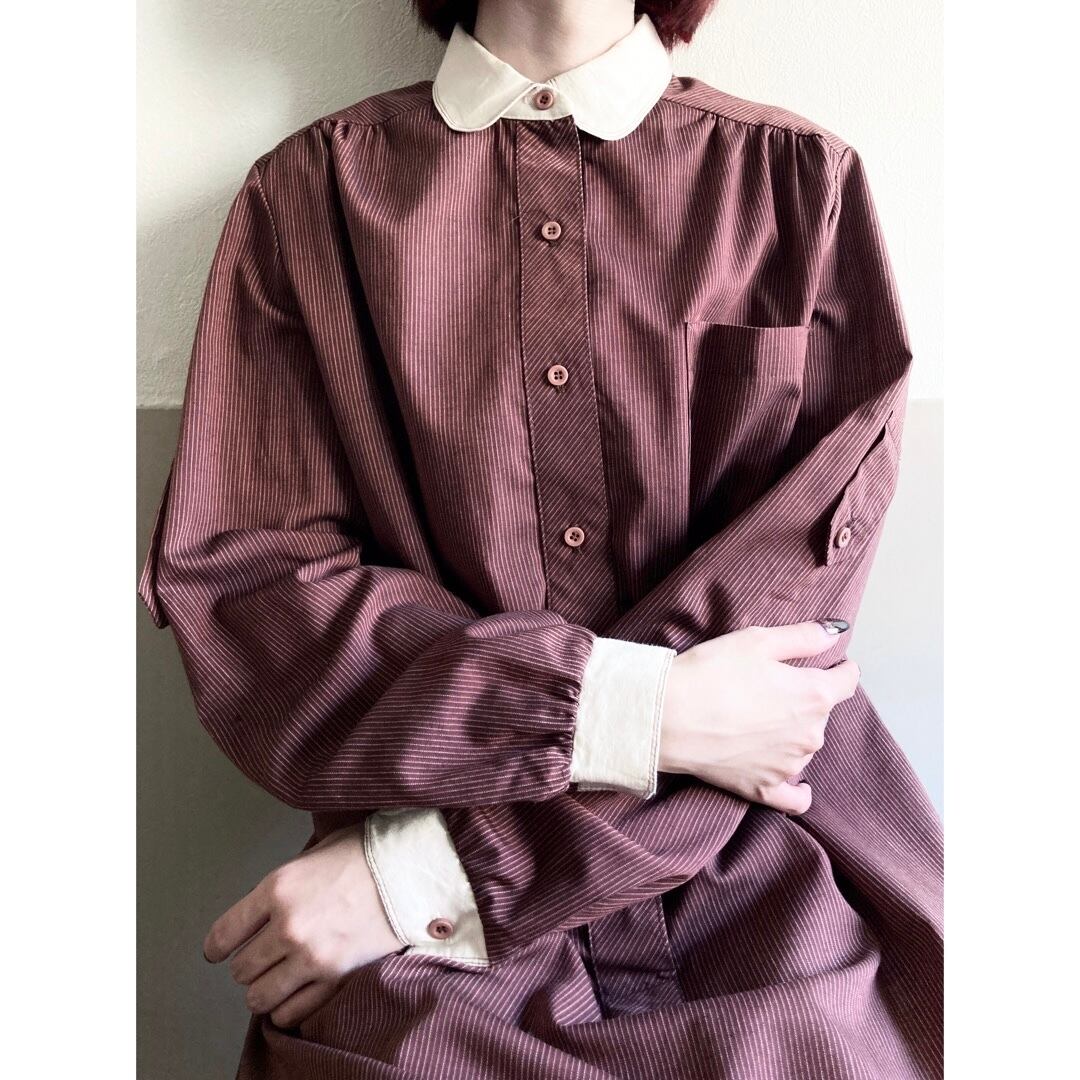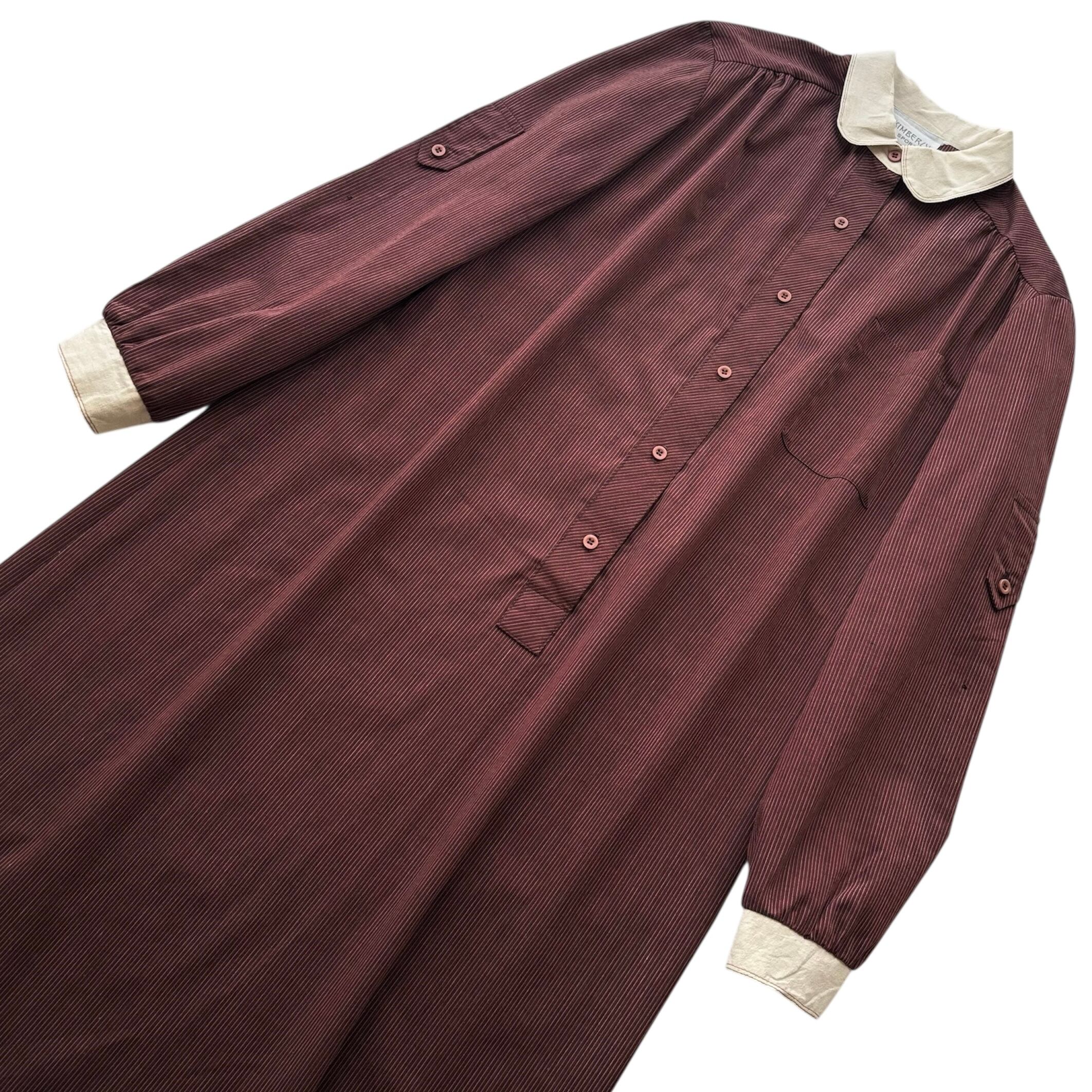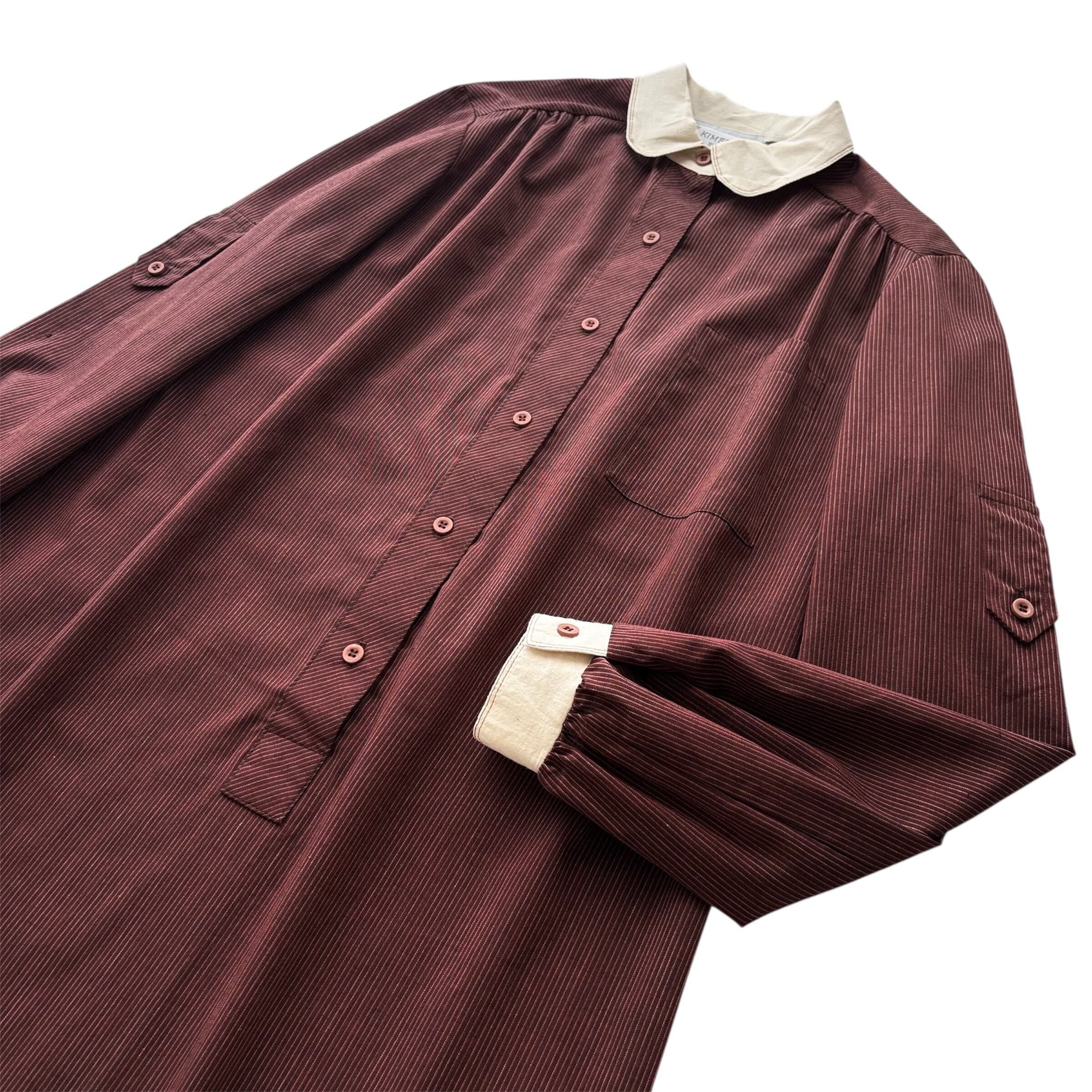 ブラウンベースの細いストライプがクラシカルな印象のシャツワンピース。