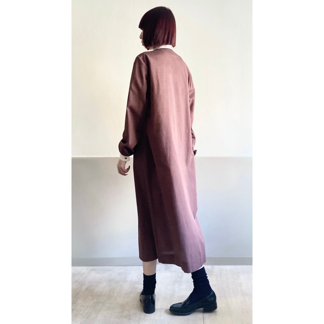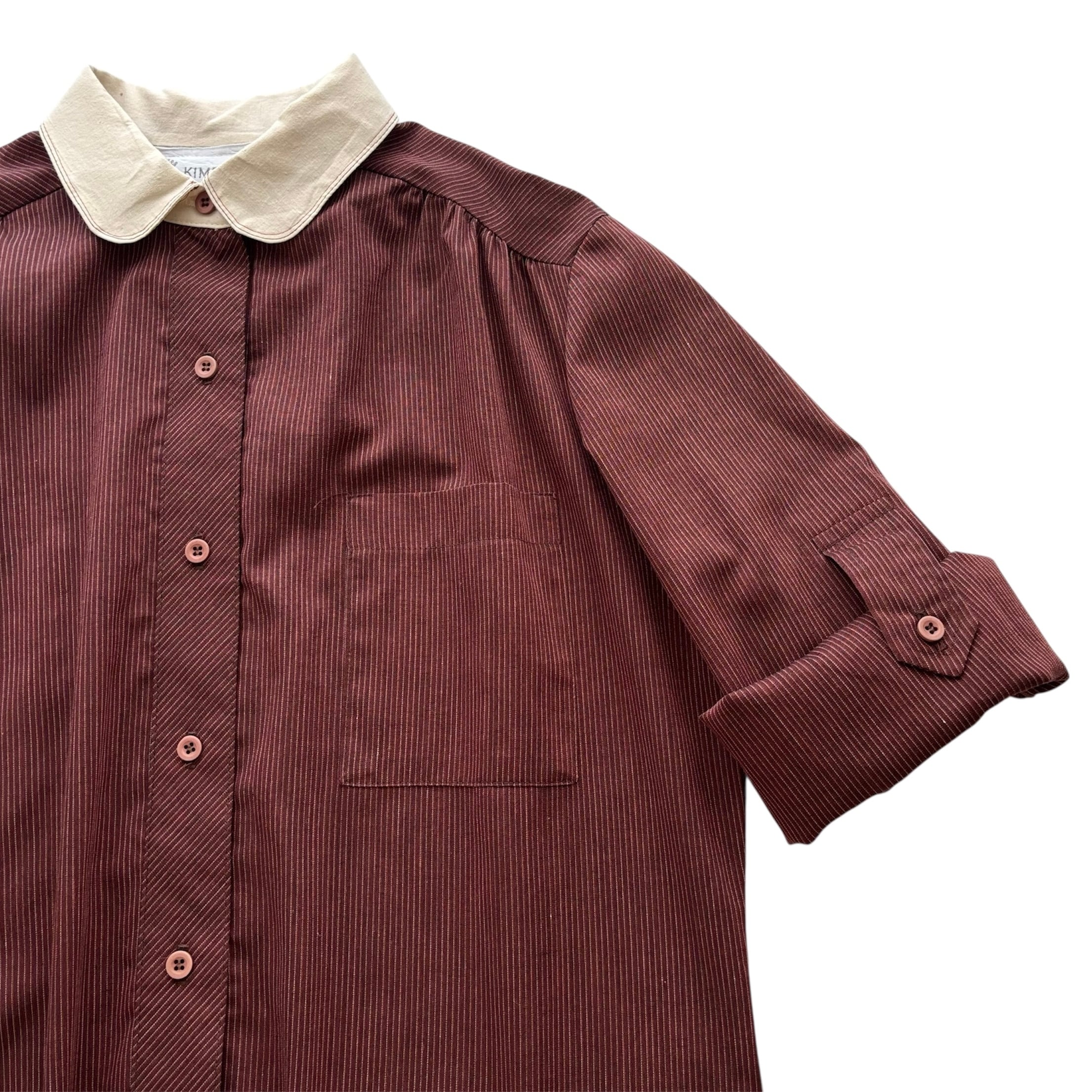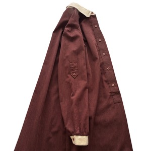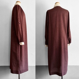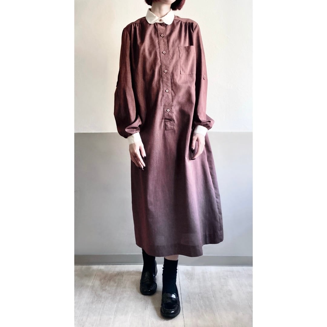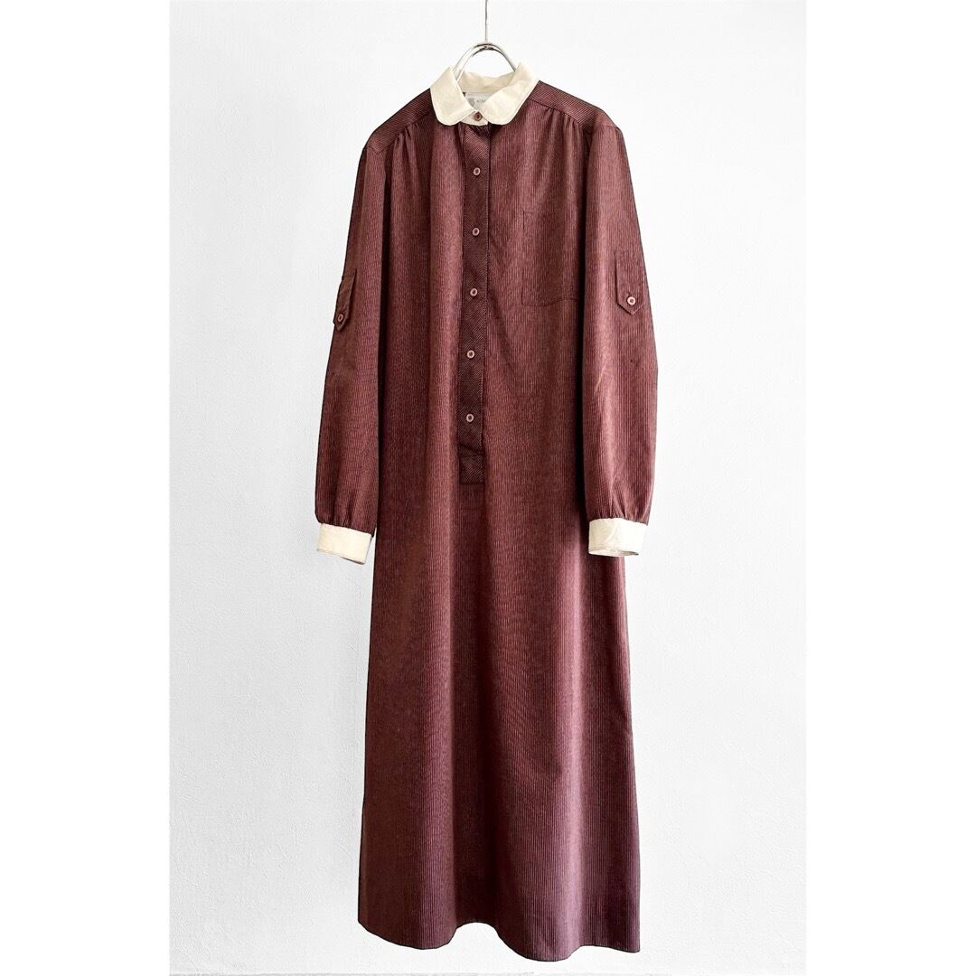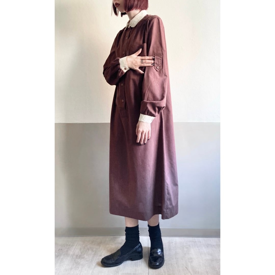 ブラウンベースの細いストライプがクラシカルな印象のシャツワンピース。