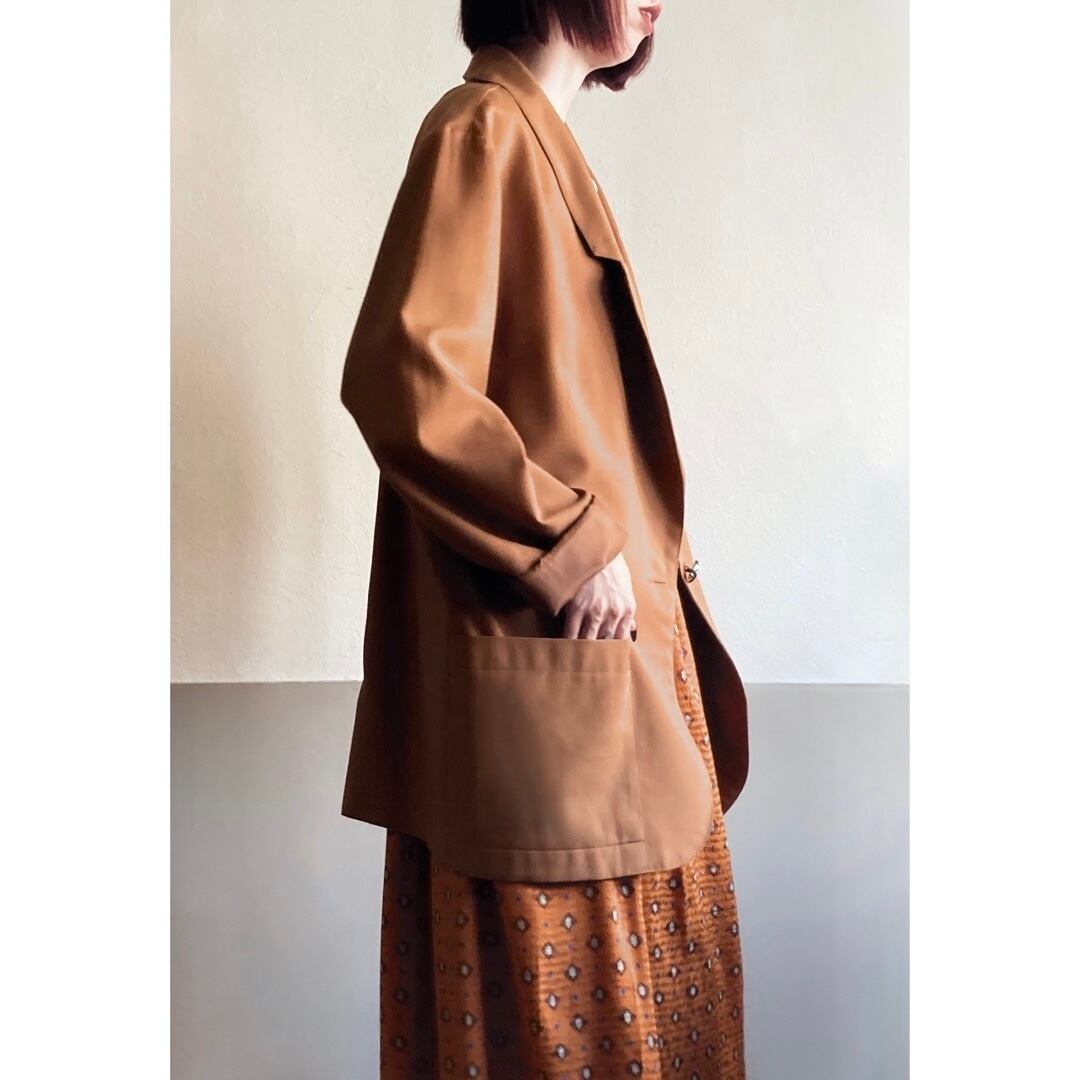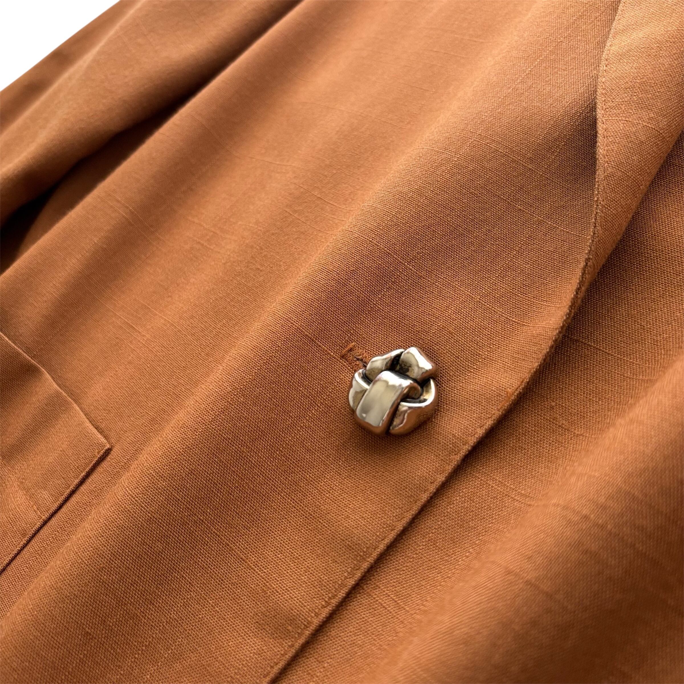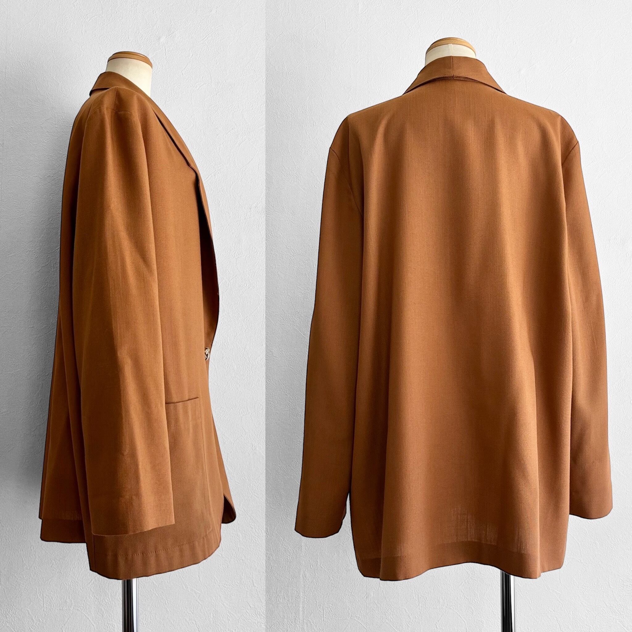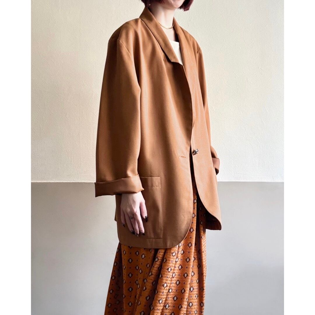 美しいオレンジブラウンが印象的なテイラードジャケット。