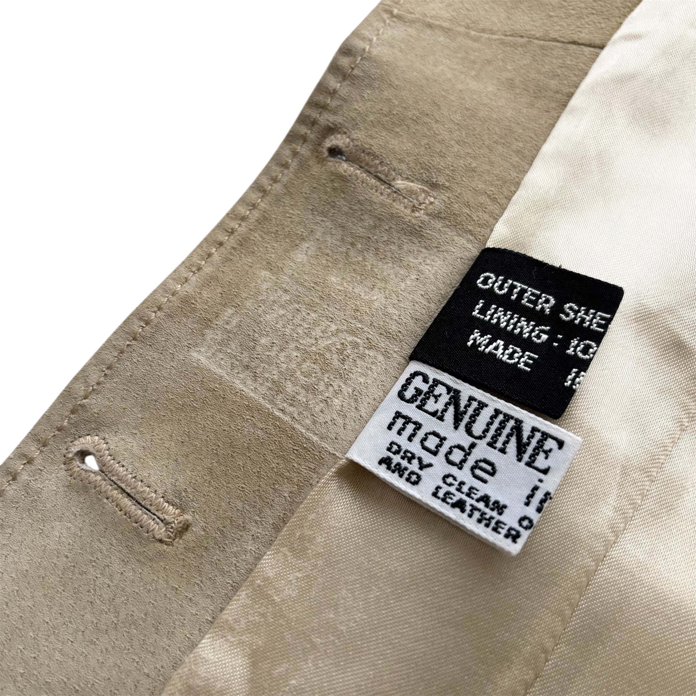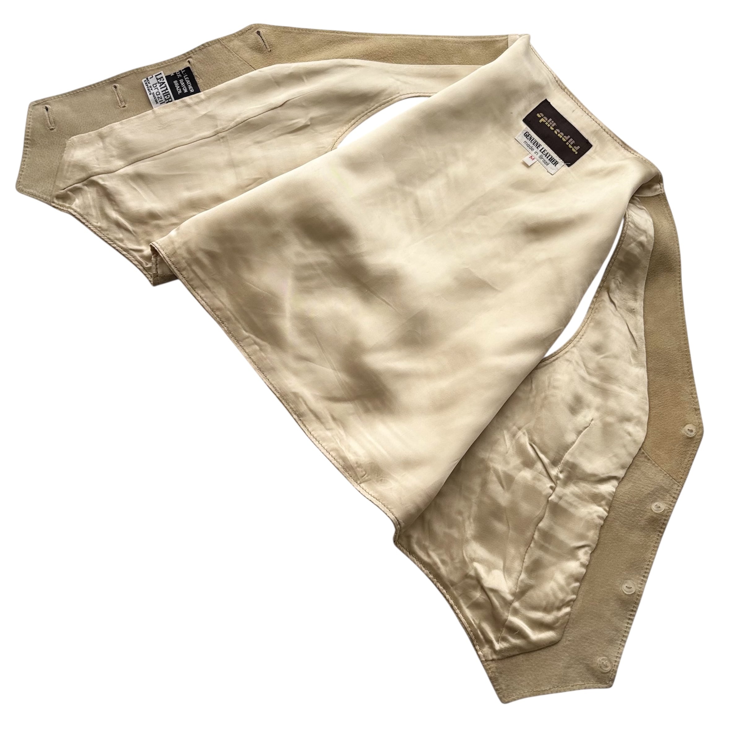 ベージュのスエードとレーヨンサテンで構成されたヴィンテージベスト。