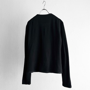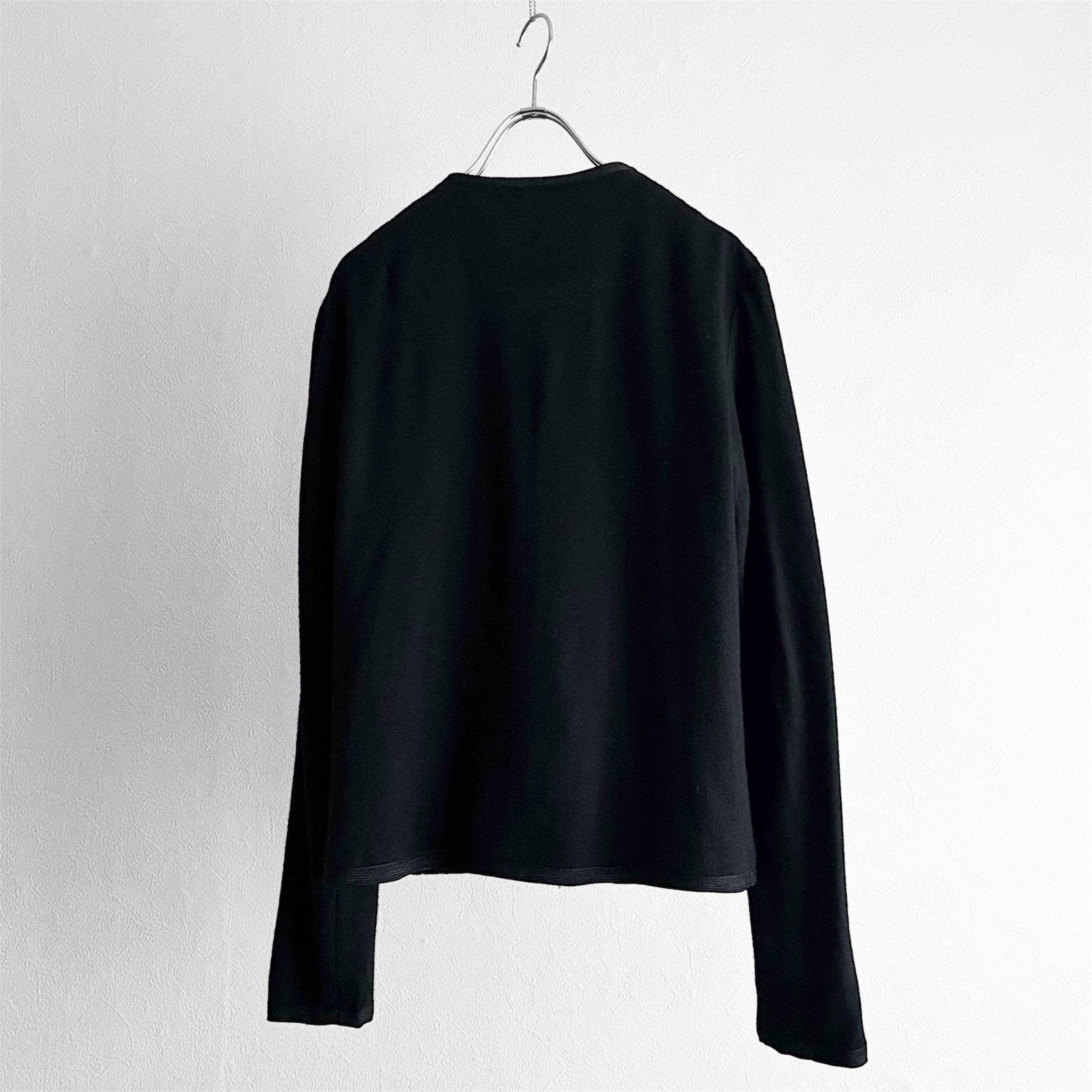 美しいシルエットを保ちつつ、ニットに袖を通す際の滑りの悪さは無く、ジャケットのようなスムーズな着用感。
