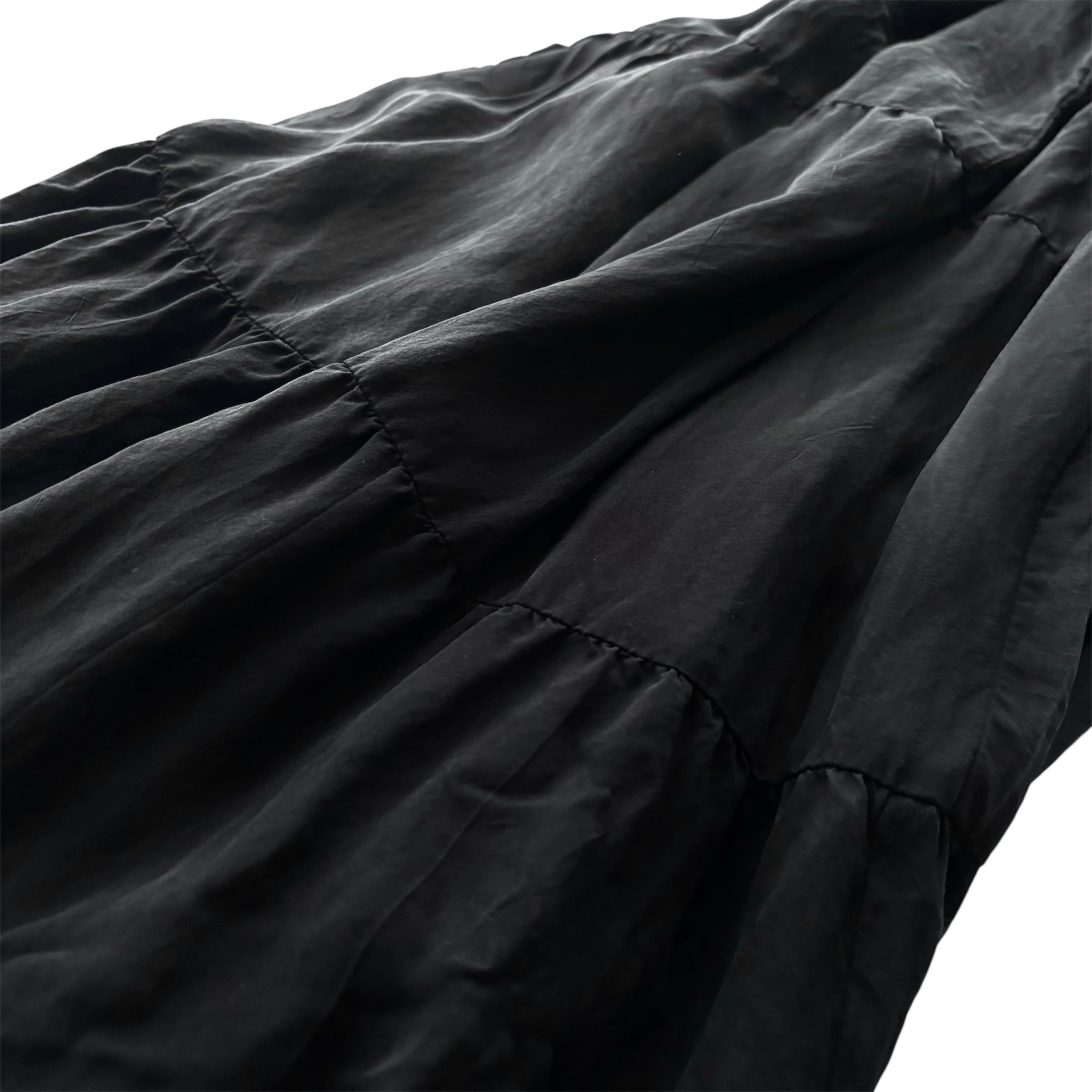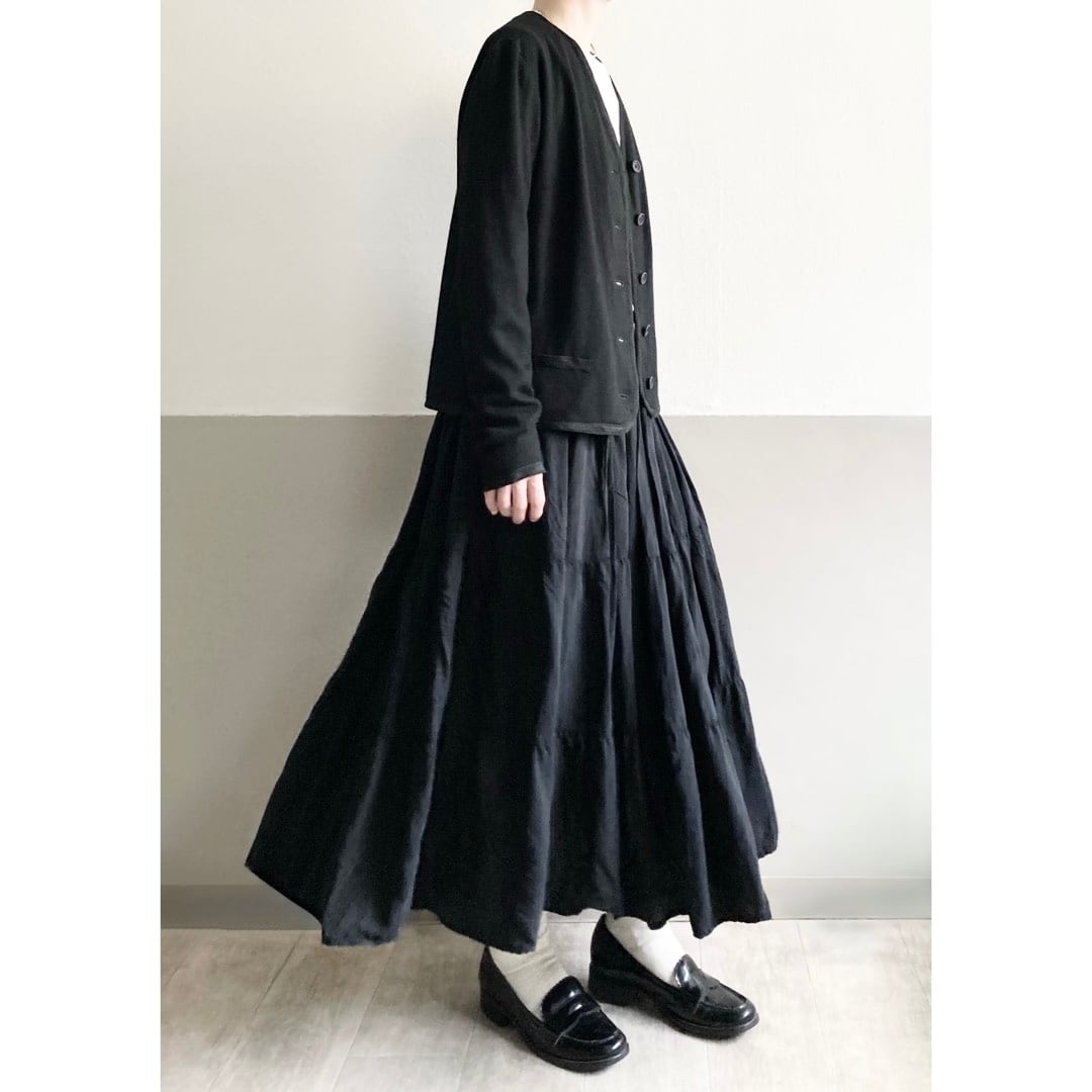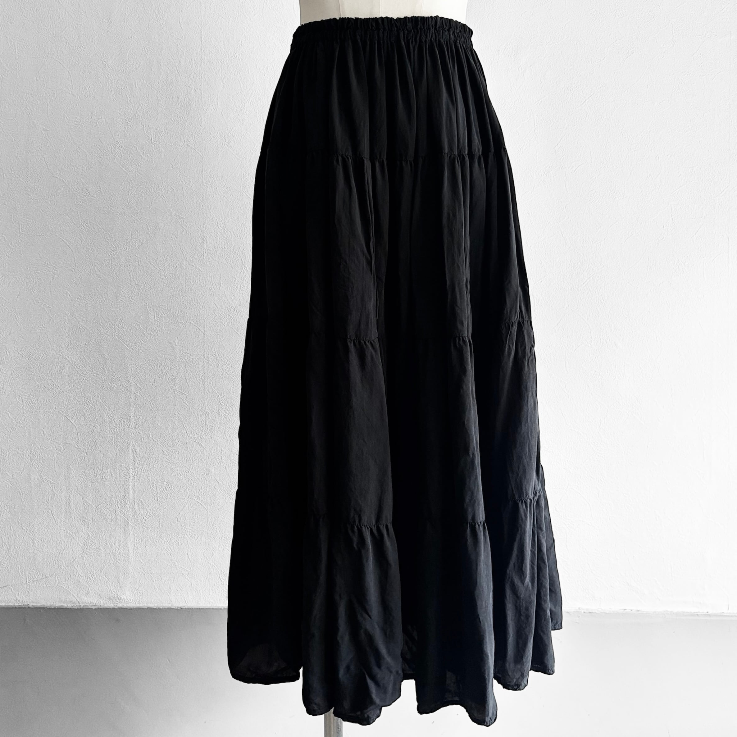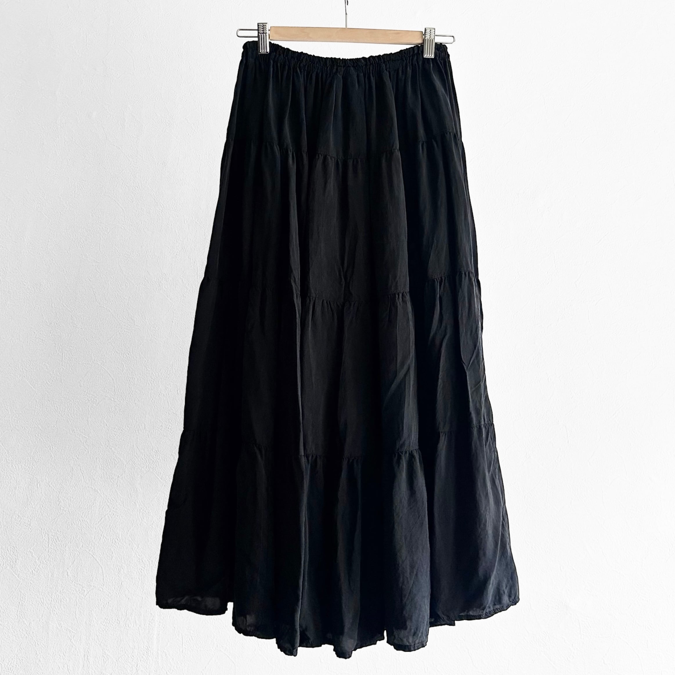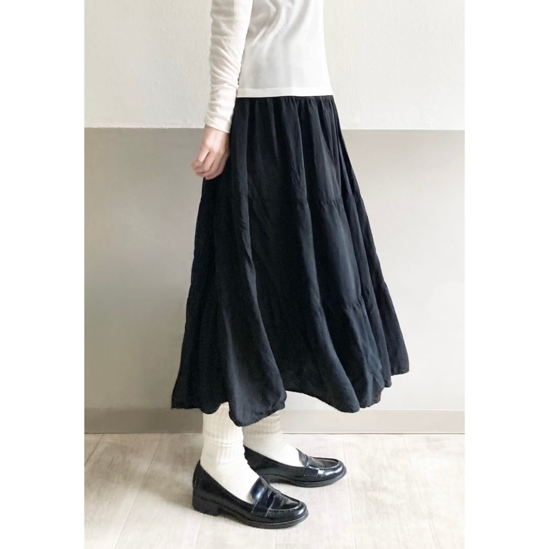 ふんわりと4段のティアードが連なるブラックロングスカート。