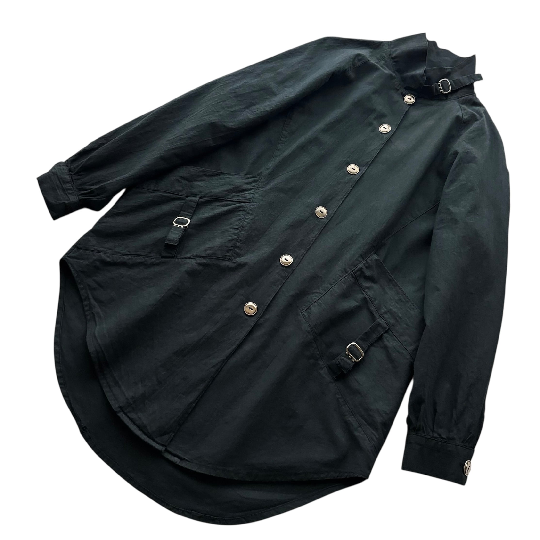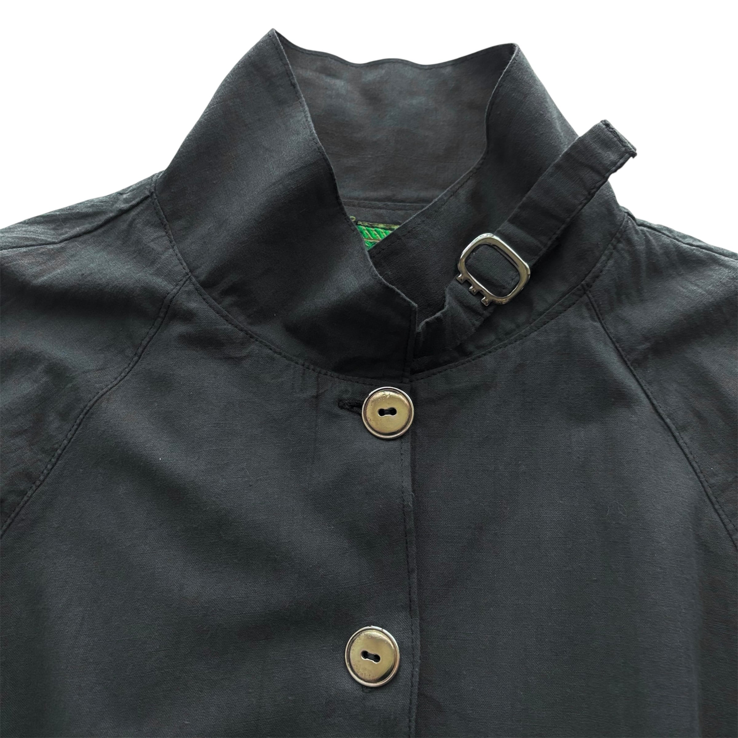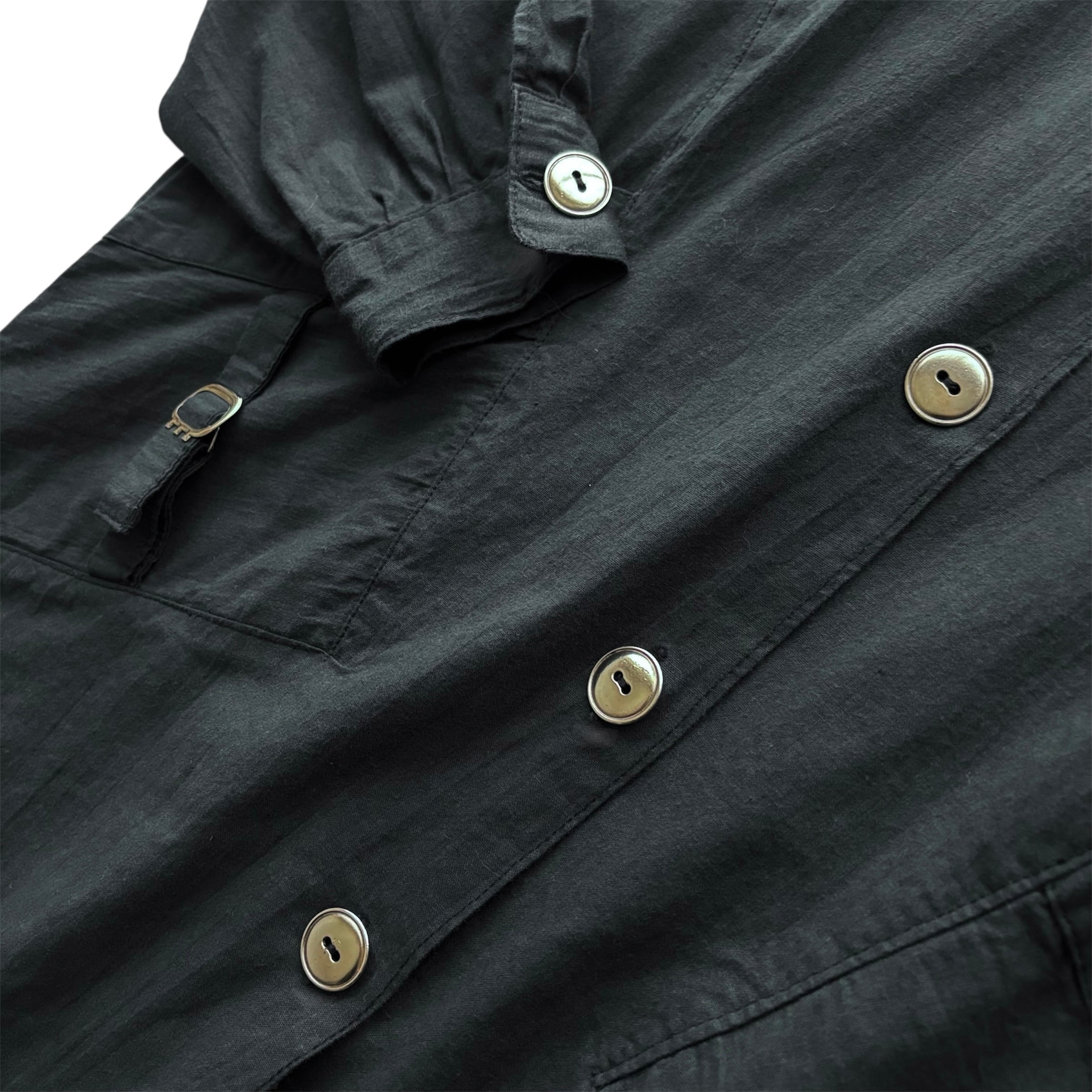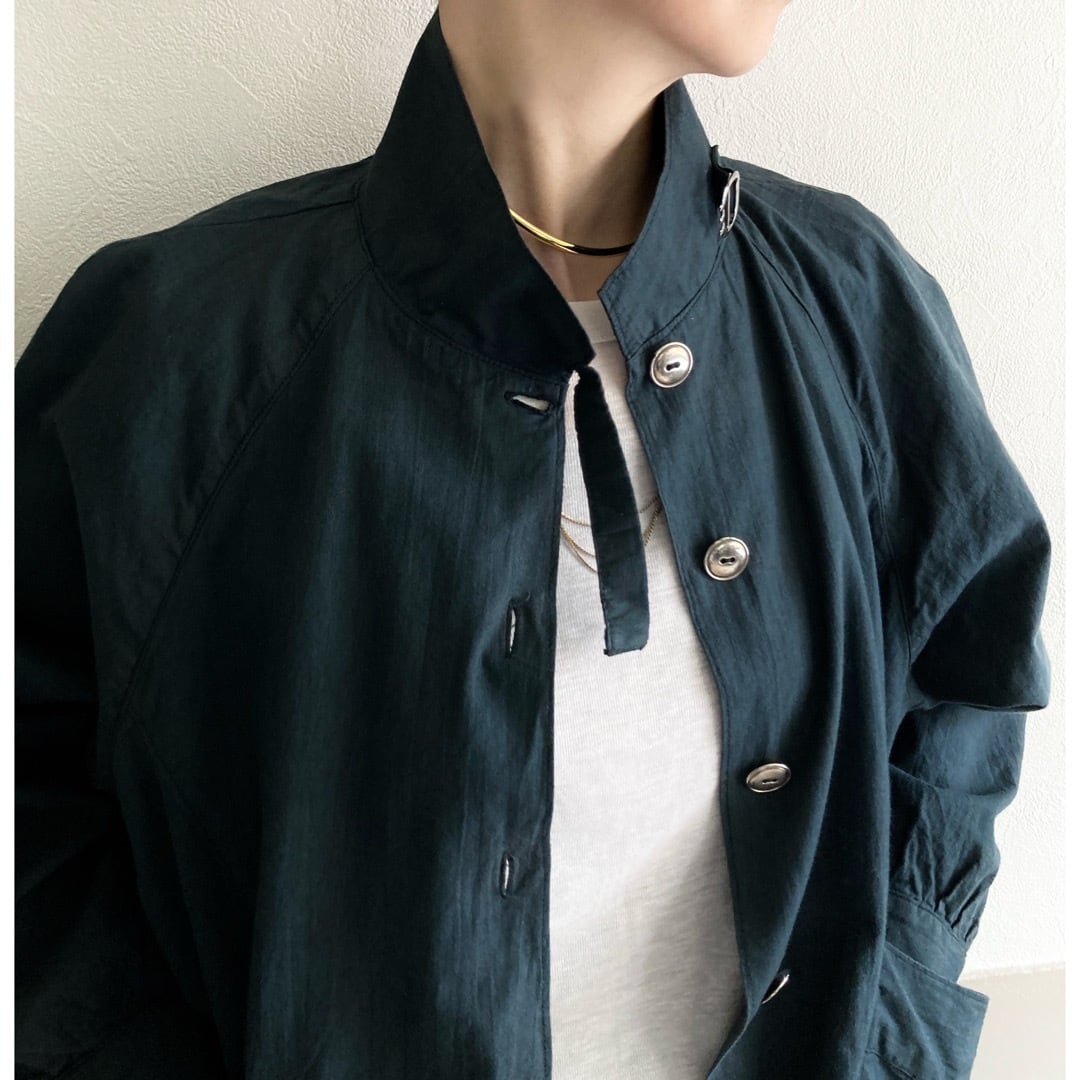 真っ黒ではない褪せたようなブラックカラーにくすんだメタルボタン・パーツが印象的なジャケット。