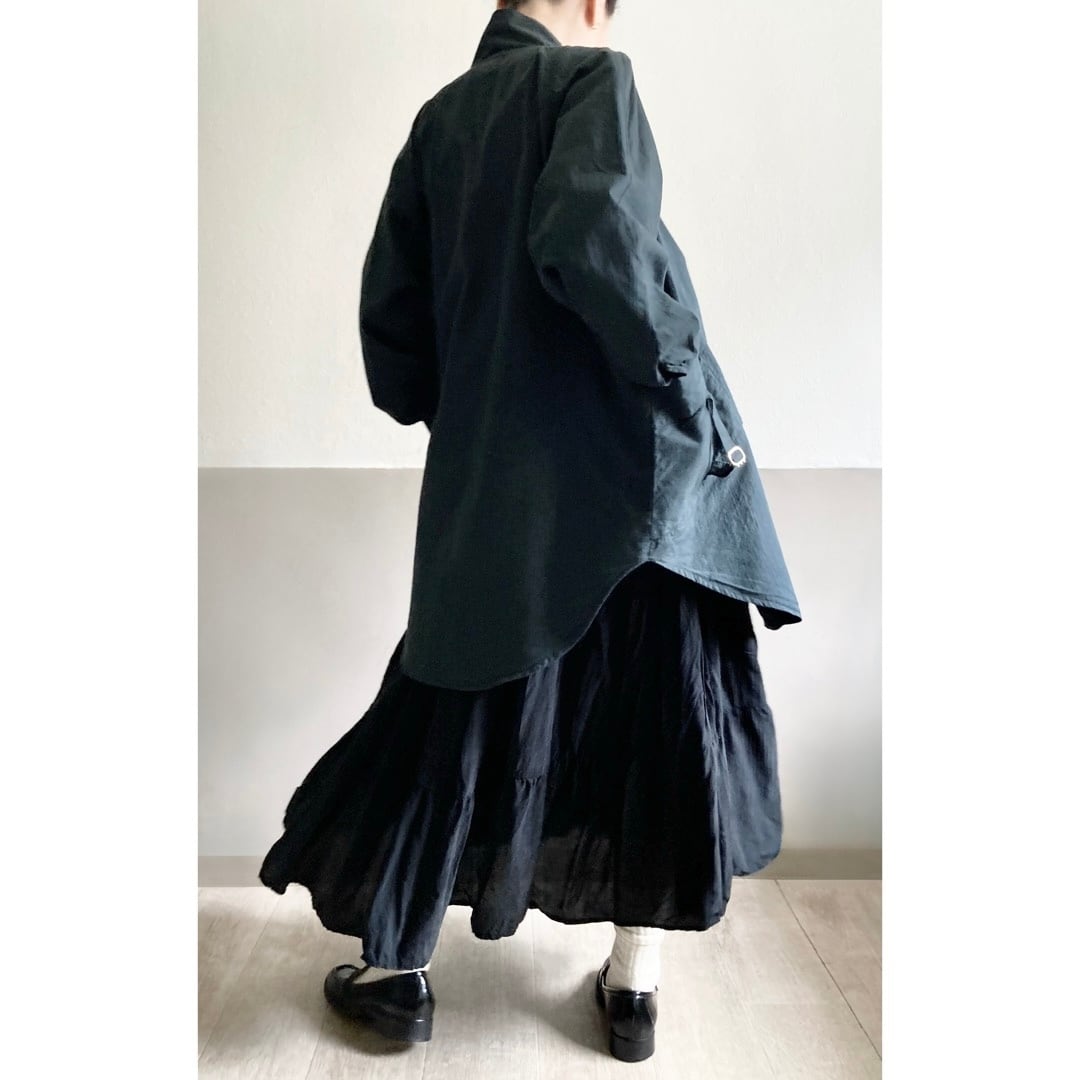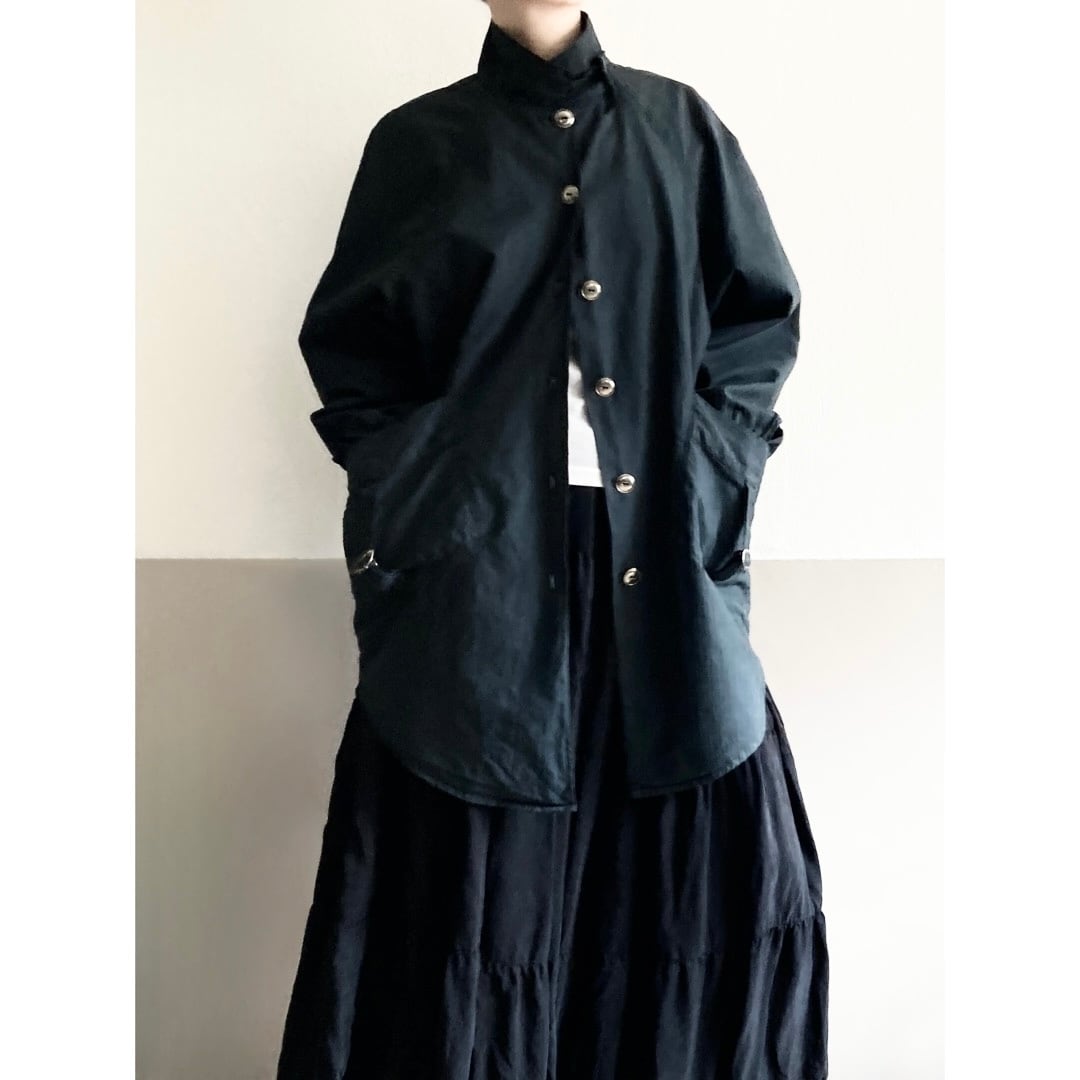 高さのあるスタンドカラーが羽織るだけでスタイリッシュにまとめてくれます。