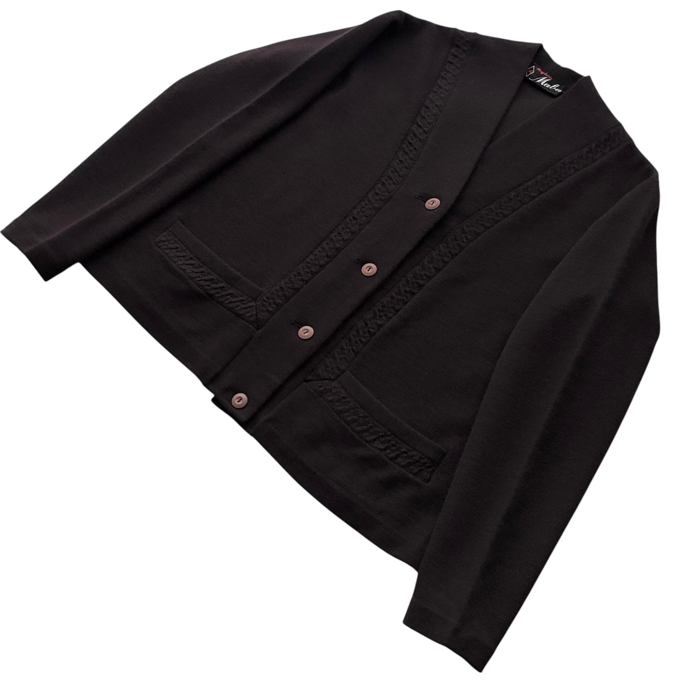 ぽこぽことした表面の模様編みや額縁のように縫い合わされたポケットがクラシカルで凝った印象。