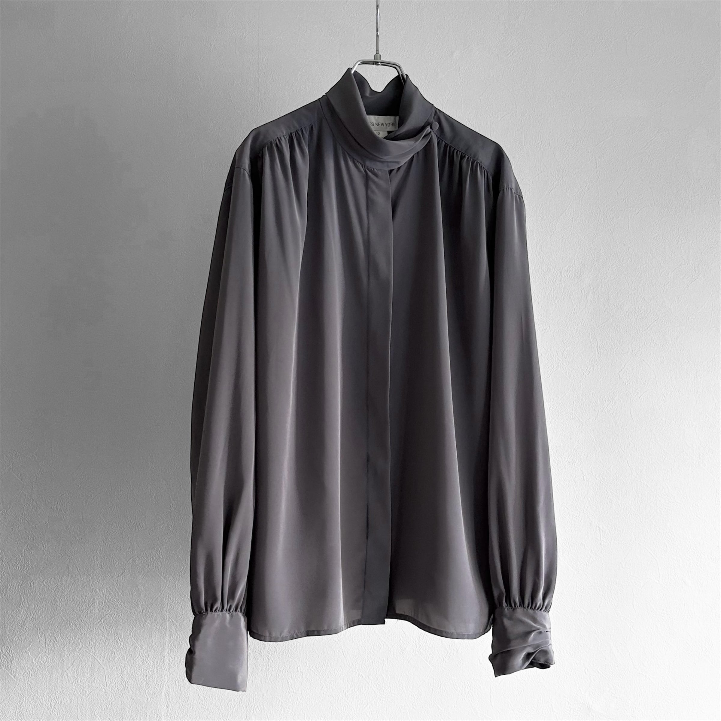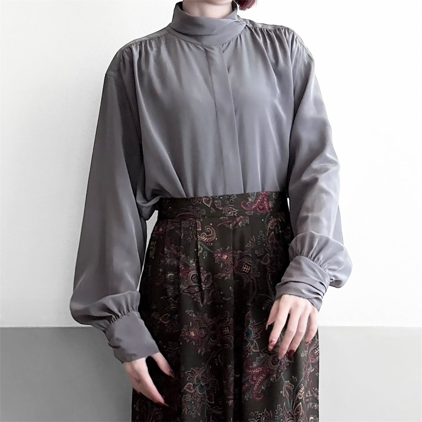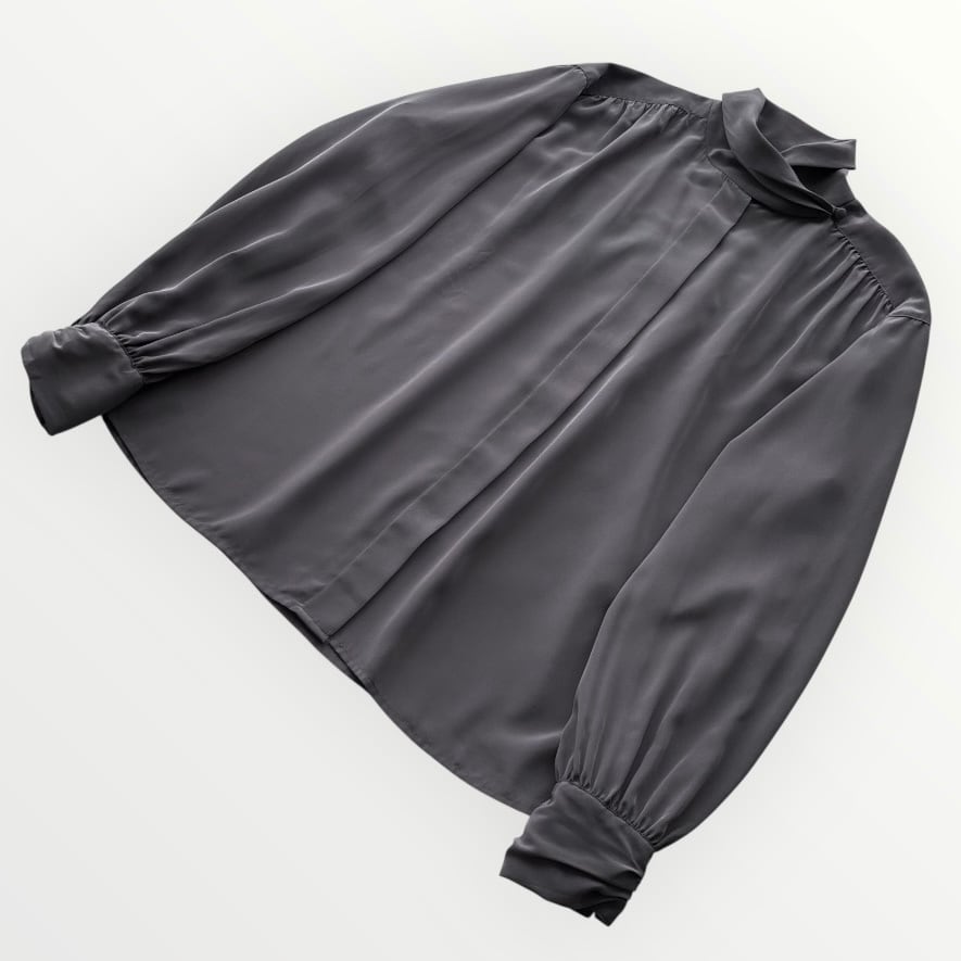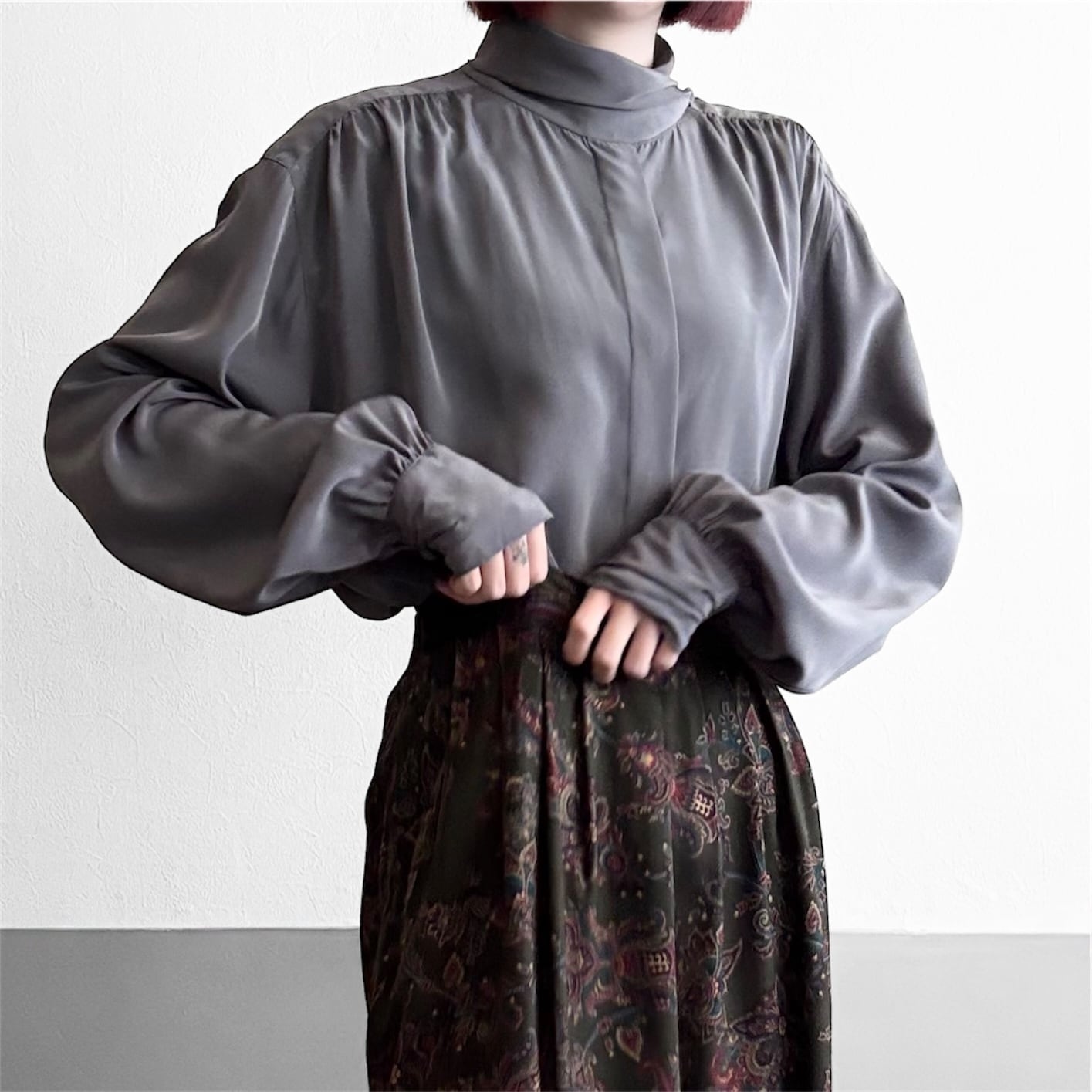 袖口のふんわりとした飾りタック、ループ止めのくるみボタンなど凝ったディテール。