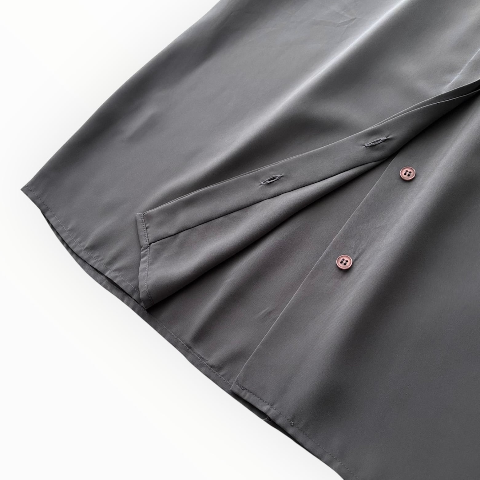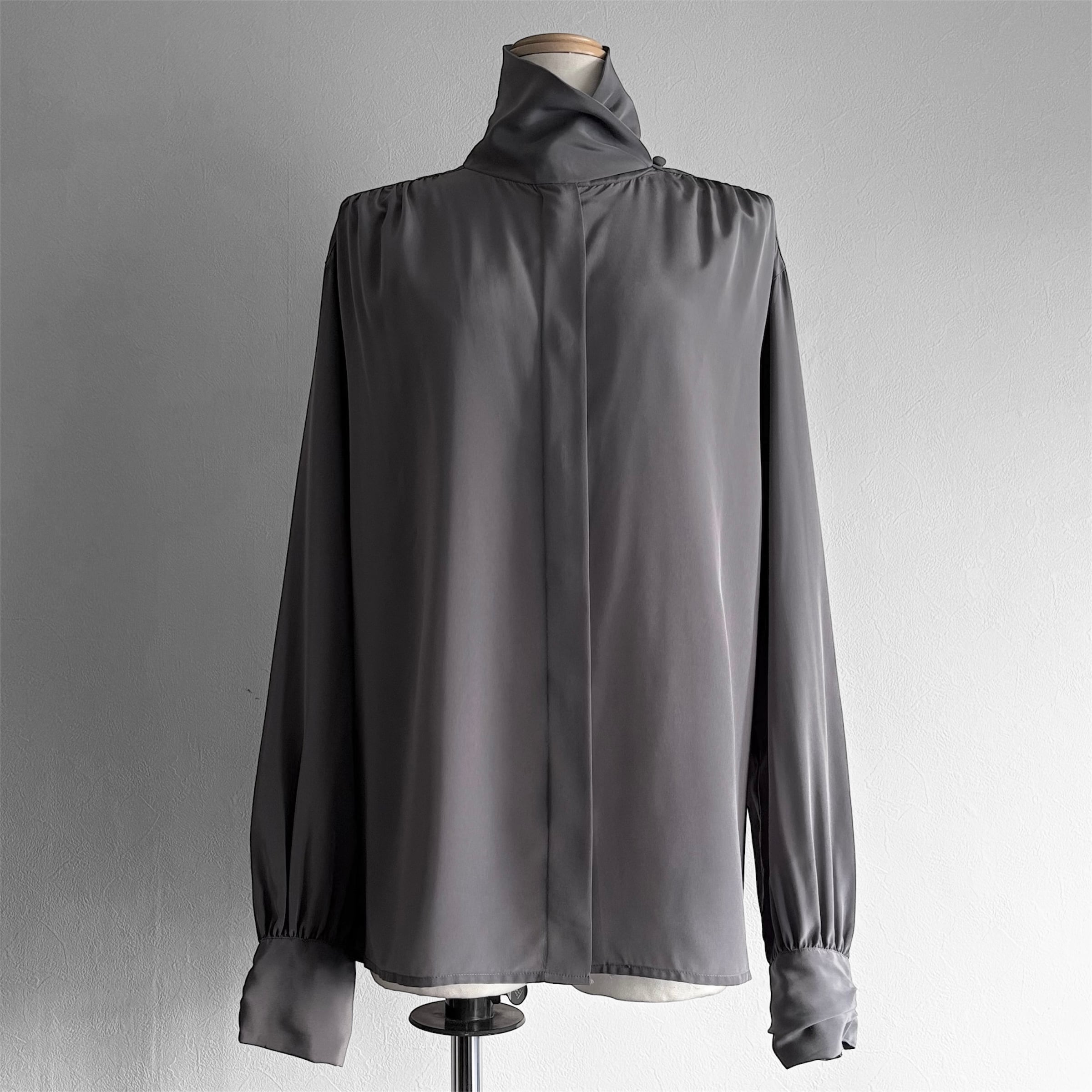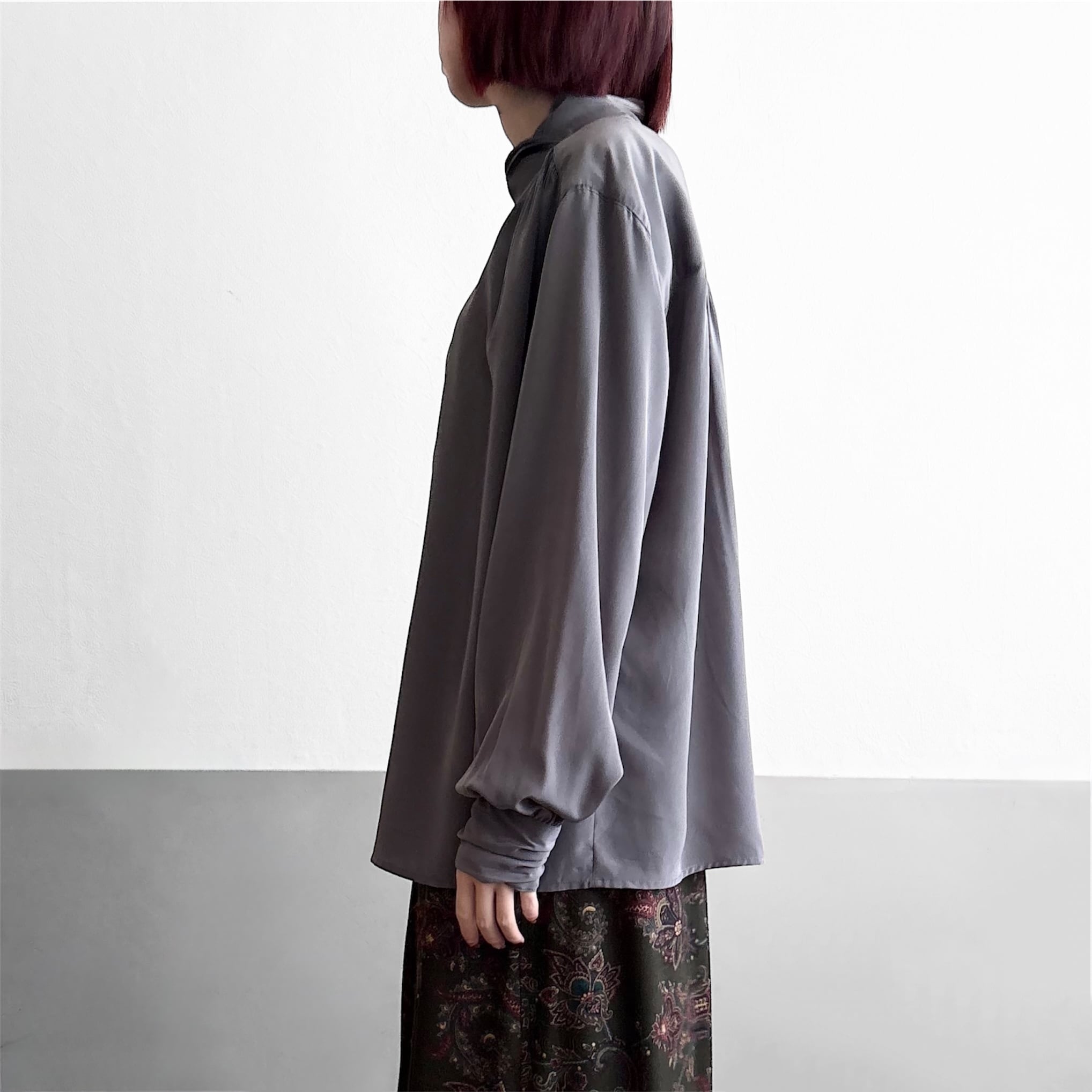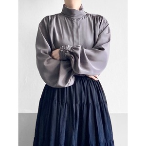 袖口のふんわりとした飾りタック、ループ止めのくるみボタンなど凝ったディテール。