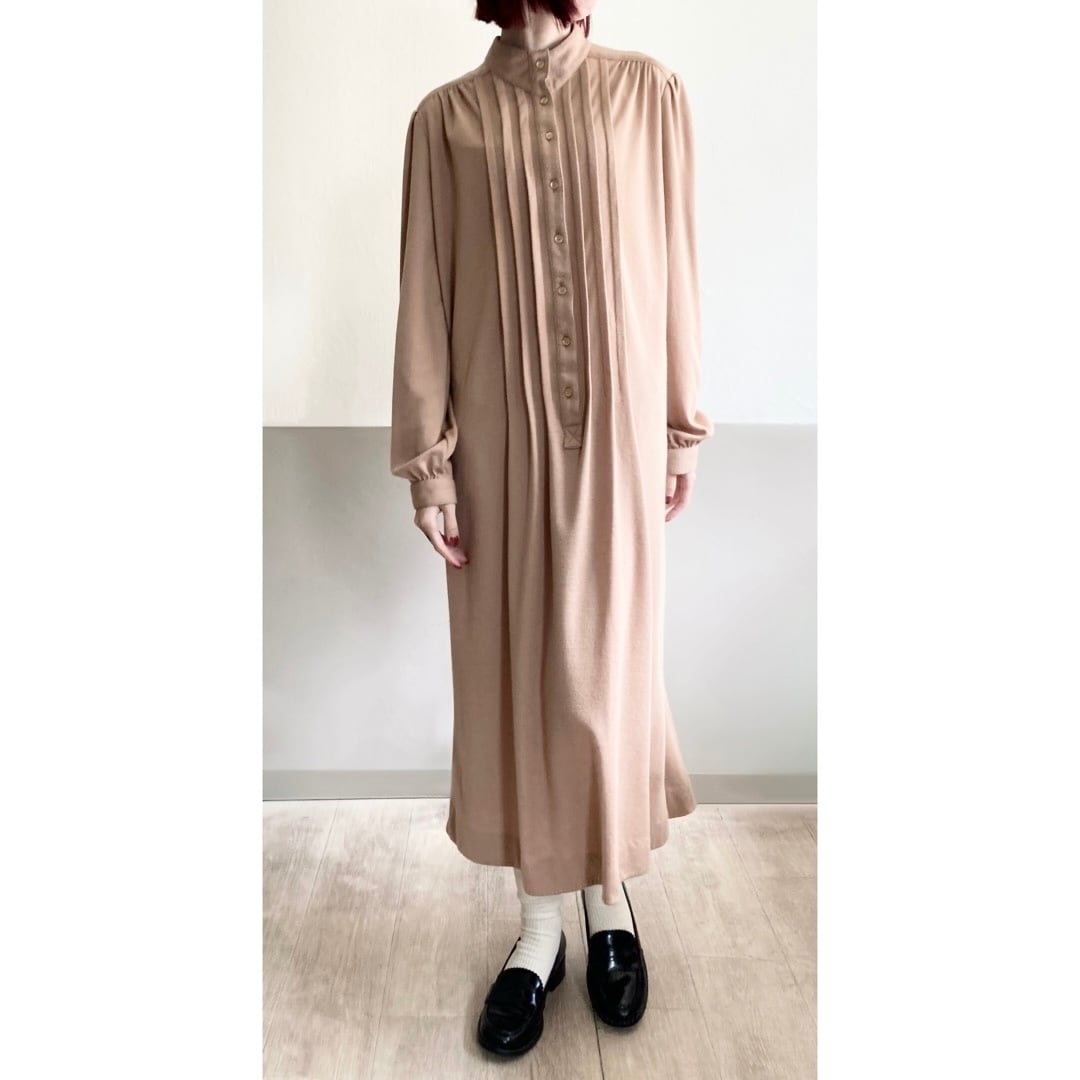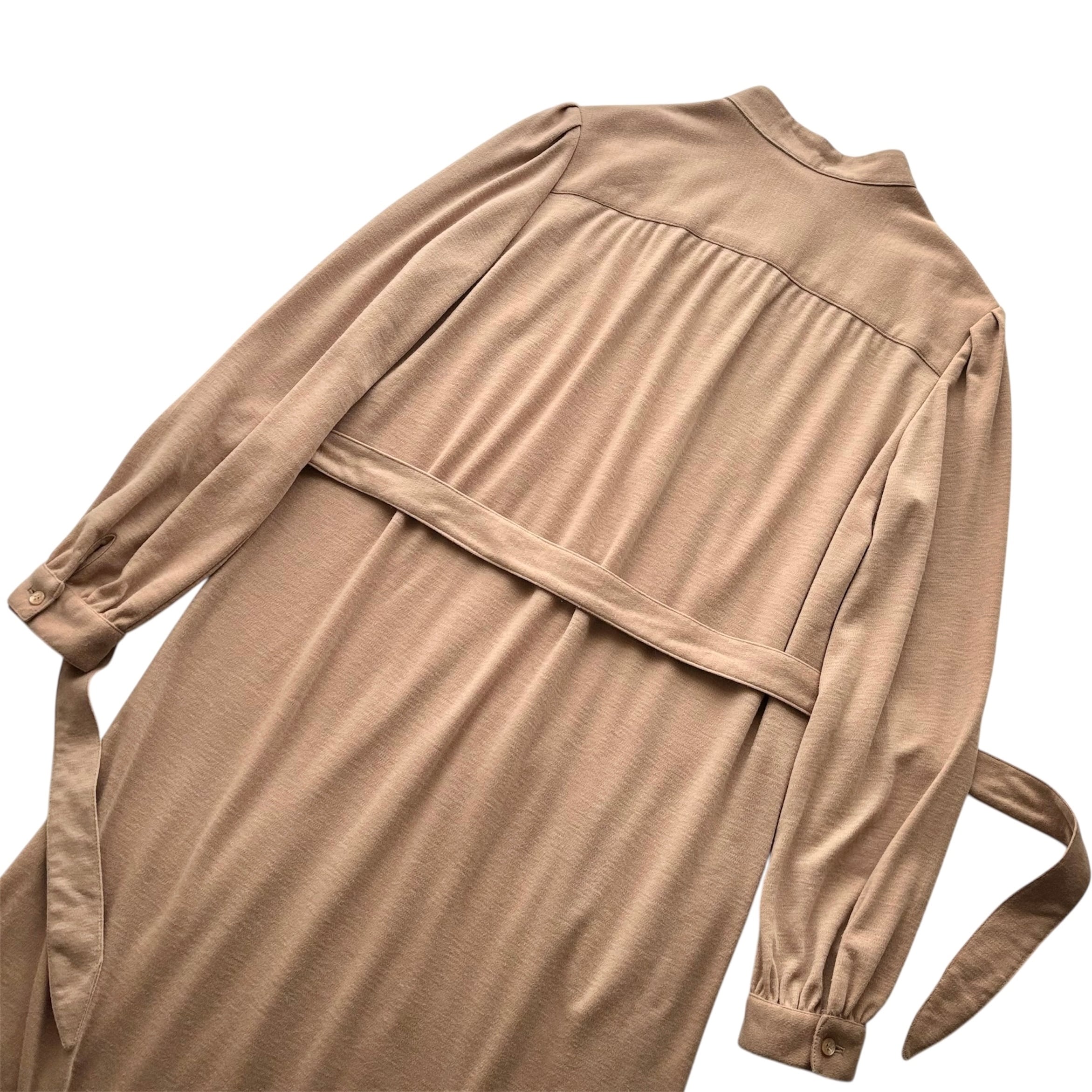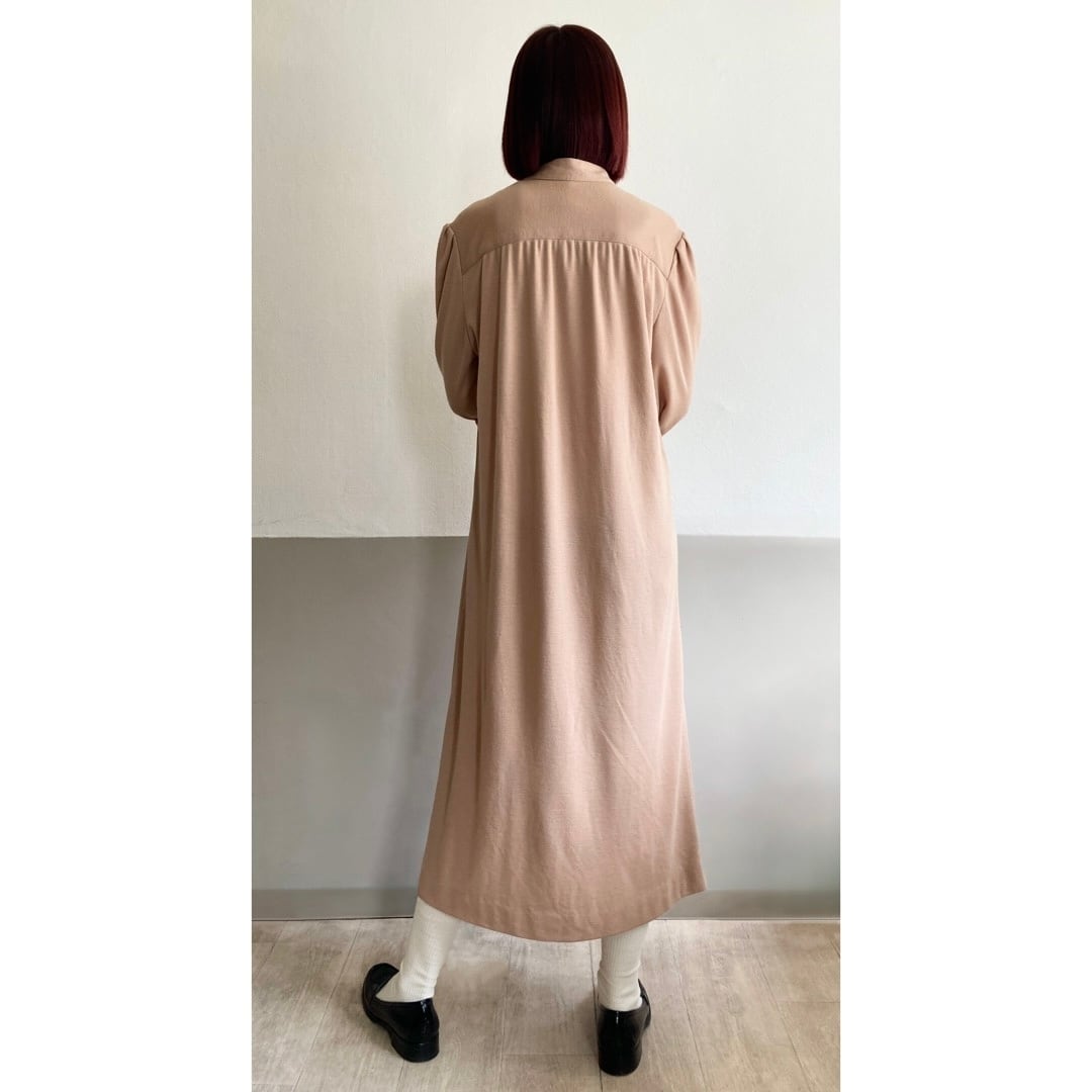 暖かみのあるベージュカラーが印象的なシャツワンピース。