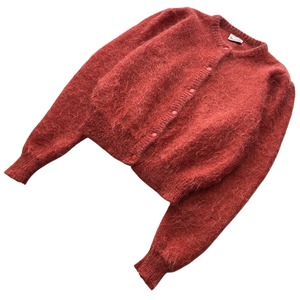 赤みがかったオレンジカラーが美しいニットカーディガン。
