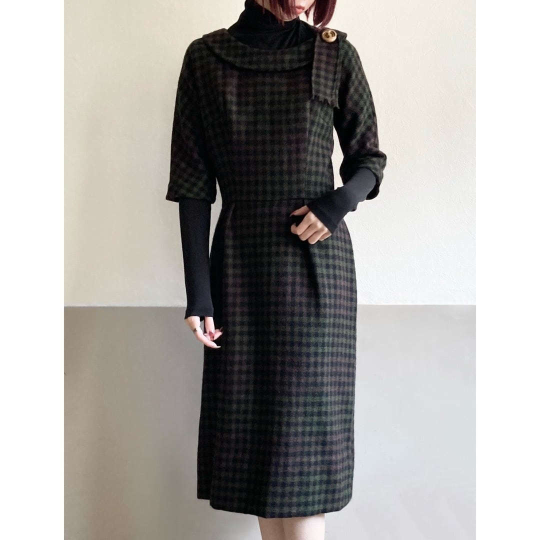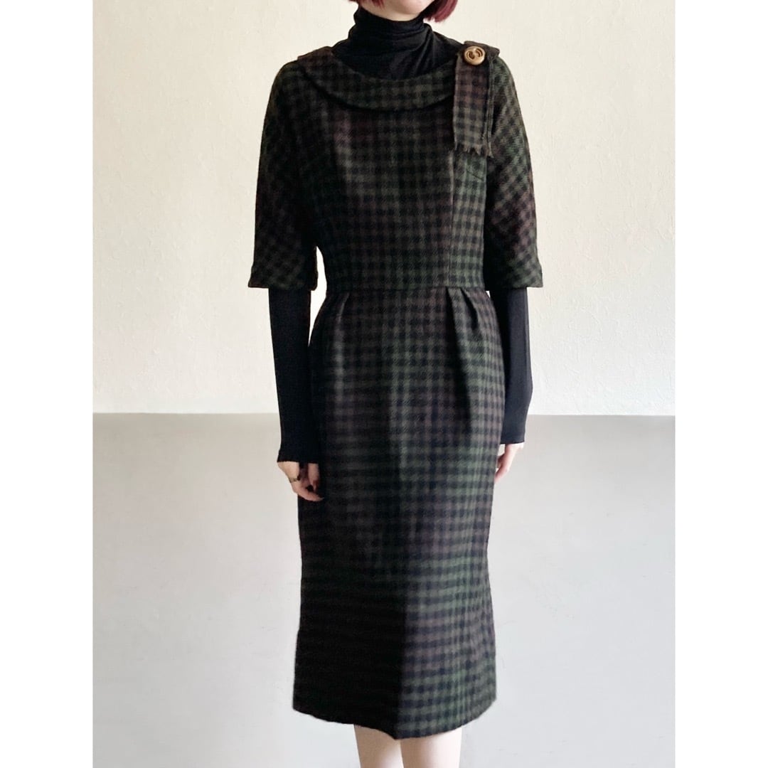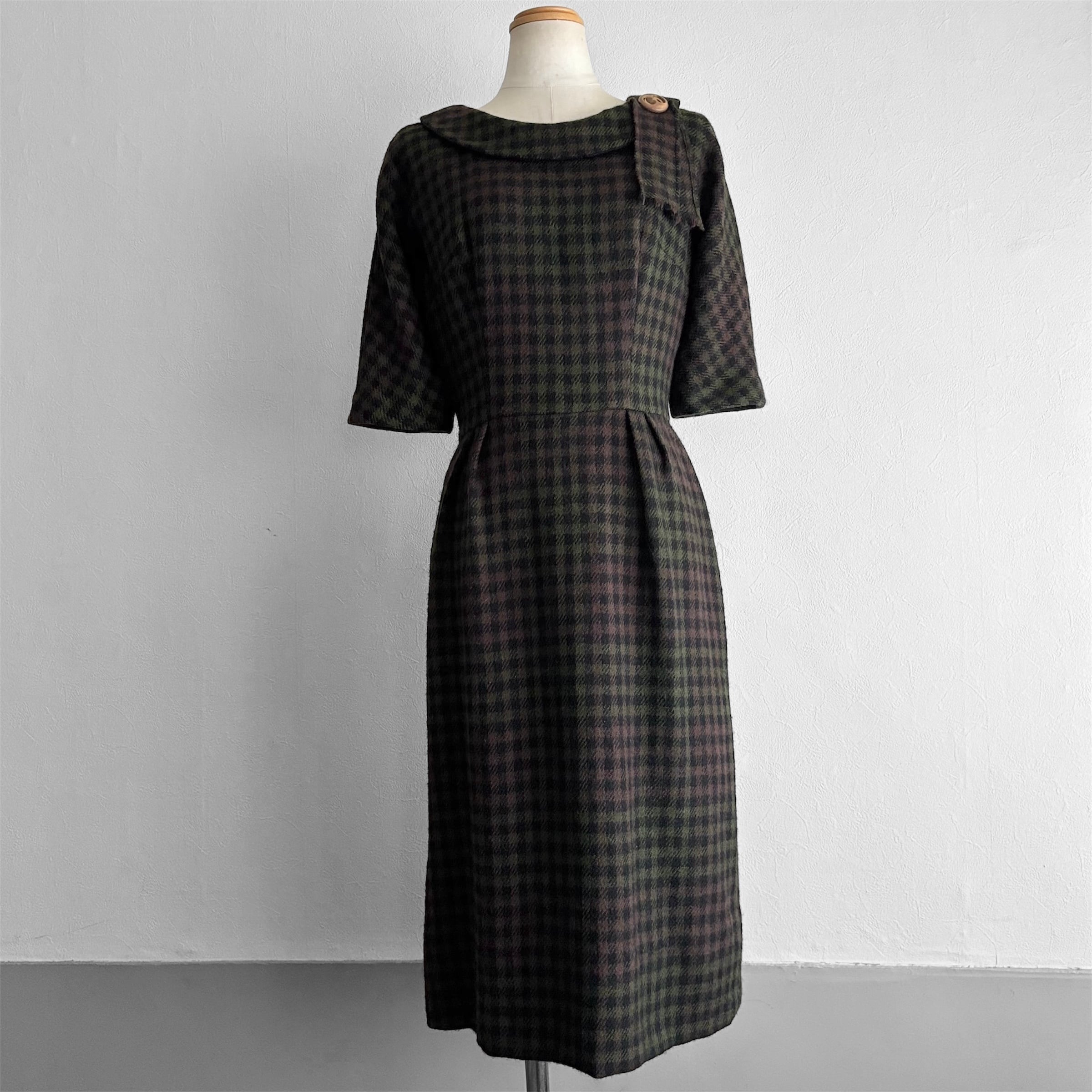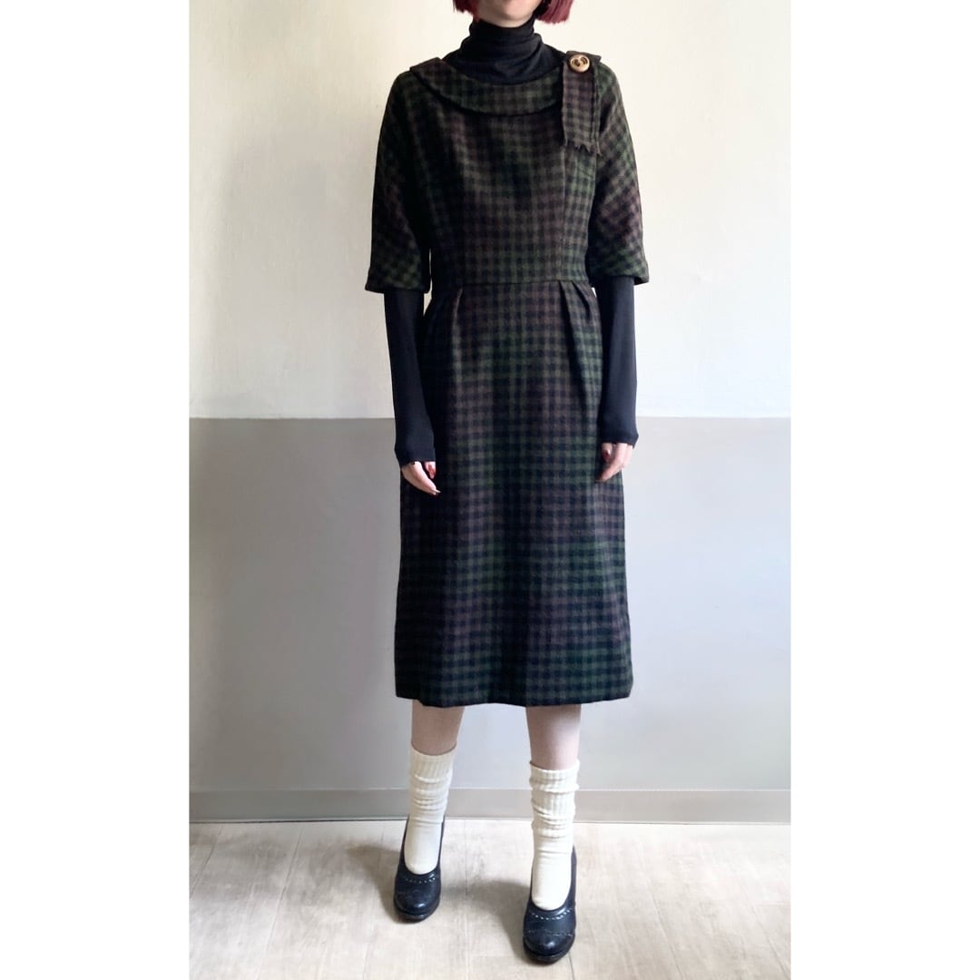 深みのあるブラウンとグリーンを基調としたチェックワンピース。
