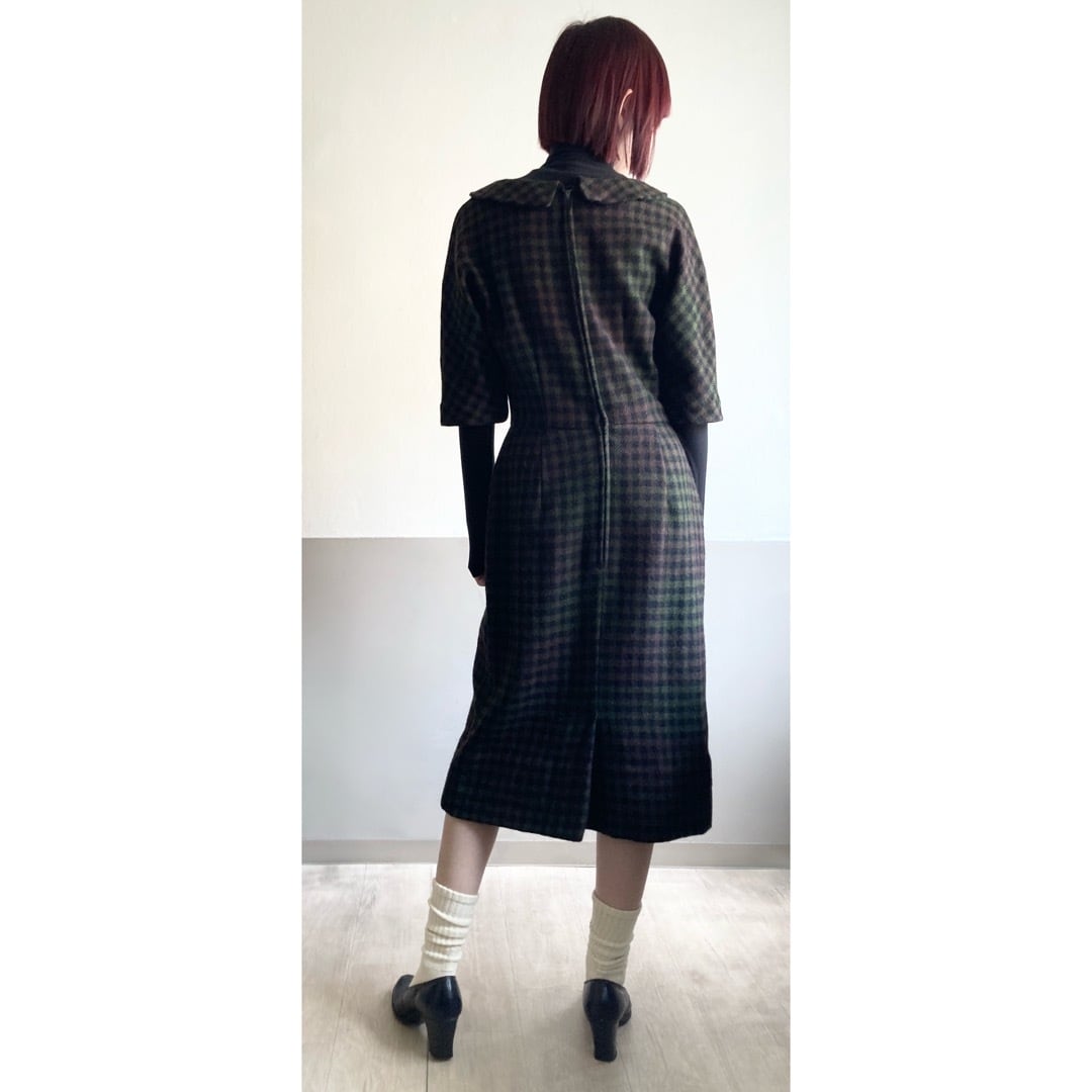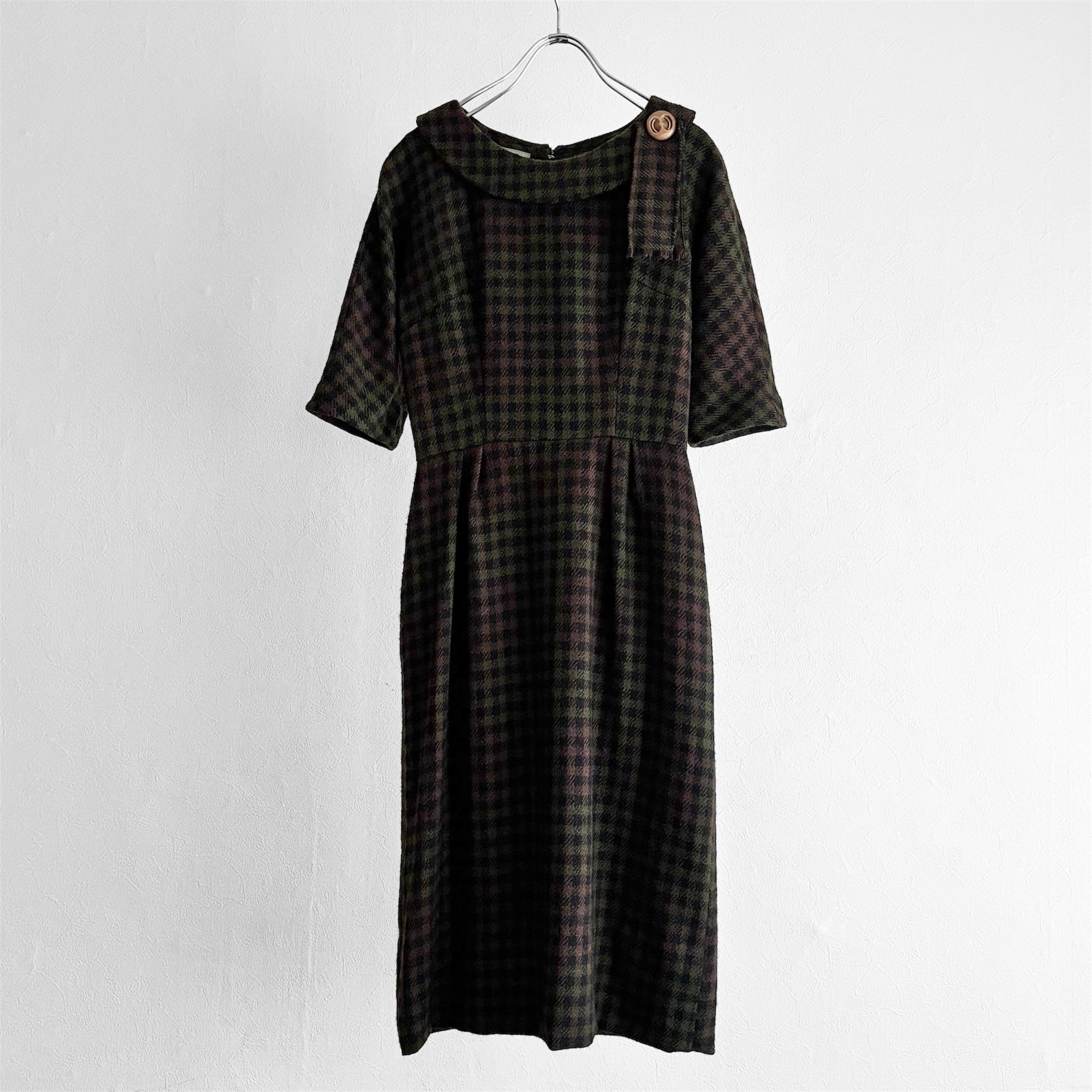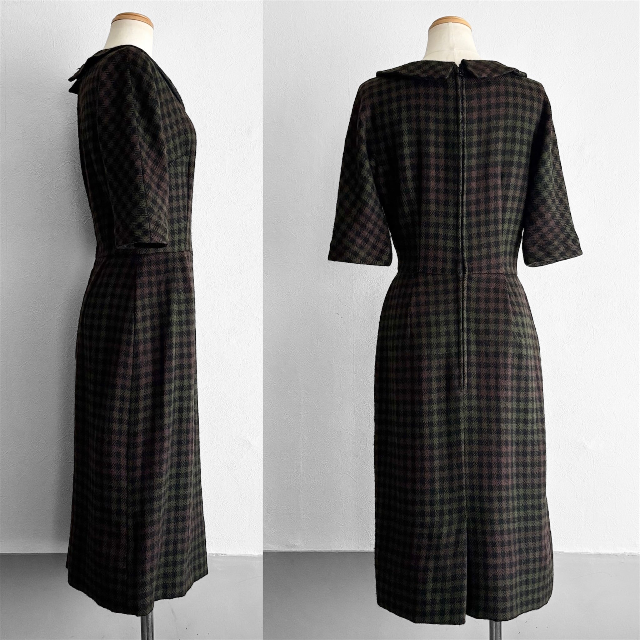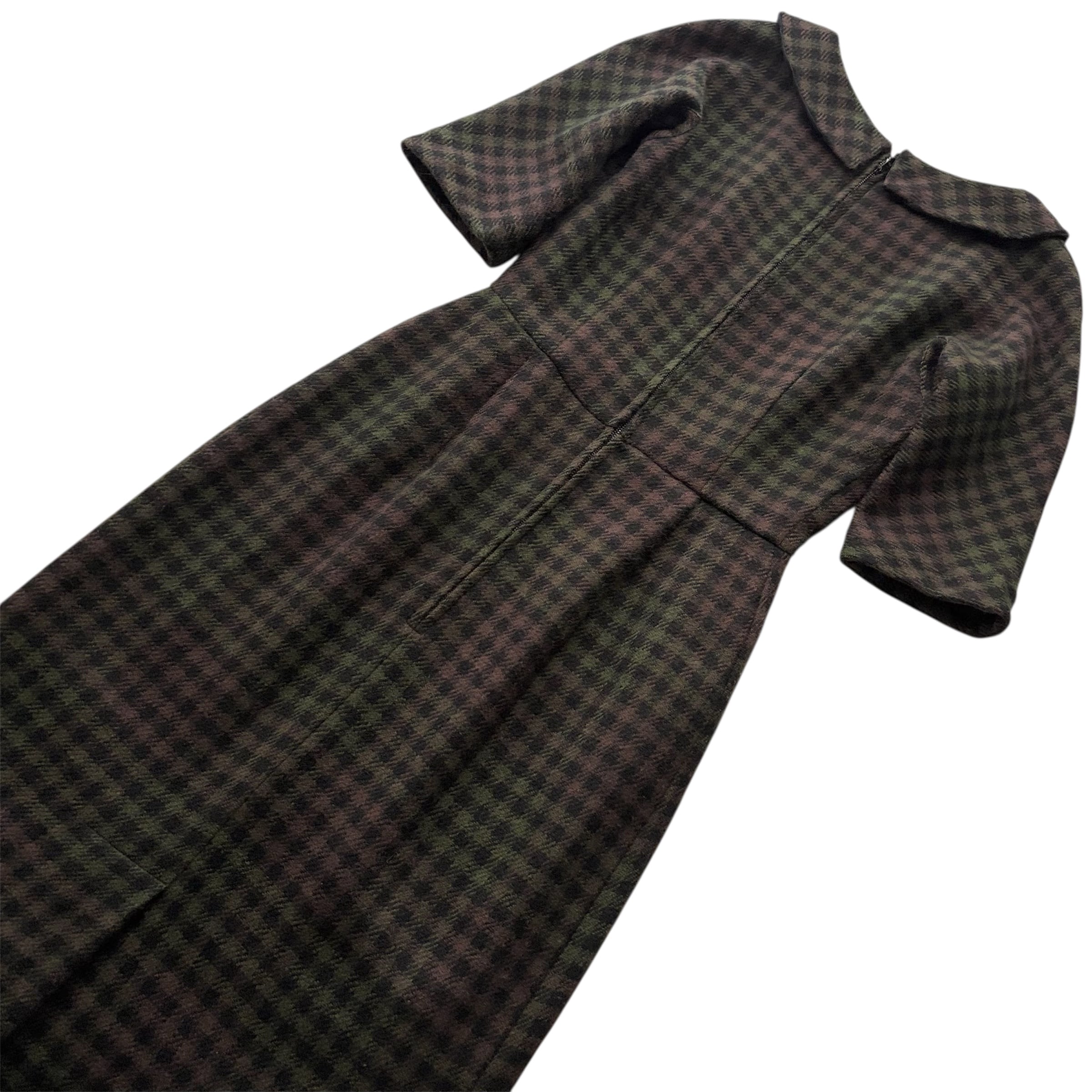 深みのあるブラウンとグリーンを基調としたチェックワンピース。