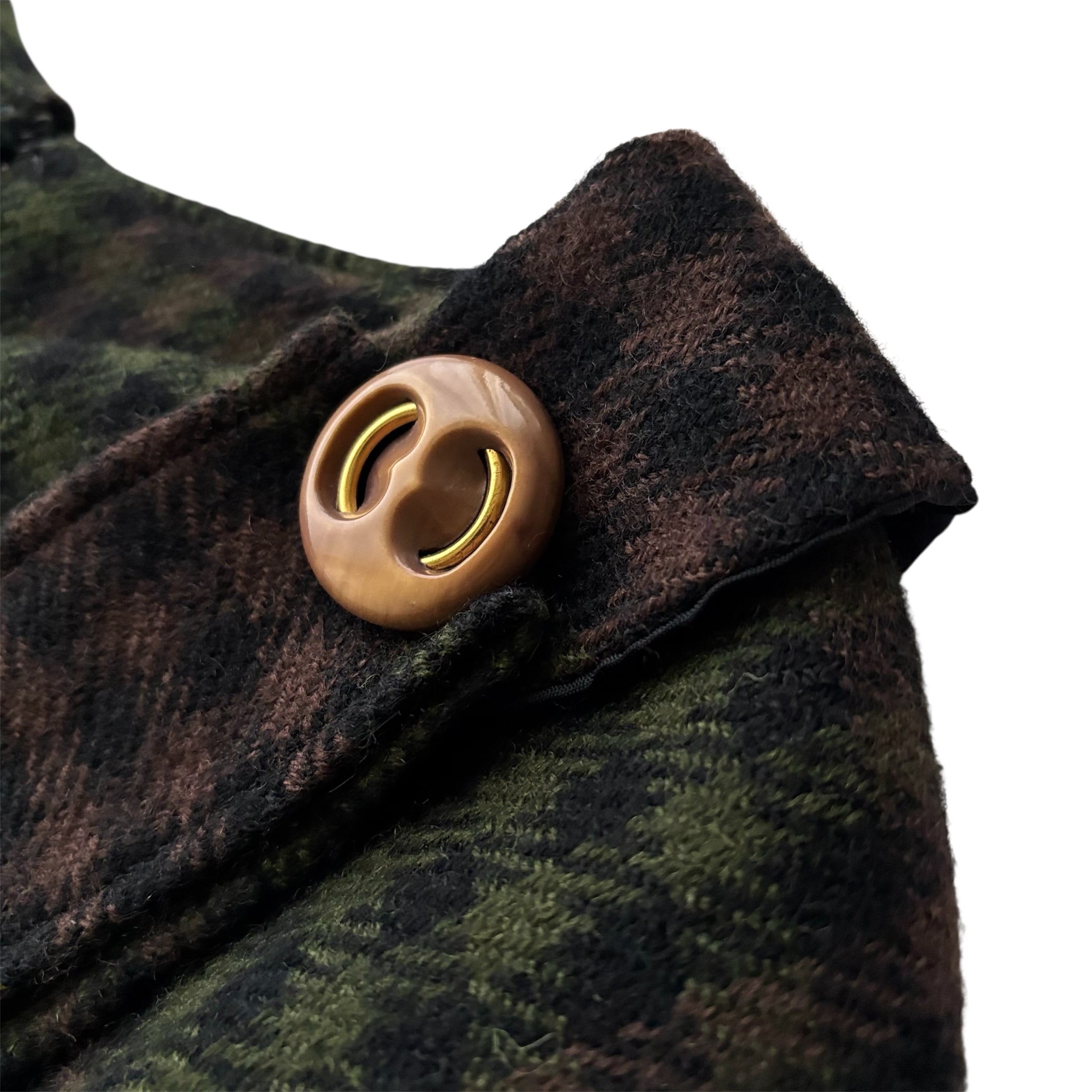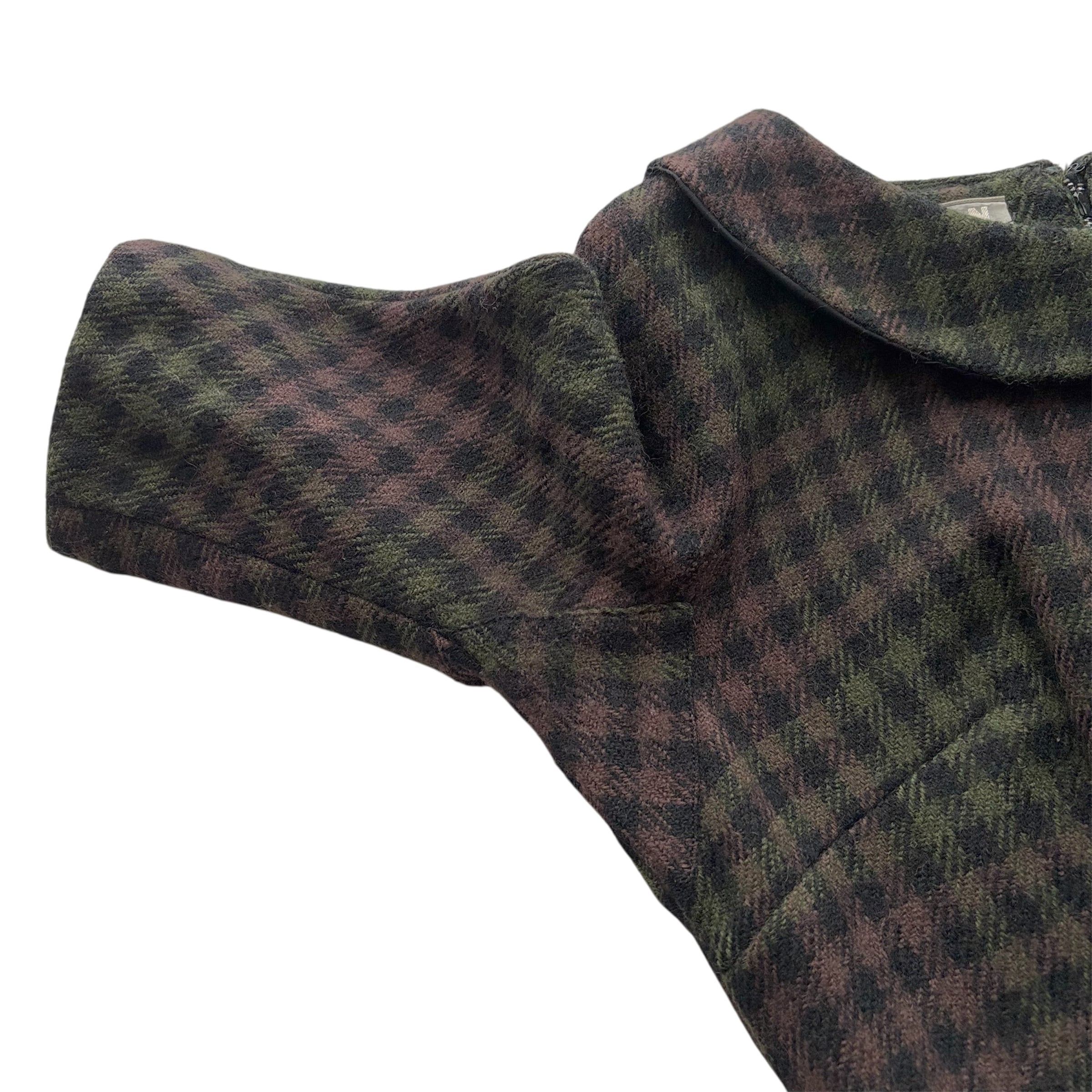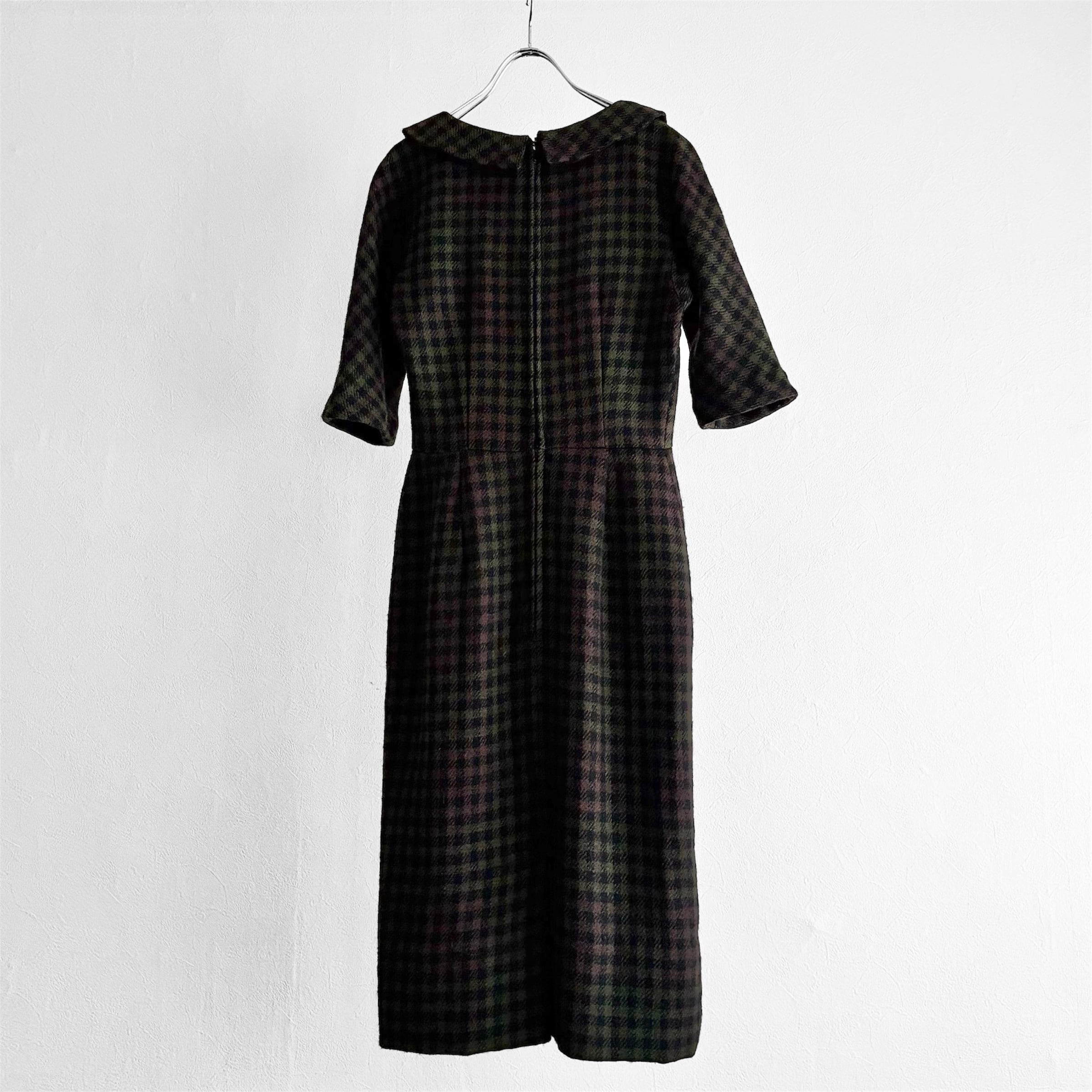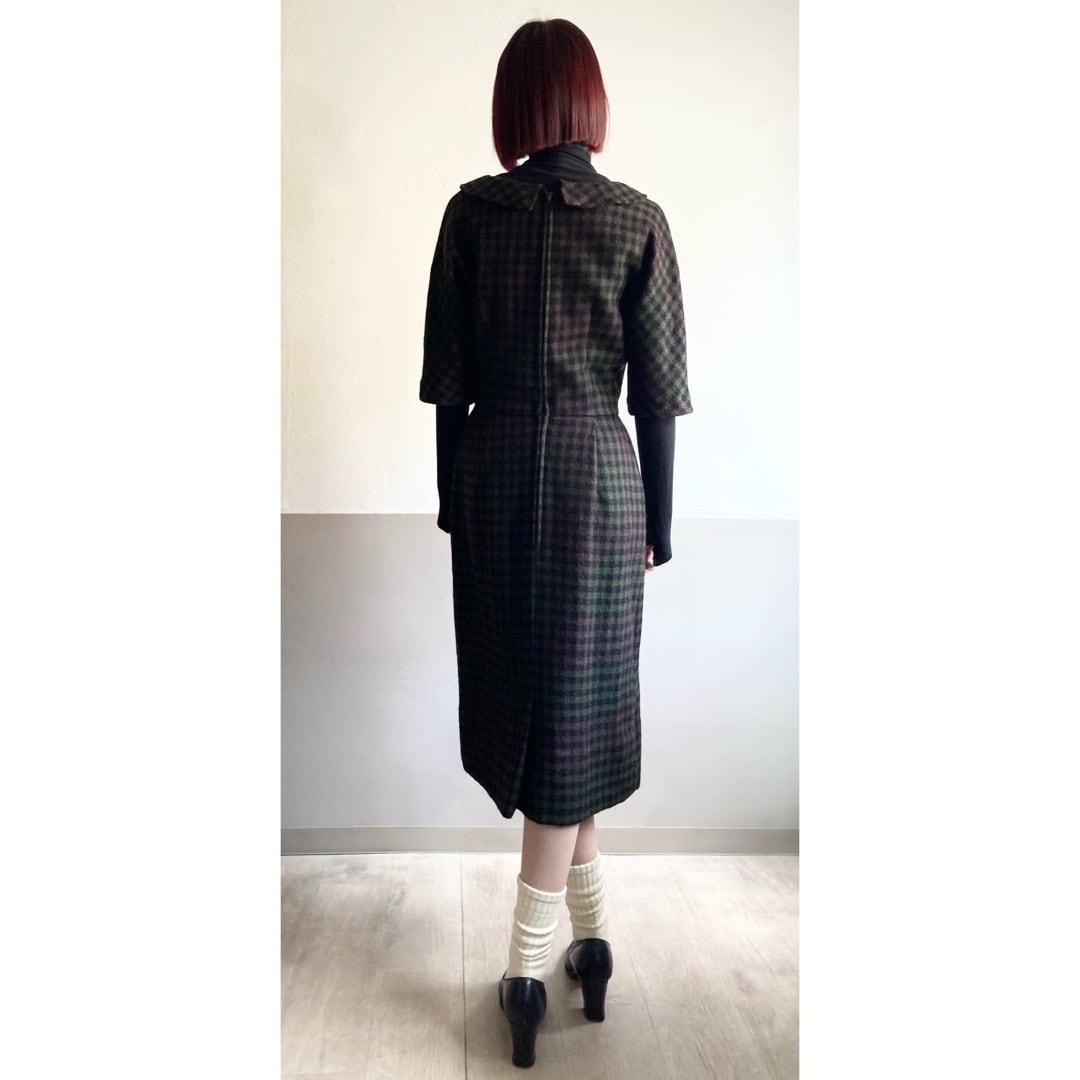 深みのあるブラウンとグリーンを基調としたチェックワンピース。