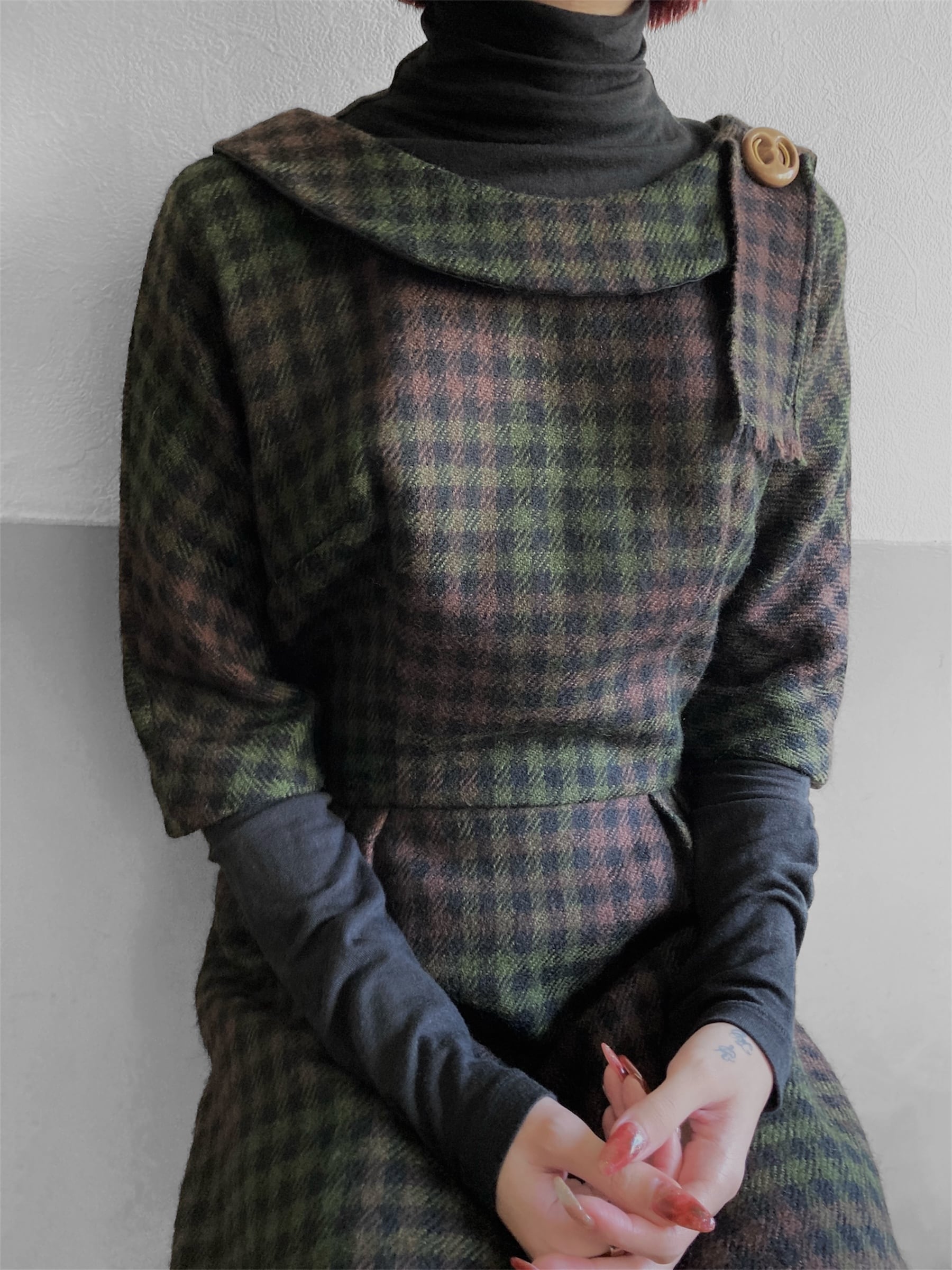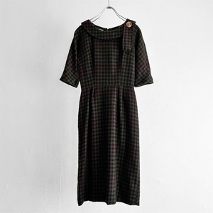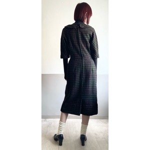 深みのあるグリーンとブラウンを基調としたチェックワンピース。