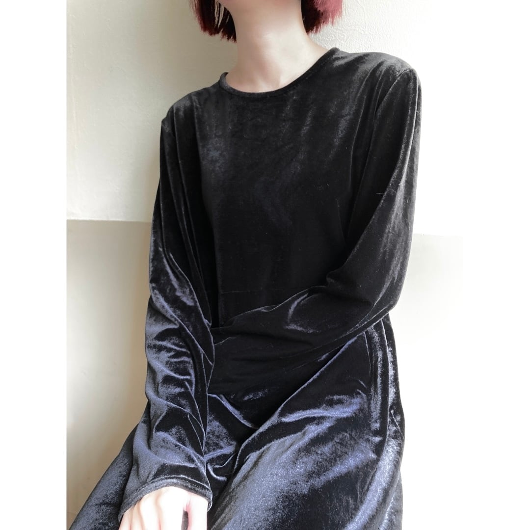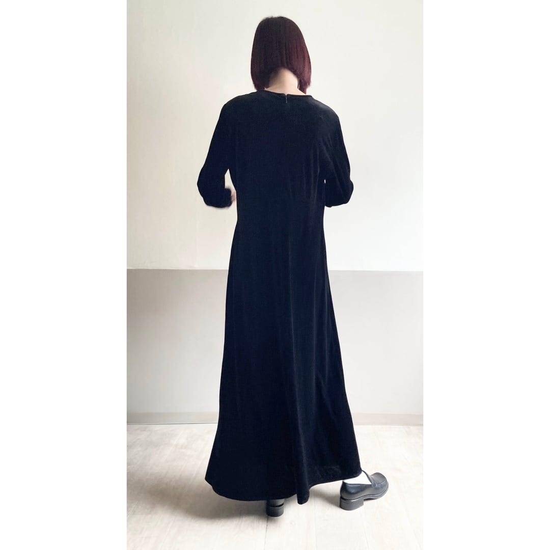 深みのあるブラックカラーが特徴的なベロアワンピース