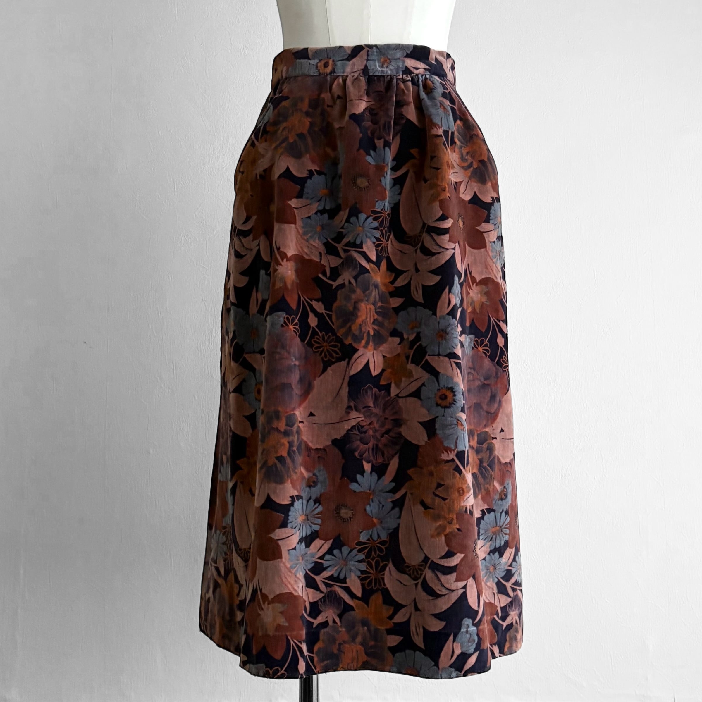 ブラウンとブルーのコンビネーション、活き活きと描かれた草花は、光沢と共に奥行きを感じさせ、絵画のように眺めたくなる1枚。
