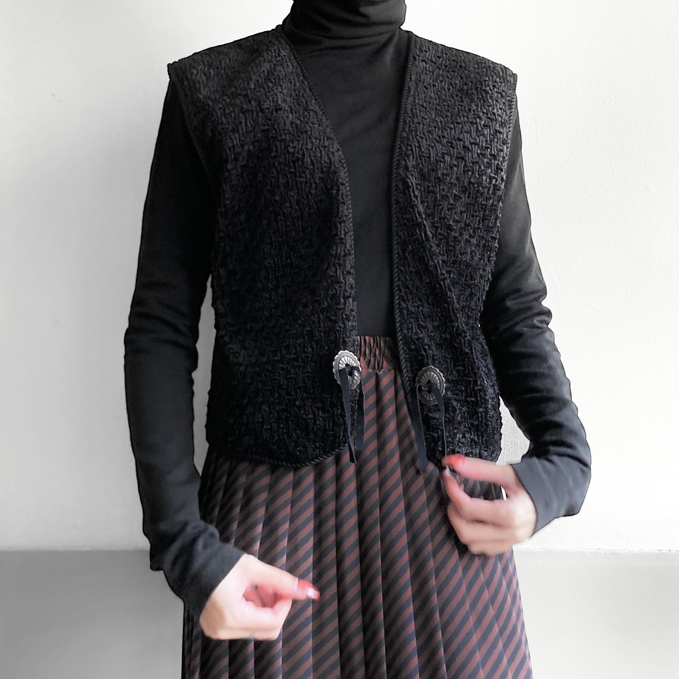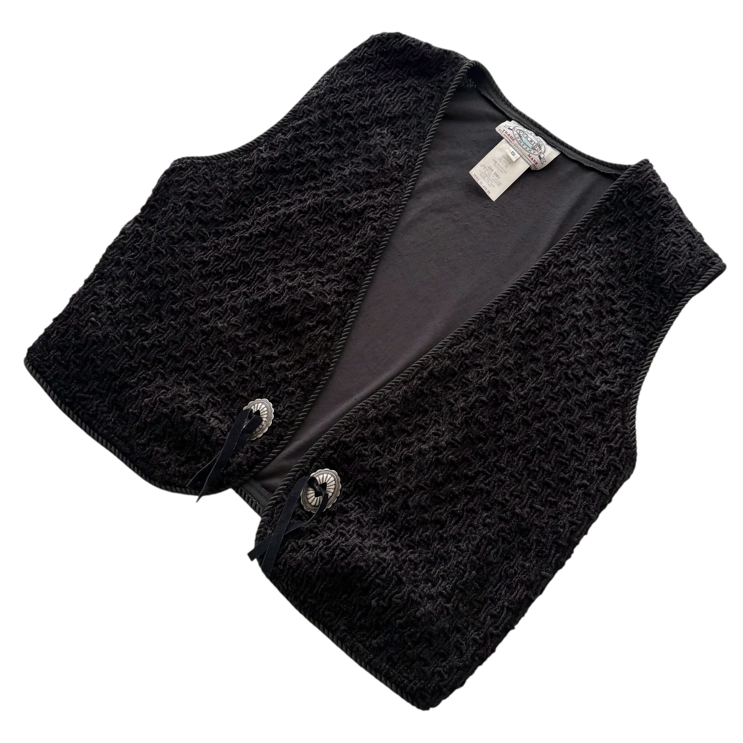味わいあるシルバーカラーのコンチョがアクセントのブラックベスト。
