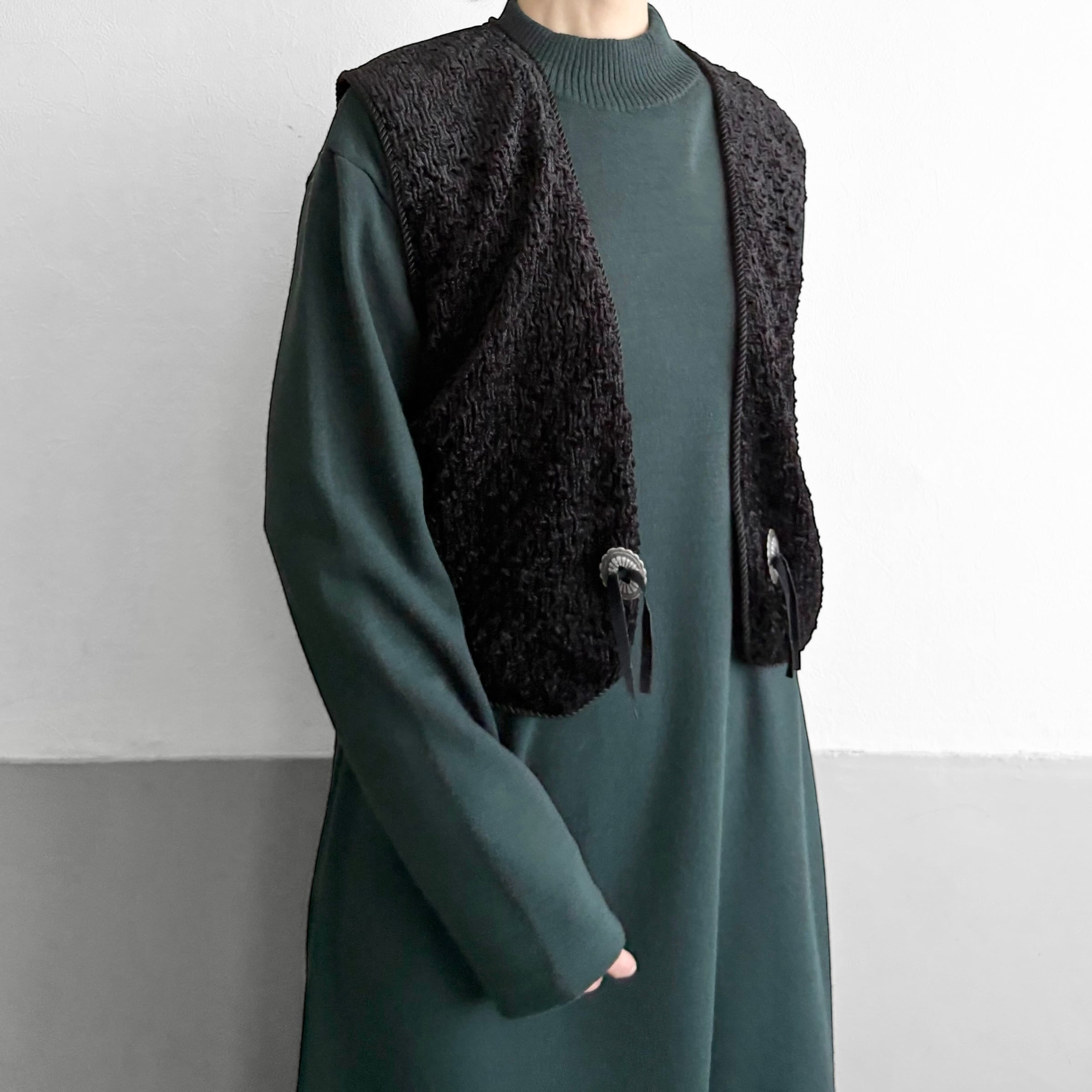 フロントは細かなバスケットのような編み模様、バックはフラットなベロア。