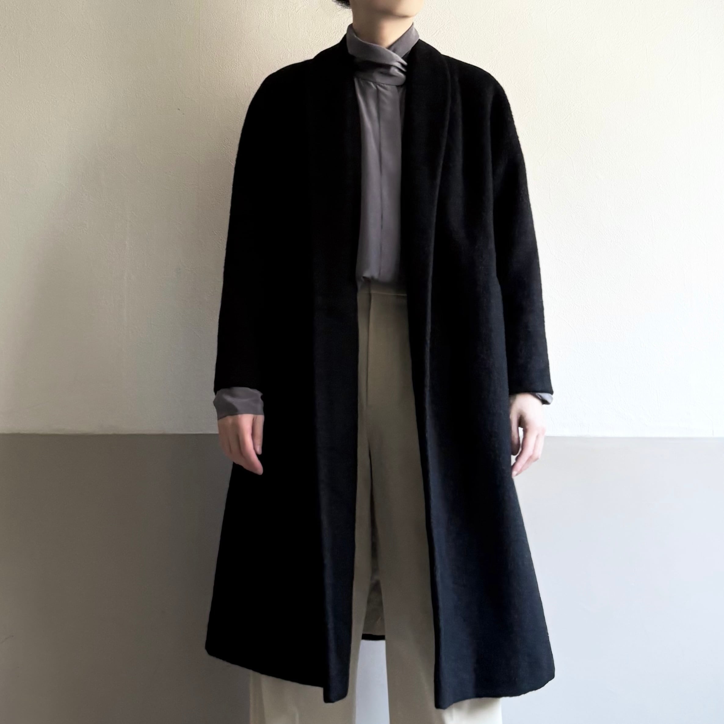 素材の良さとスタイリッシュなシルエットが際立ち、羽織るだけで品よくまとまります。