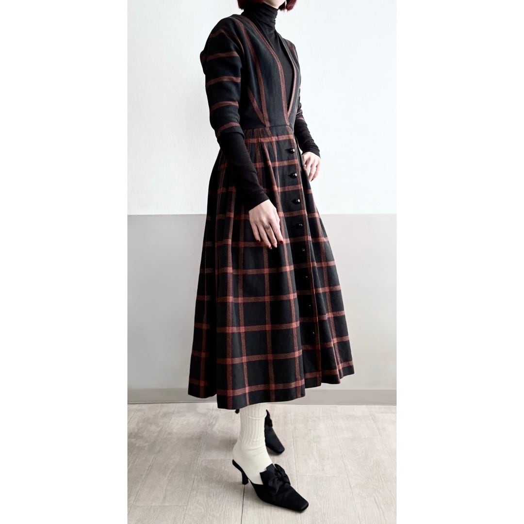 また、チェックの模様に沿ったタック、ストライプに沿ったバストダーツに、作り手の手間とこだわりが感じられます。