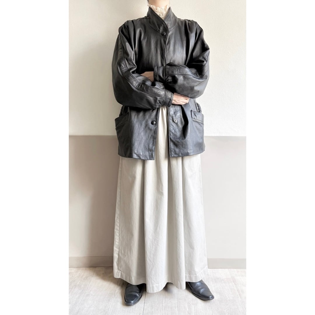 重量感は少なくシープやラムレザーのような、レザーの中では比較的軽めの着心地です。