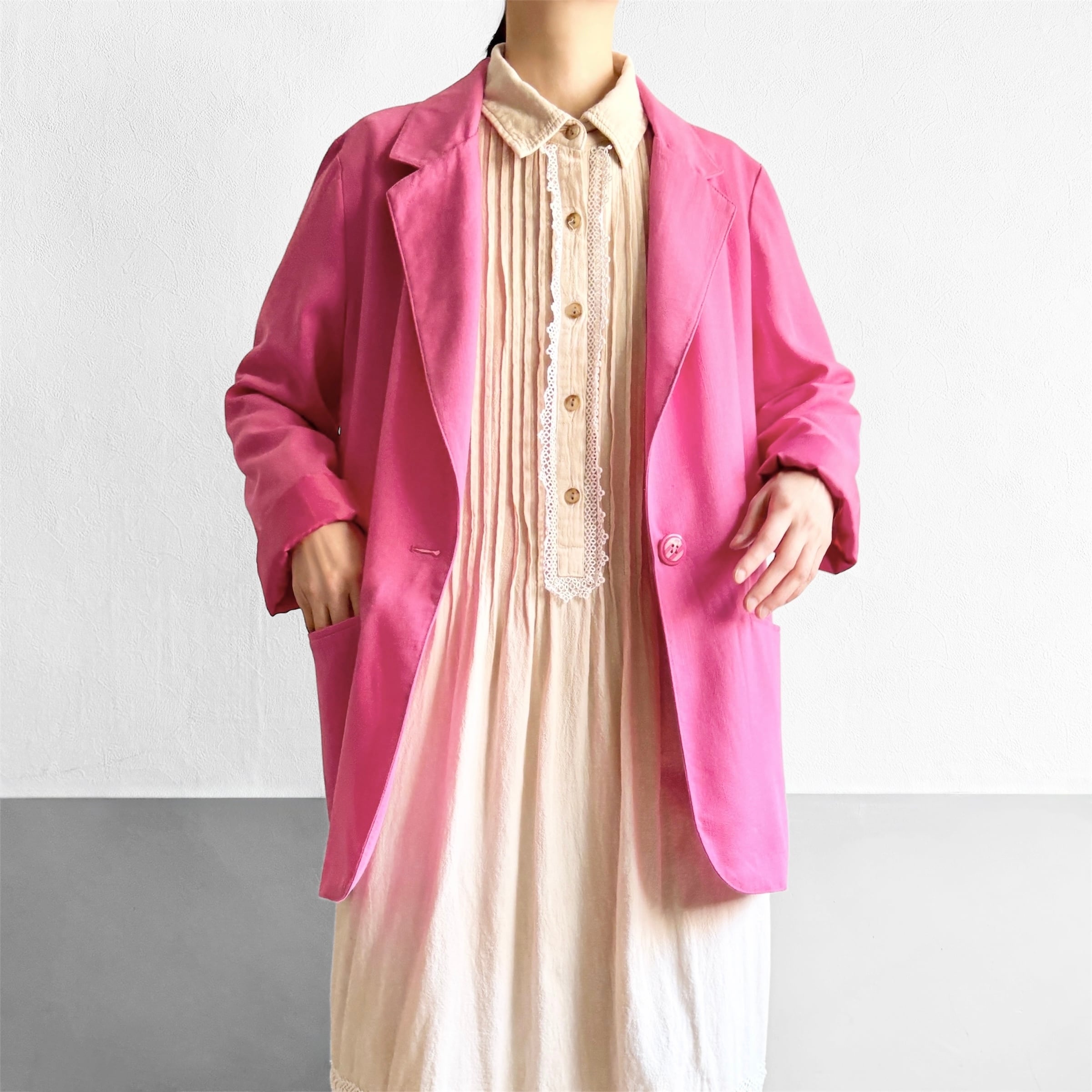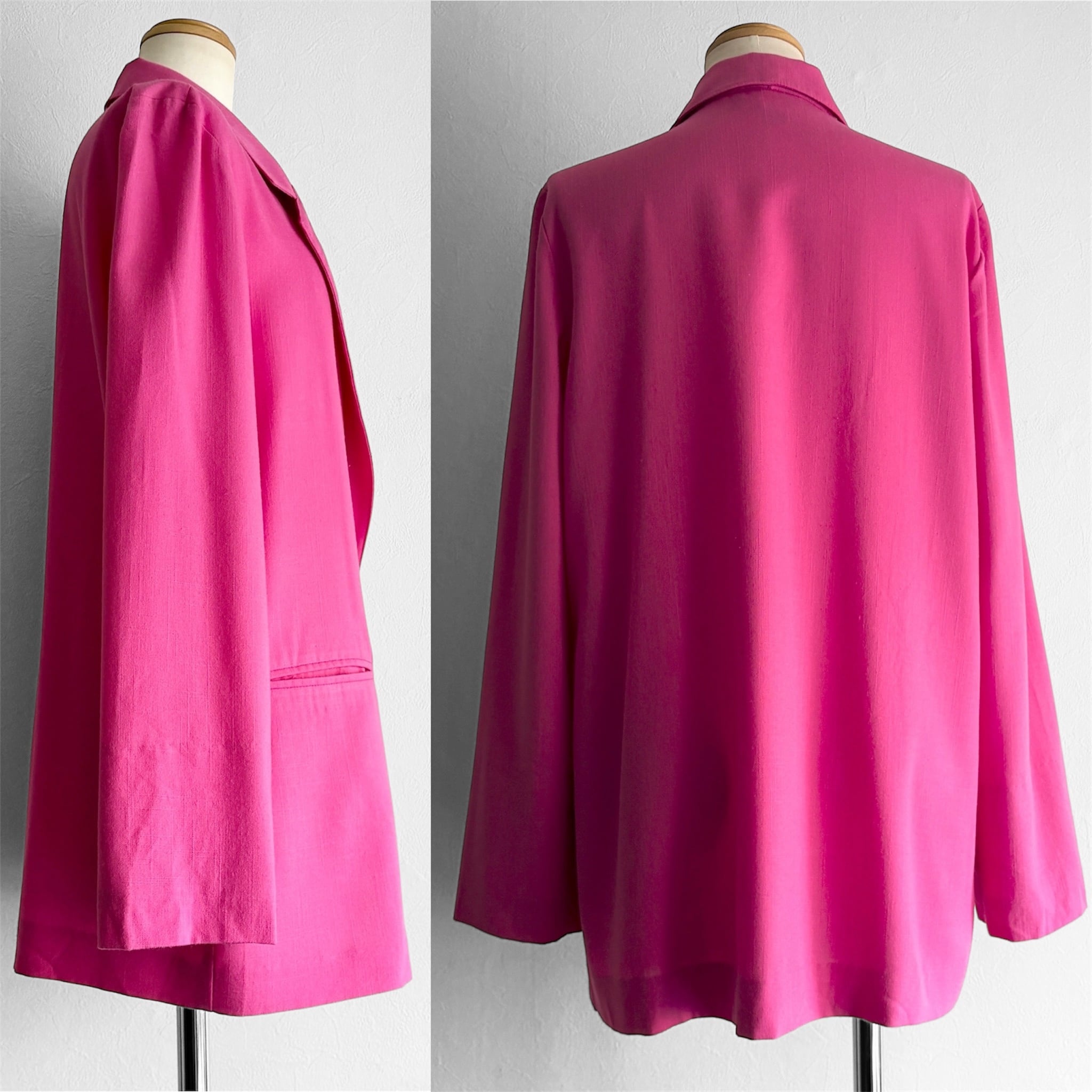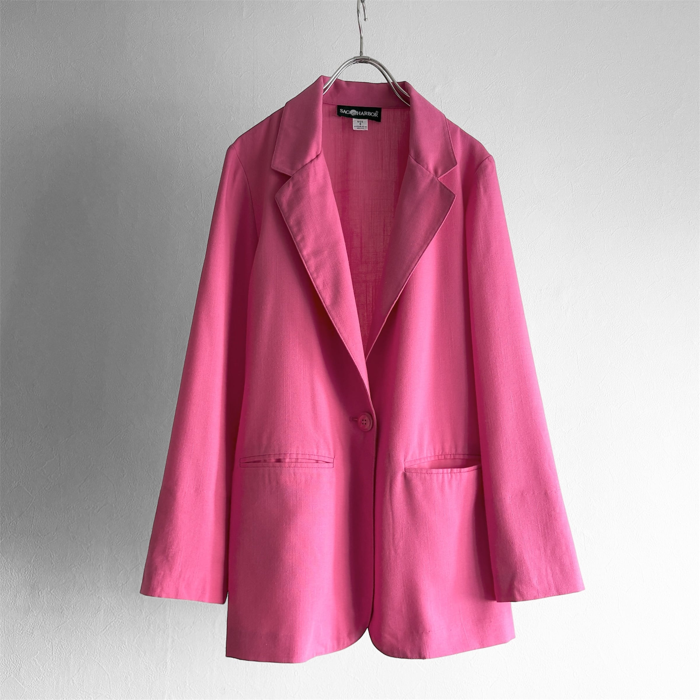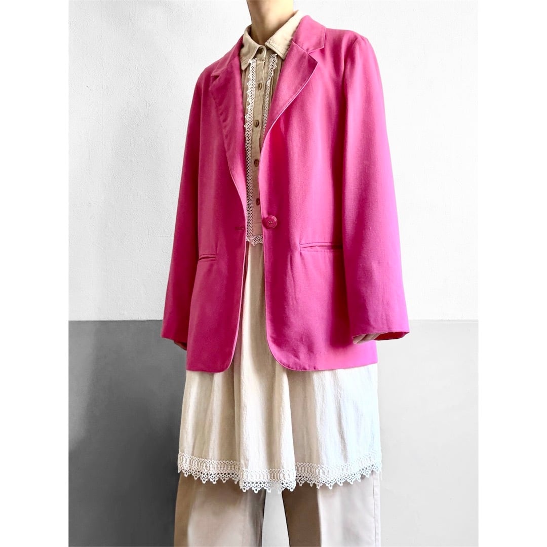 シンプルでベーシックなデザインながら、発色の良いピンクカラーが特徴的なジャケット。
