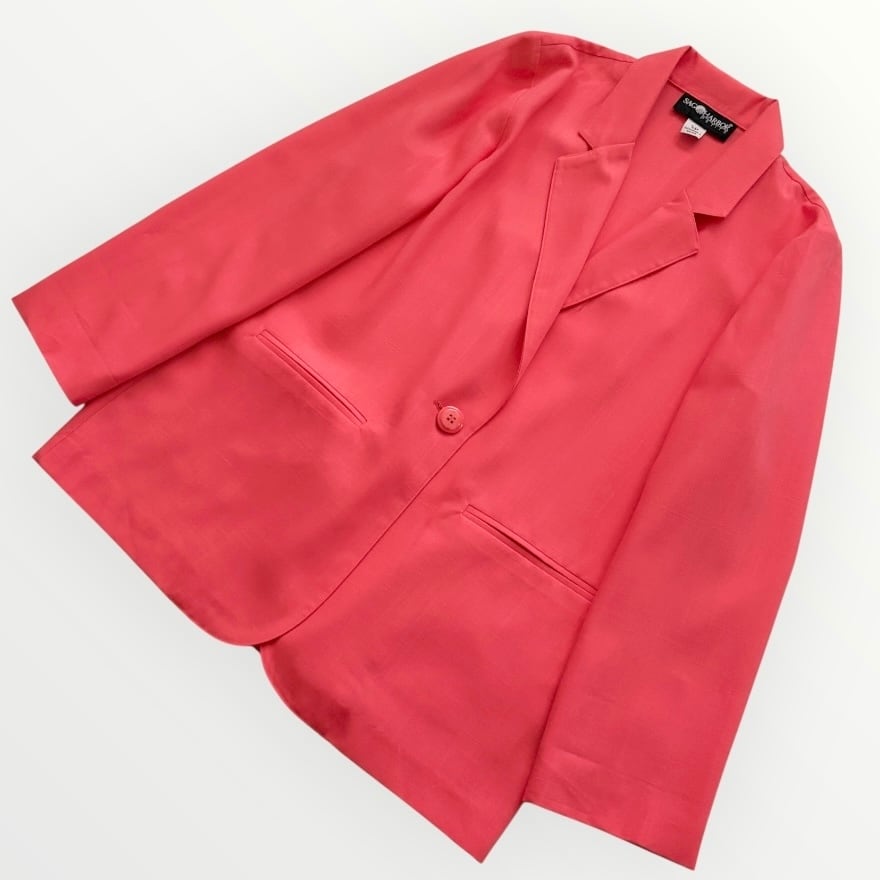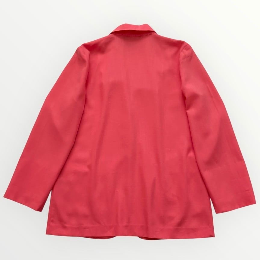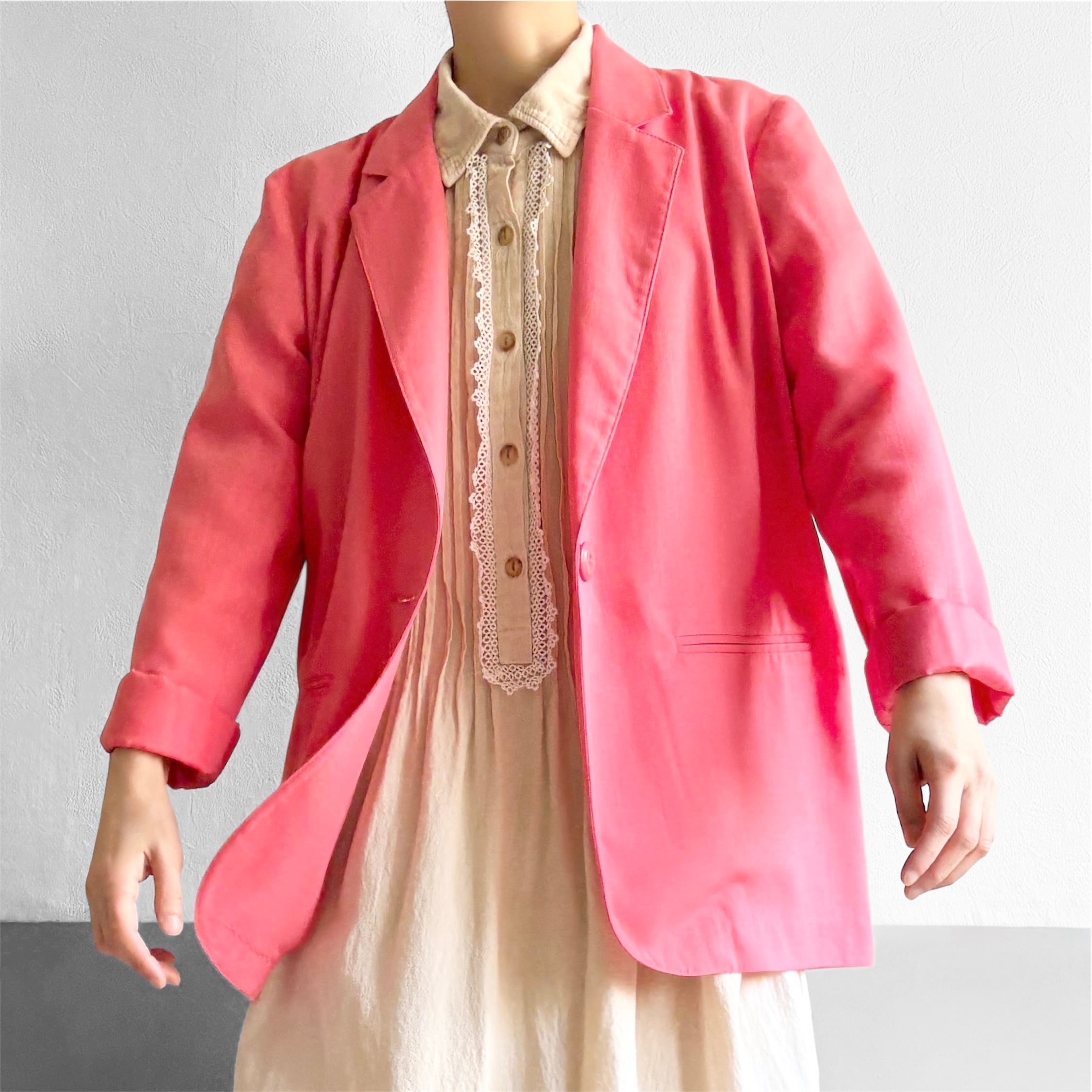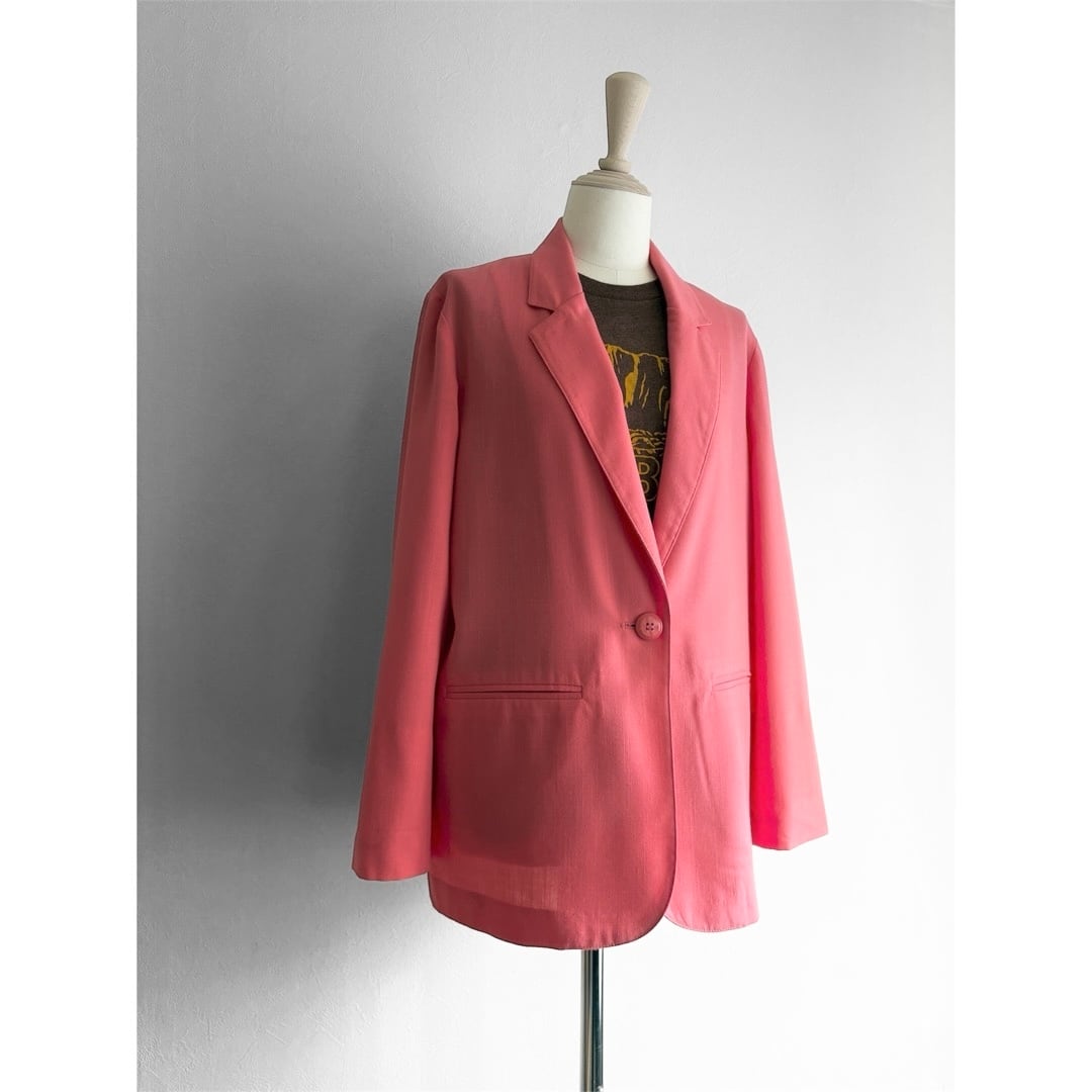 オレンジがかったピンクが美しいテイラードジャケット。