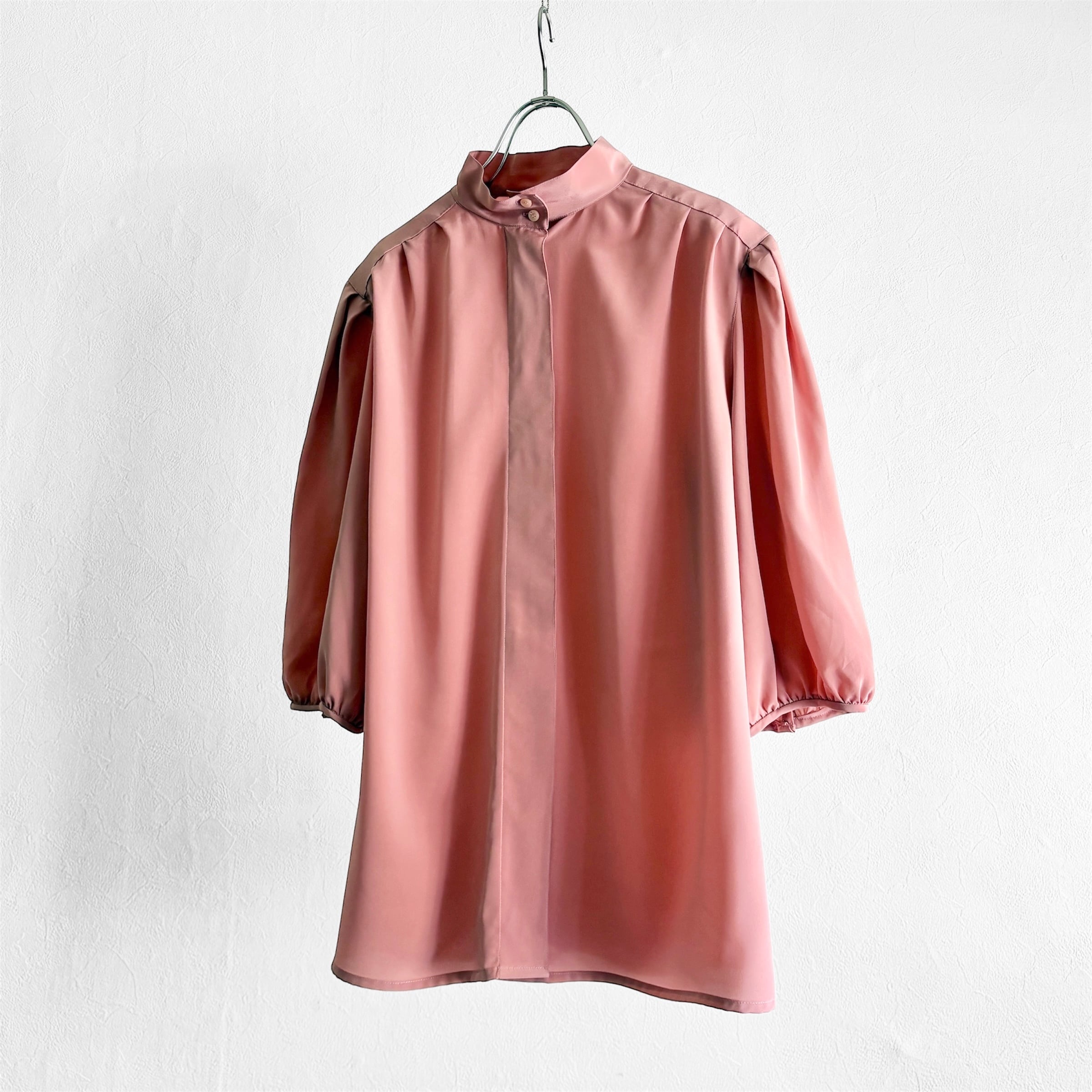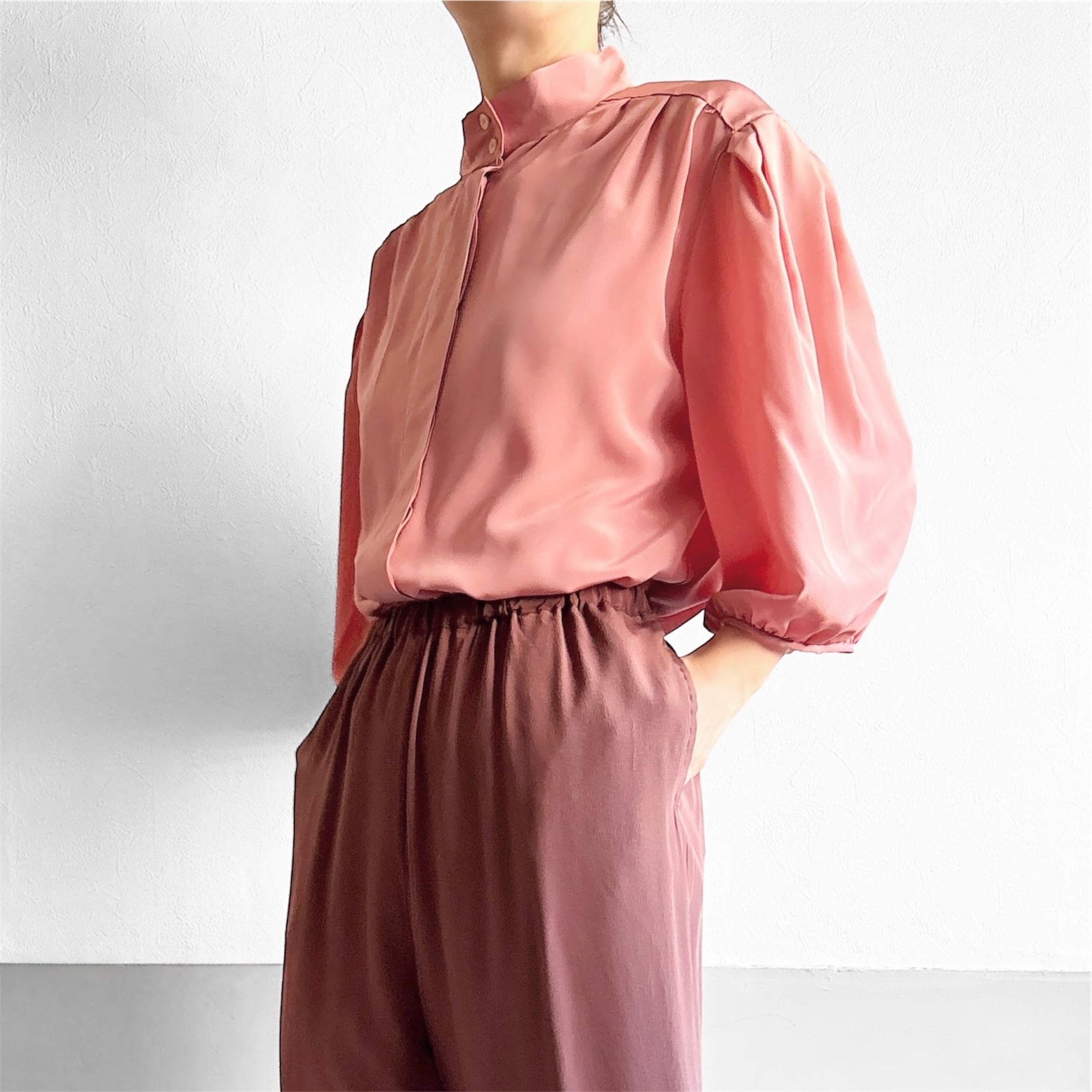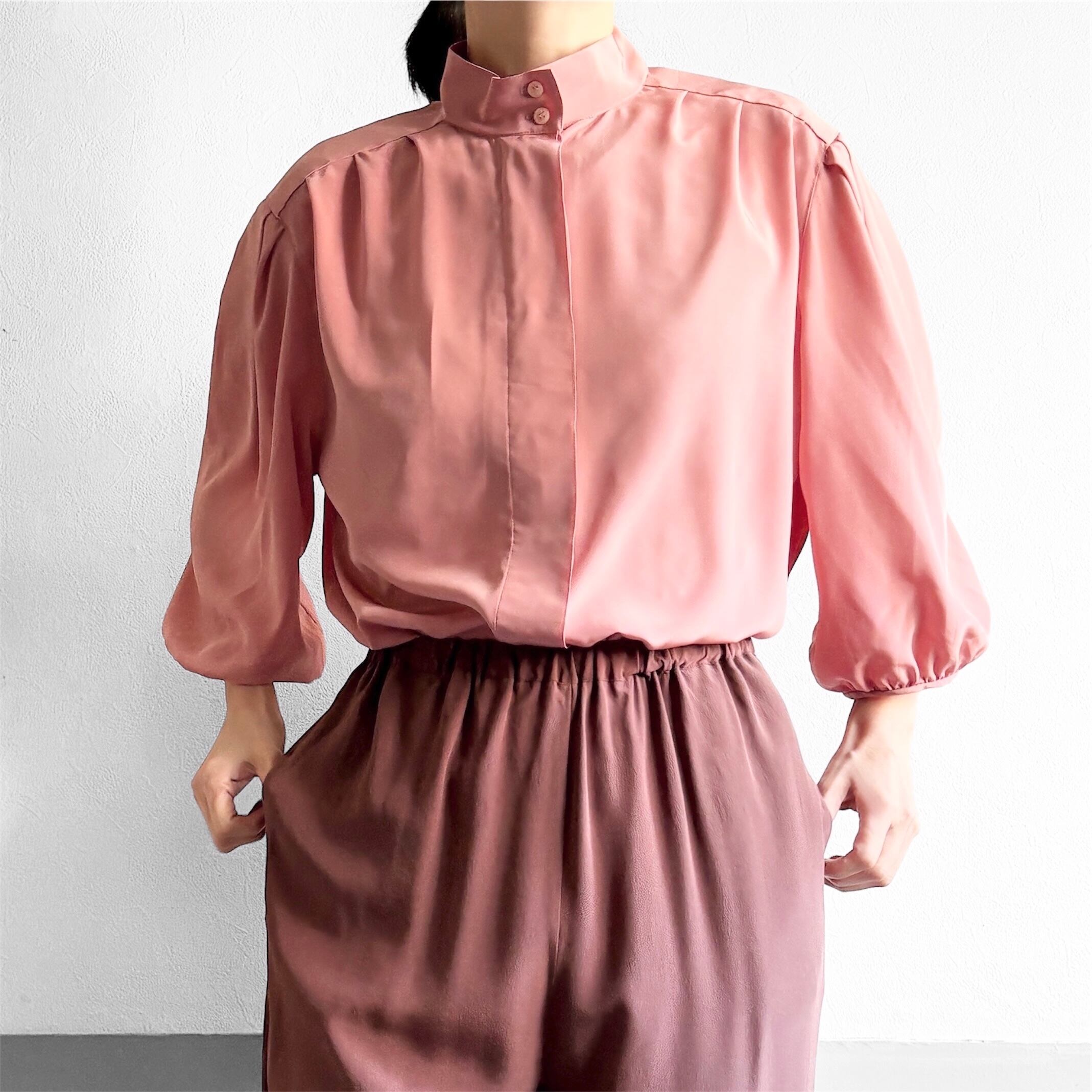 対照的にくすんだピンクやふんわりとしたバルーンスリーブが柔らかな印象で、スタイリッシュで甘くなりすぎないブラウス。