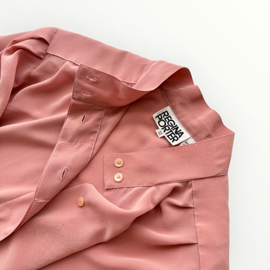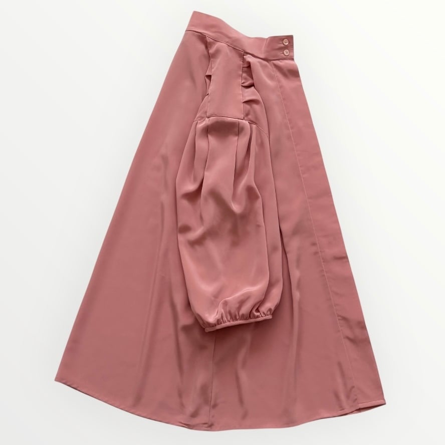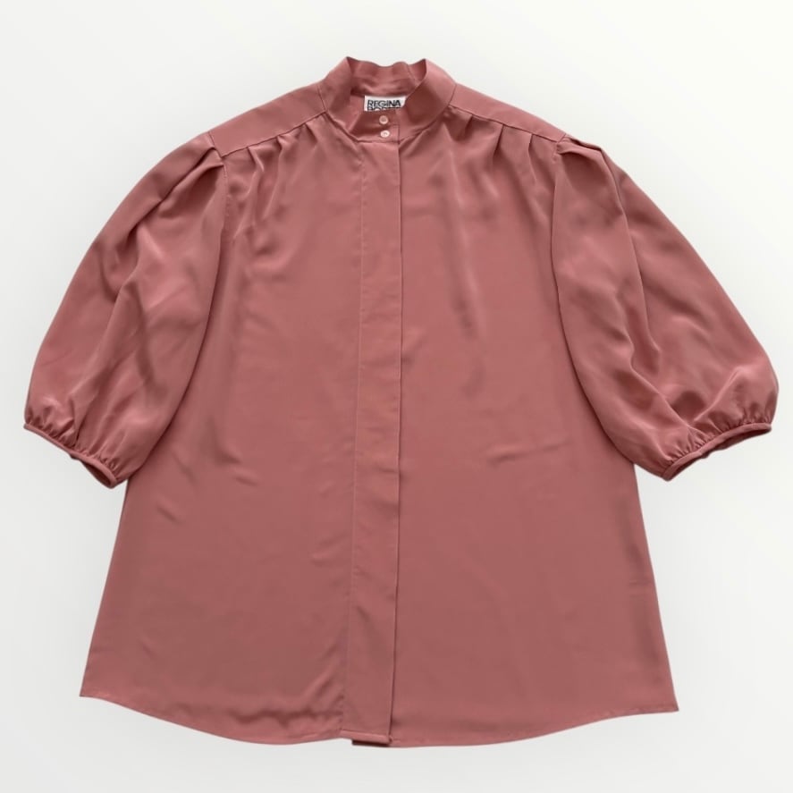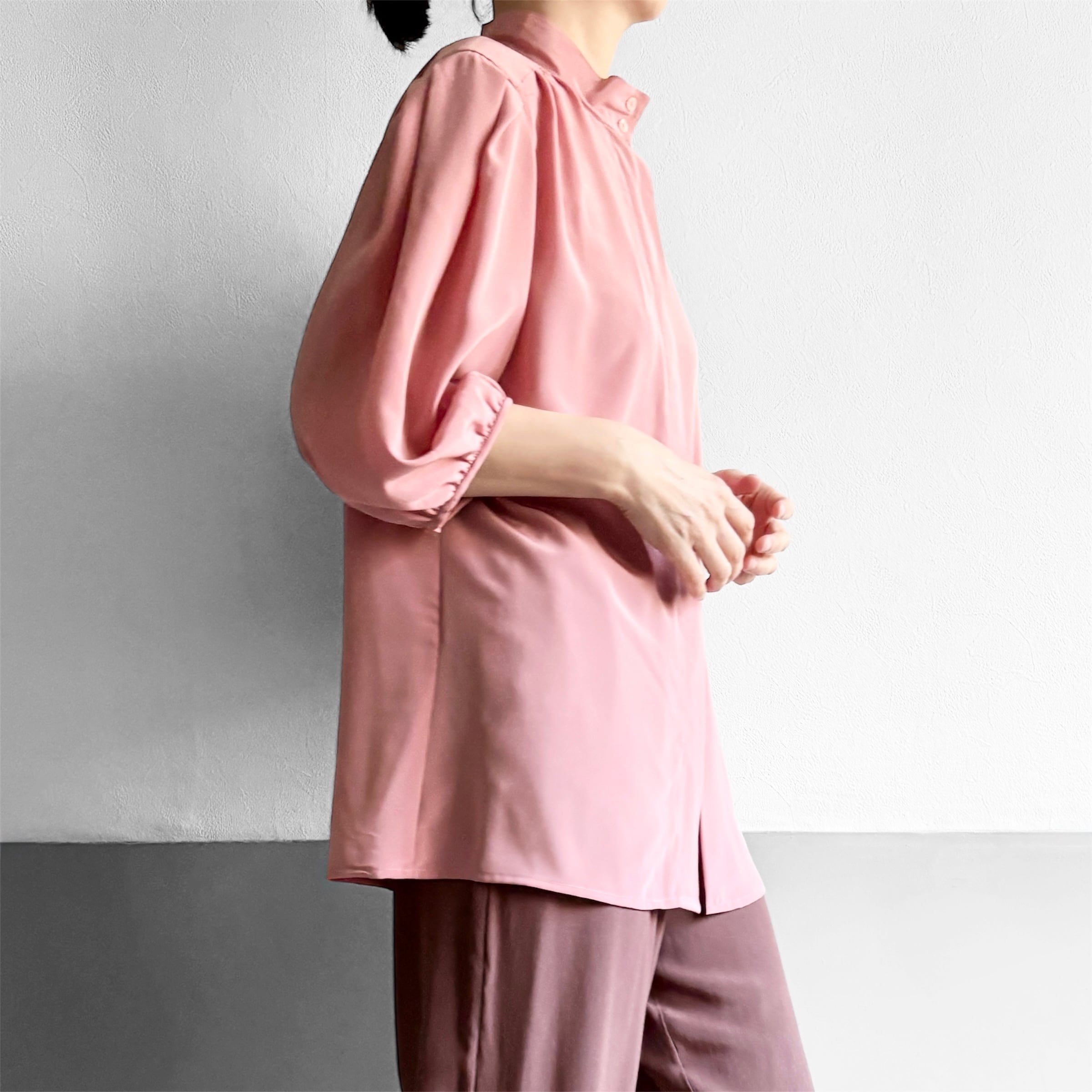 対照的にくすんだピンクやふんわりとしたバルーンスリーブが柔らかな印象で、スタイリッシュで甘くなりすぎないブラウス。