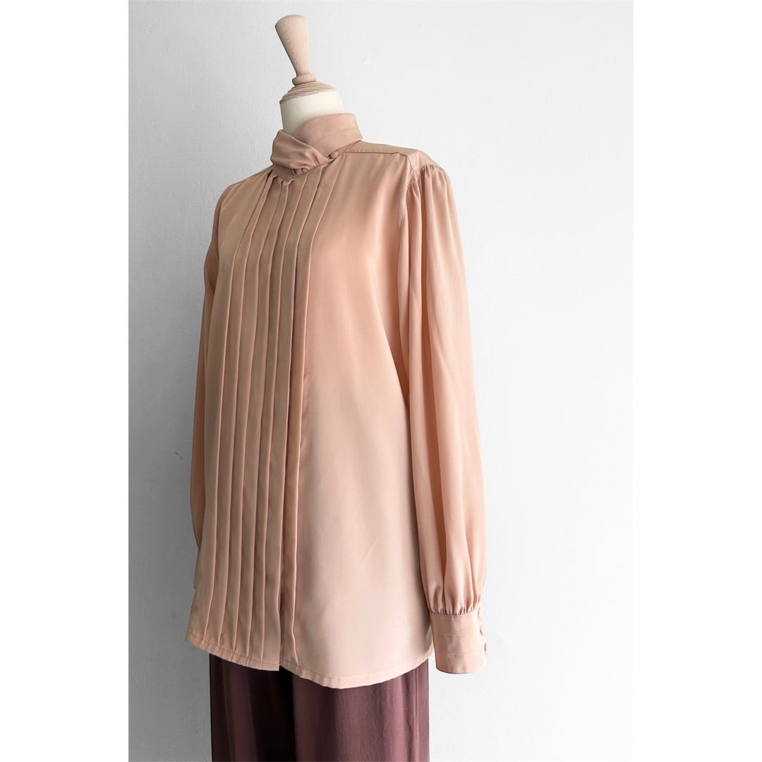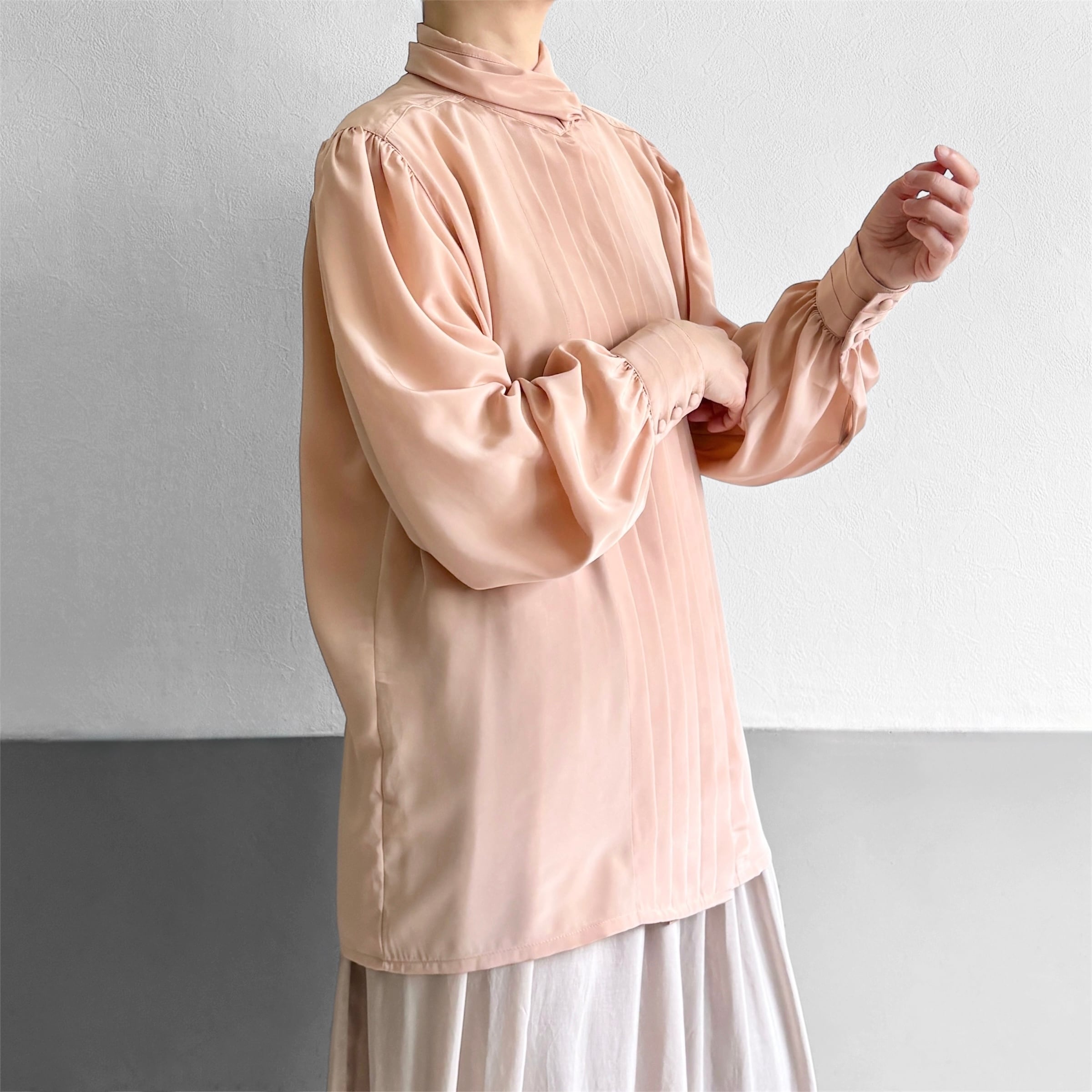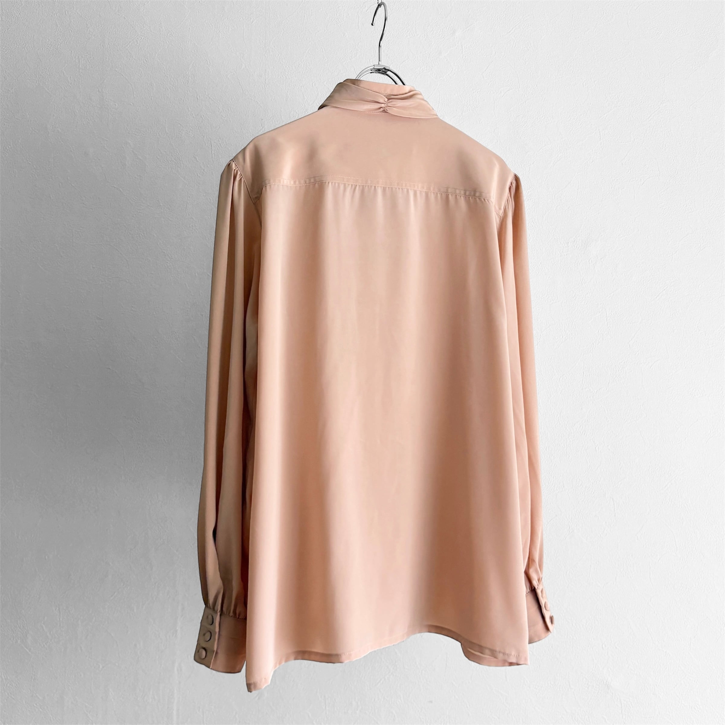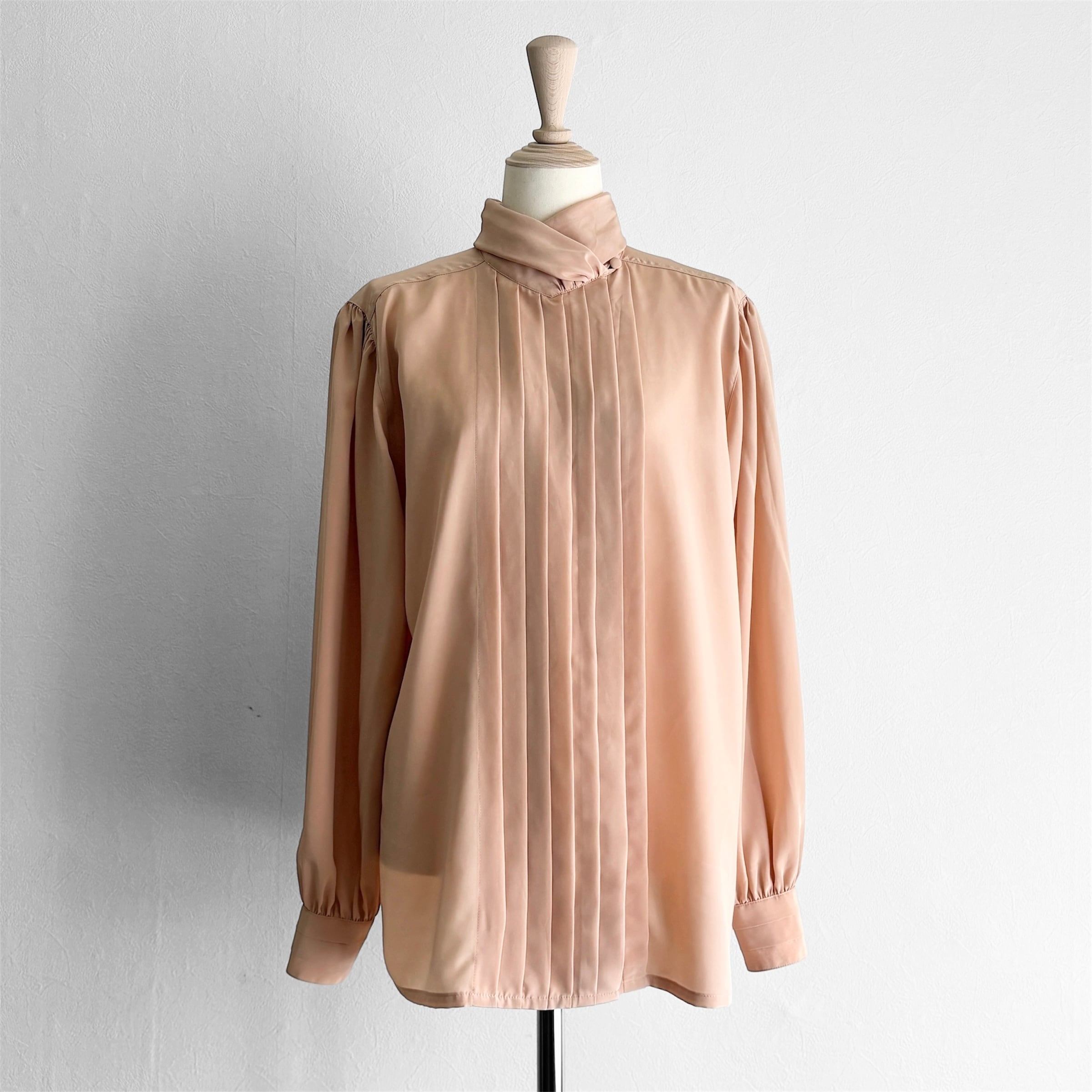マットなピーチピンクが肌なじみ良く、柔らかな雰囲気のブラウス。