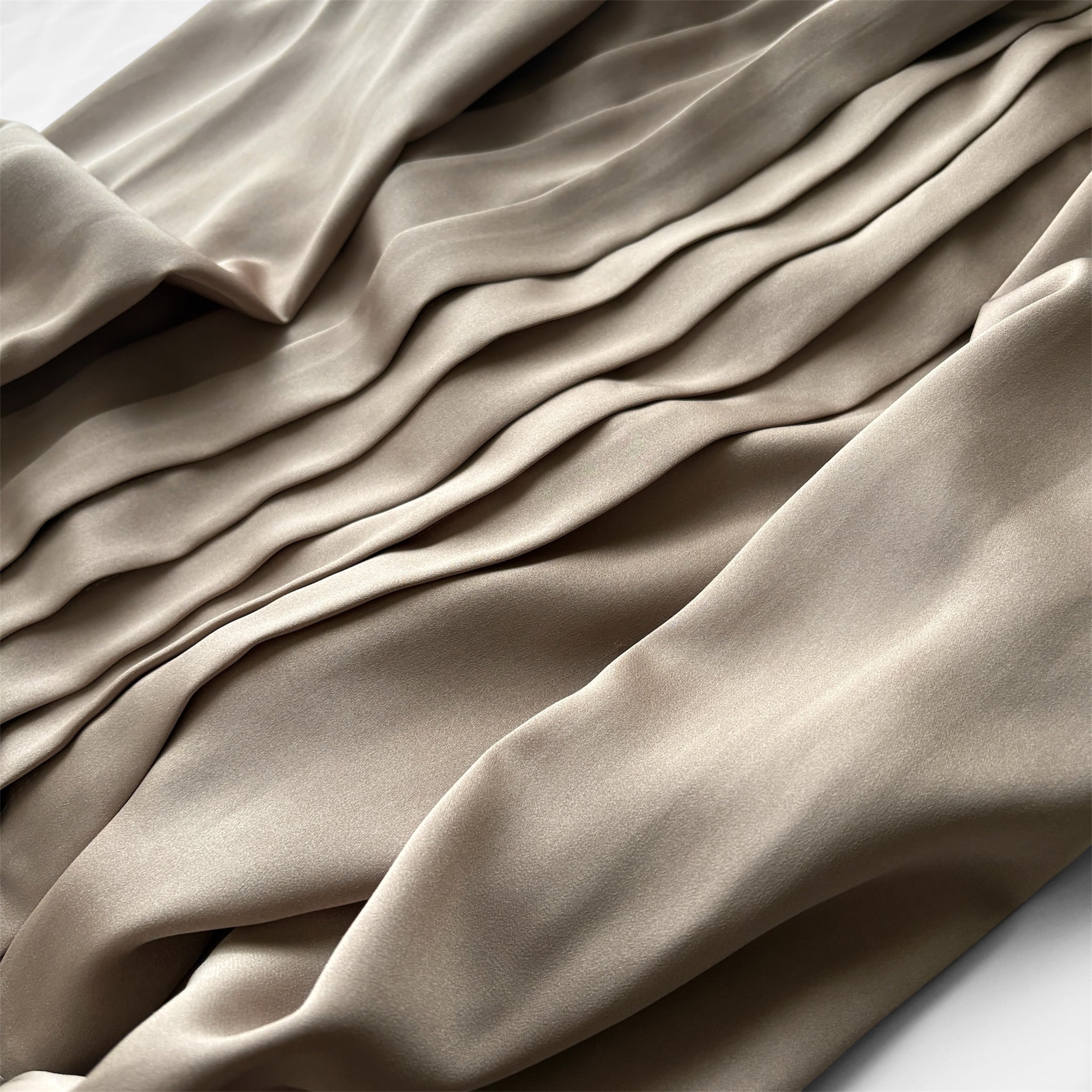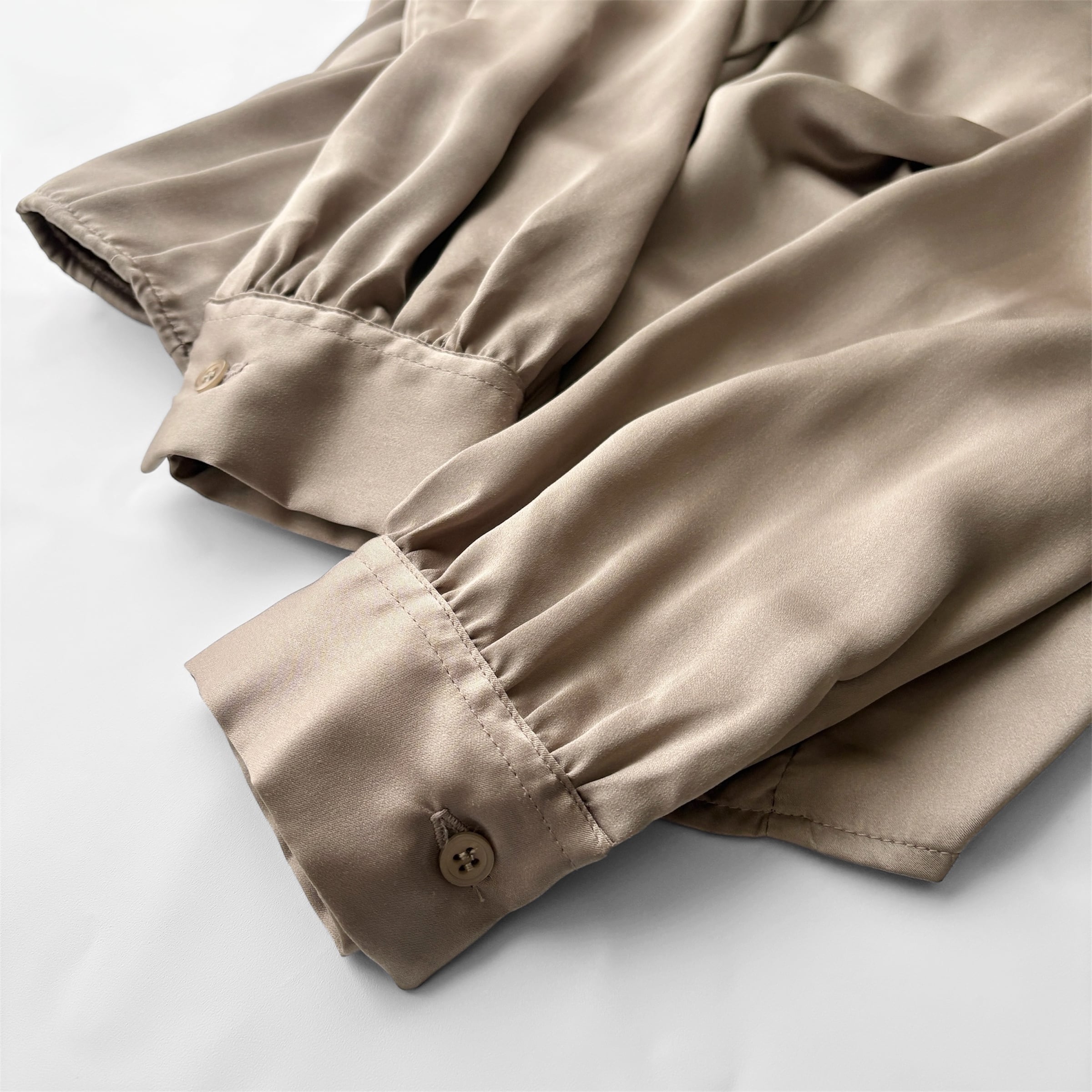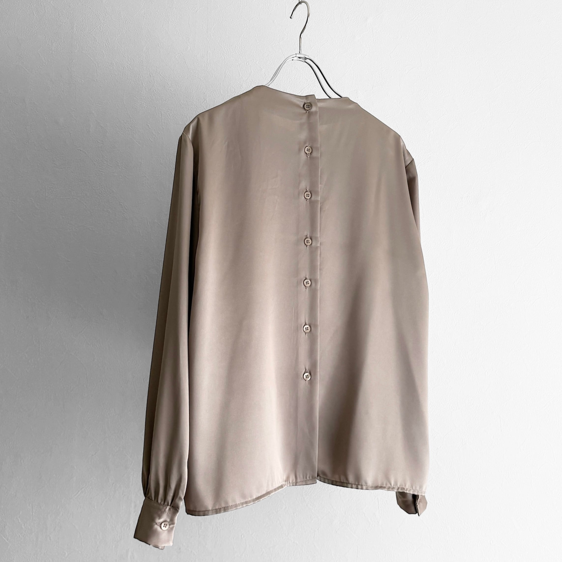 落ち着いた光沢と柔らかなくすみカラーが品のあるブラウス。