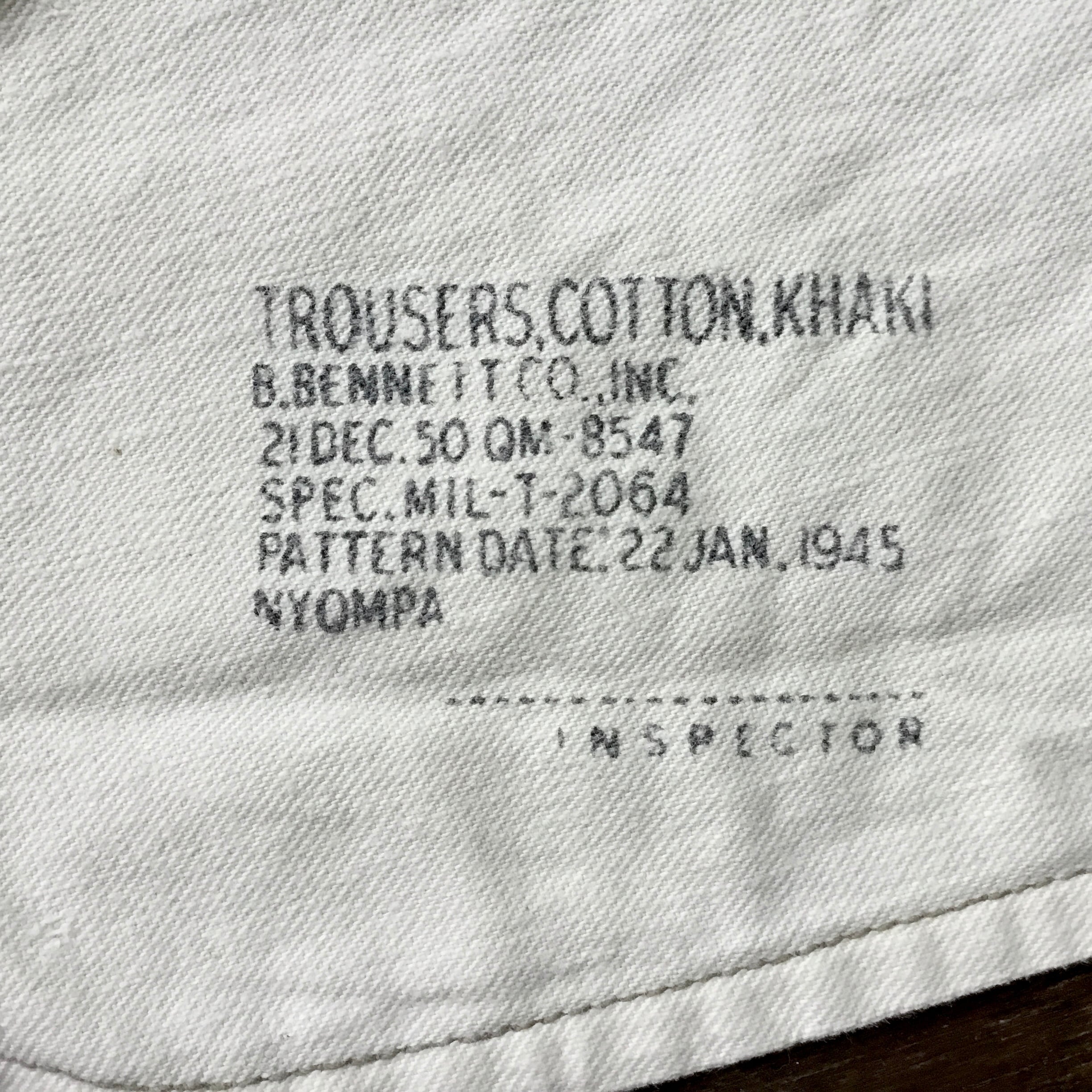 アメリカで買い付けた、1940年代の【USミリタリー】M-45 チノトラウザー。
