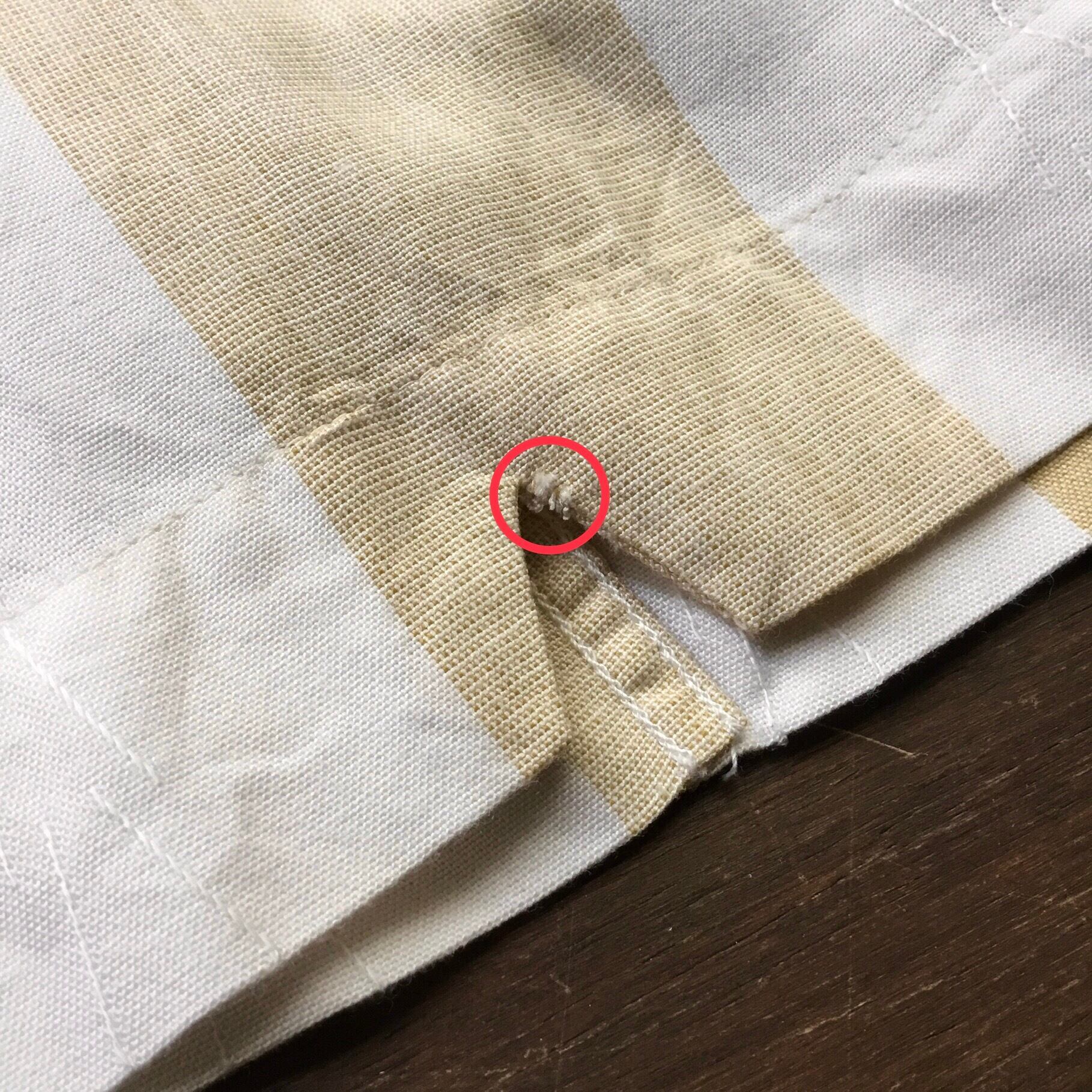 前面ボタン上から4個目の右側に小さなシミがあります(画像15)。