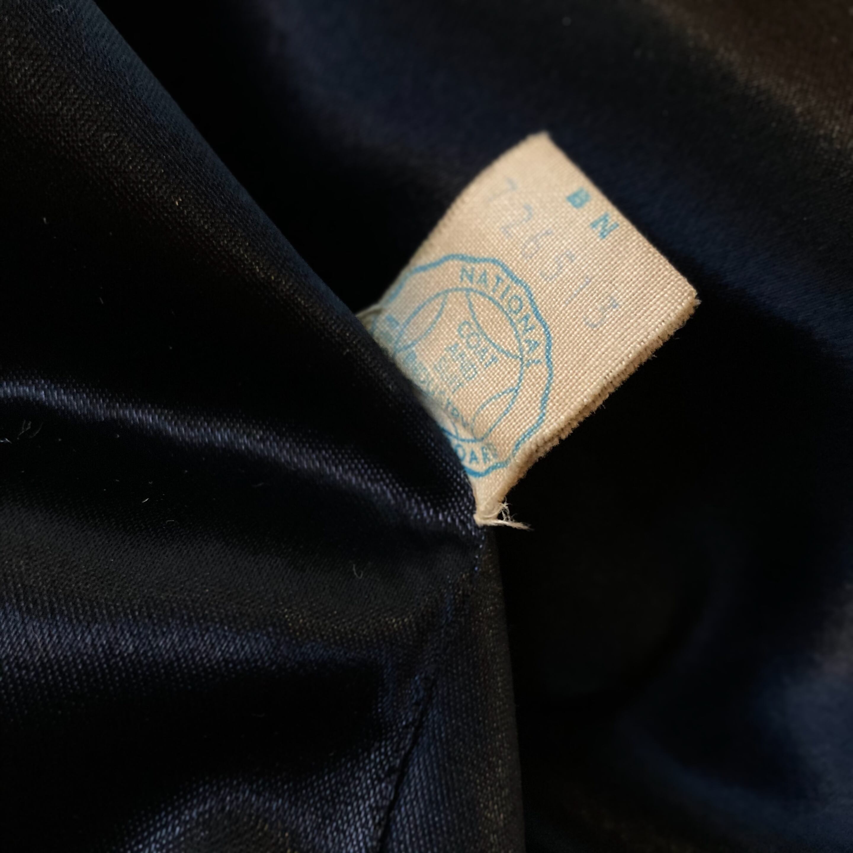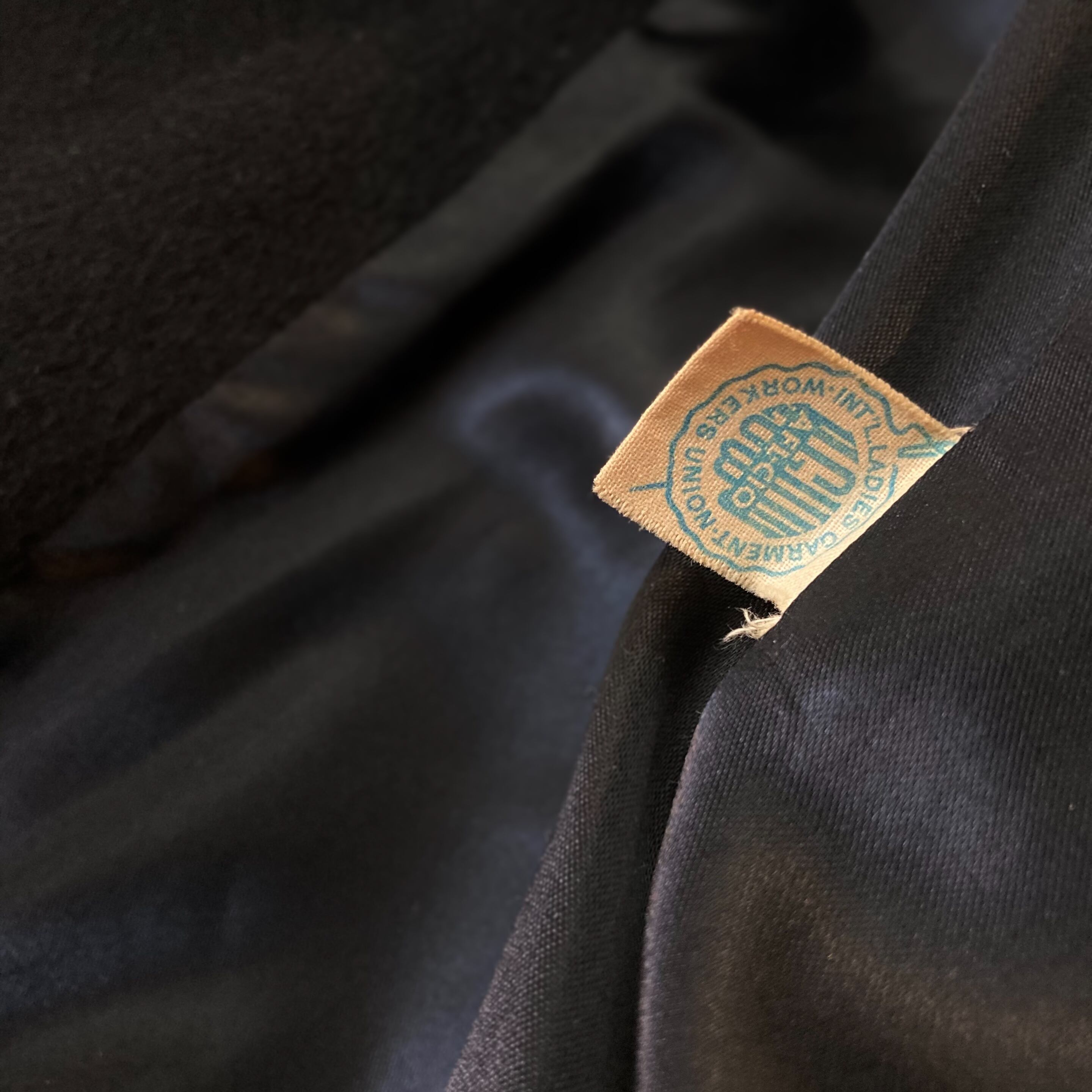 この時代らしい、大きく凝ったボタンと短めの袖丈。