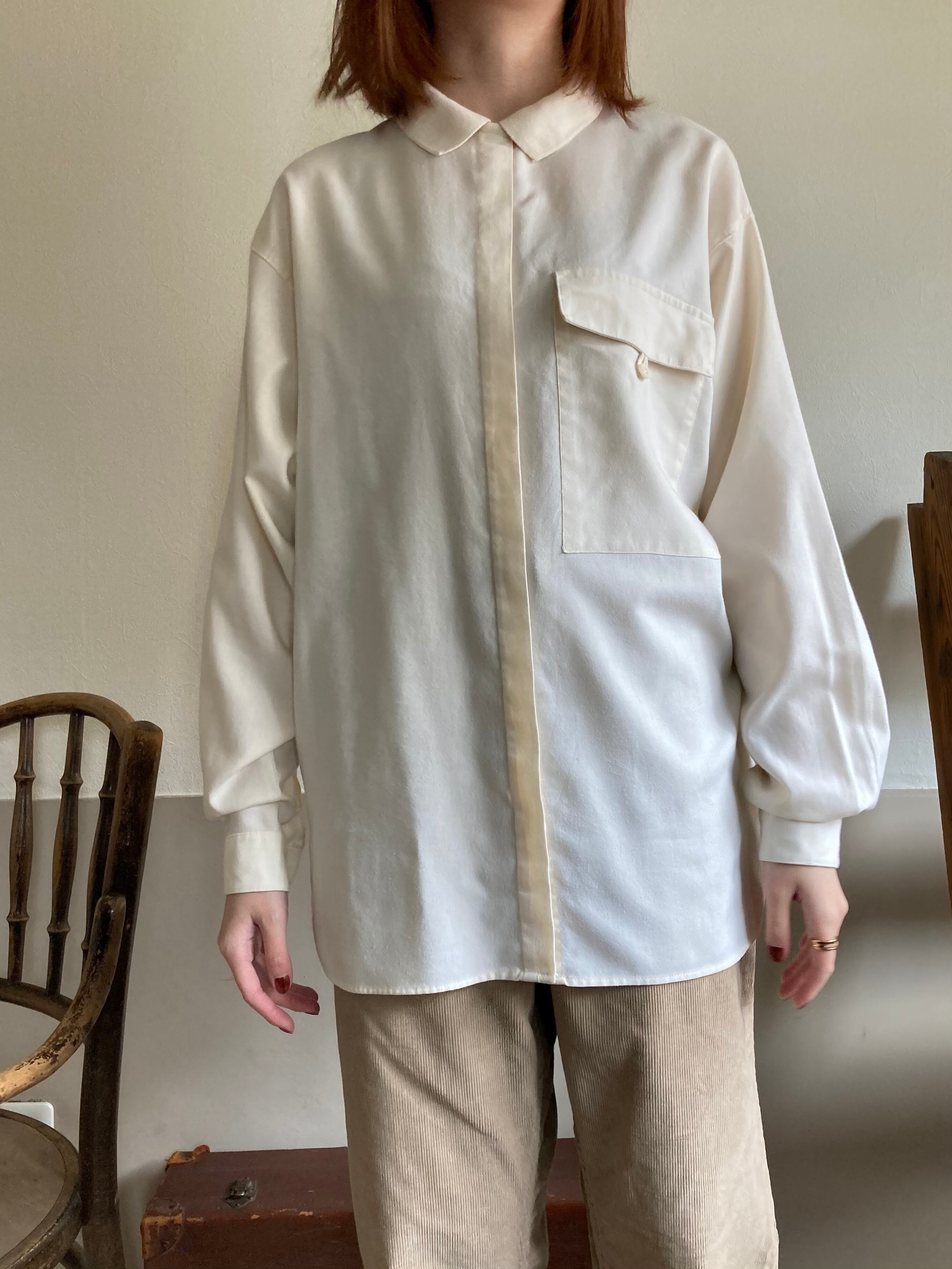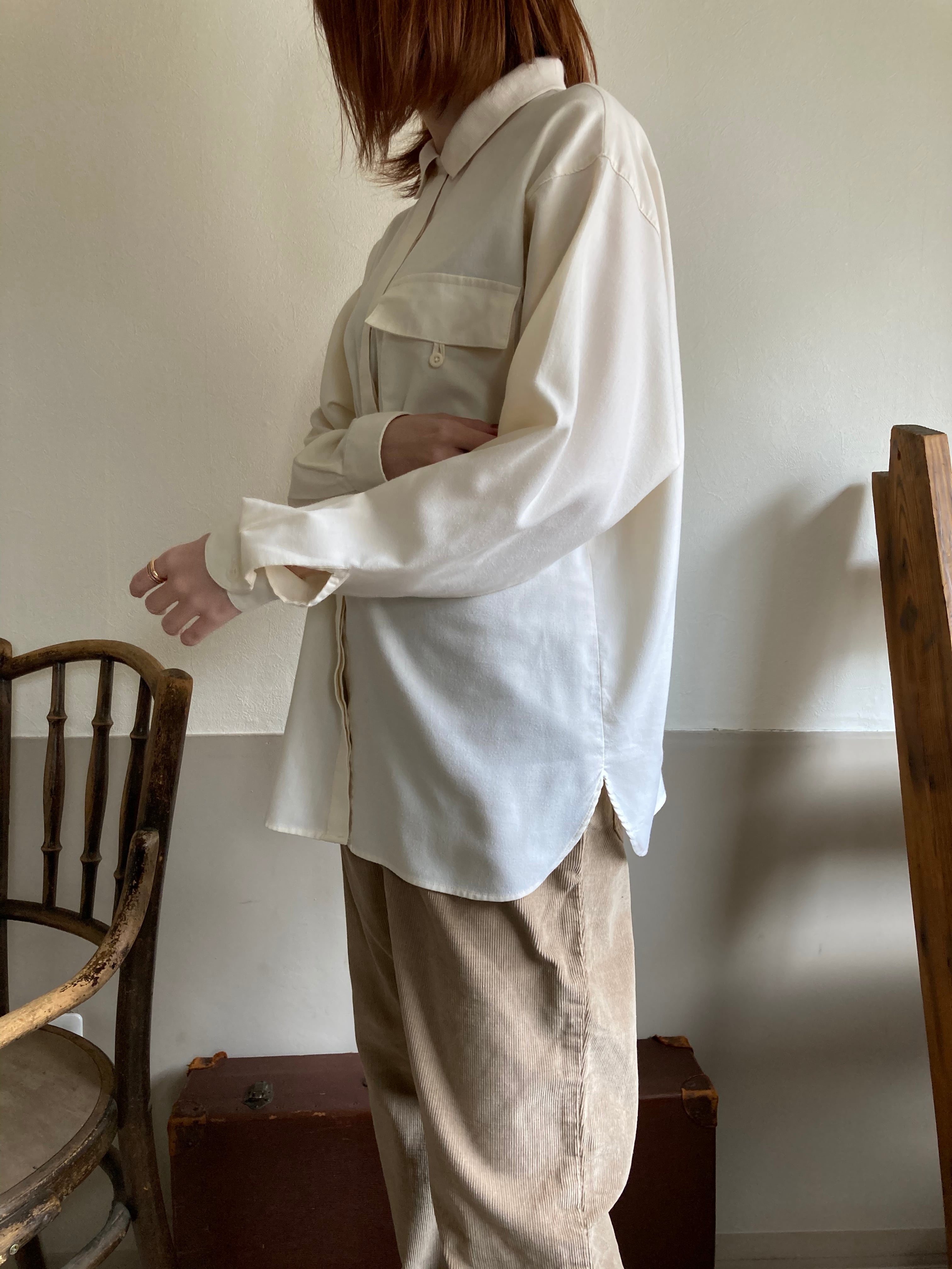 アイボリーカラーのコットンブラウス。