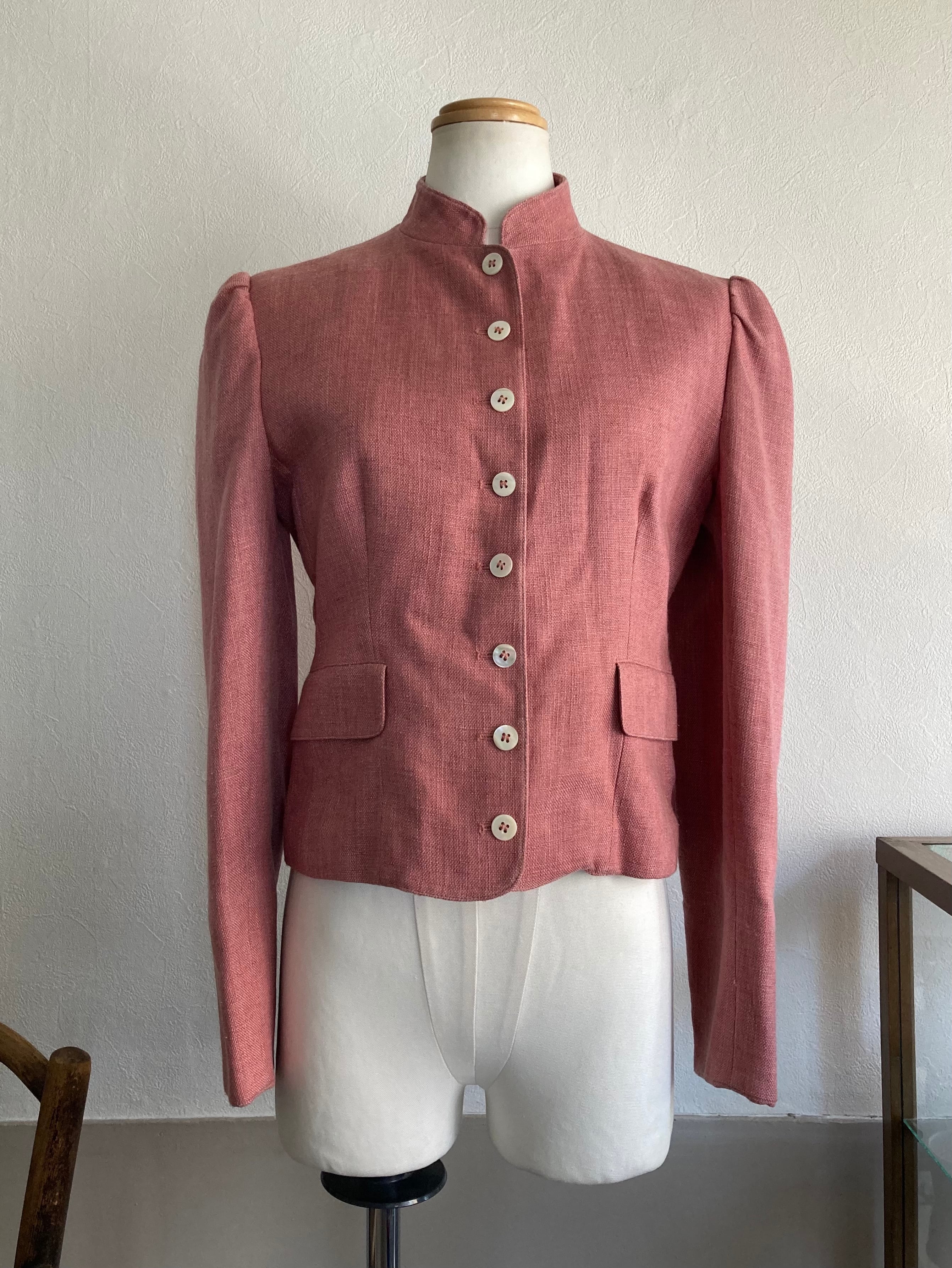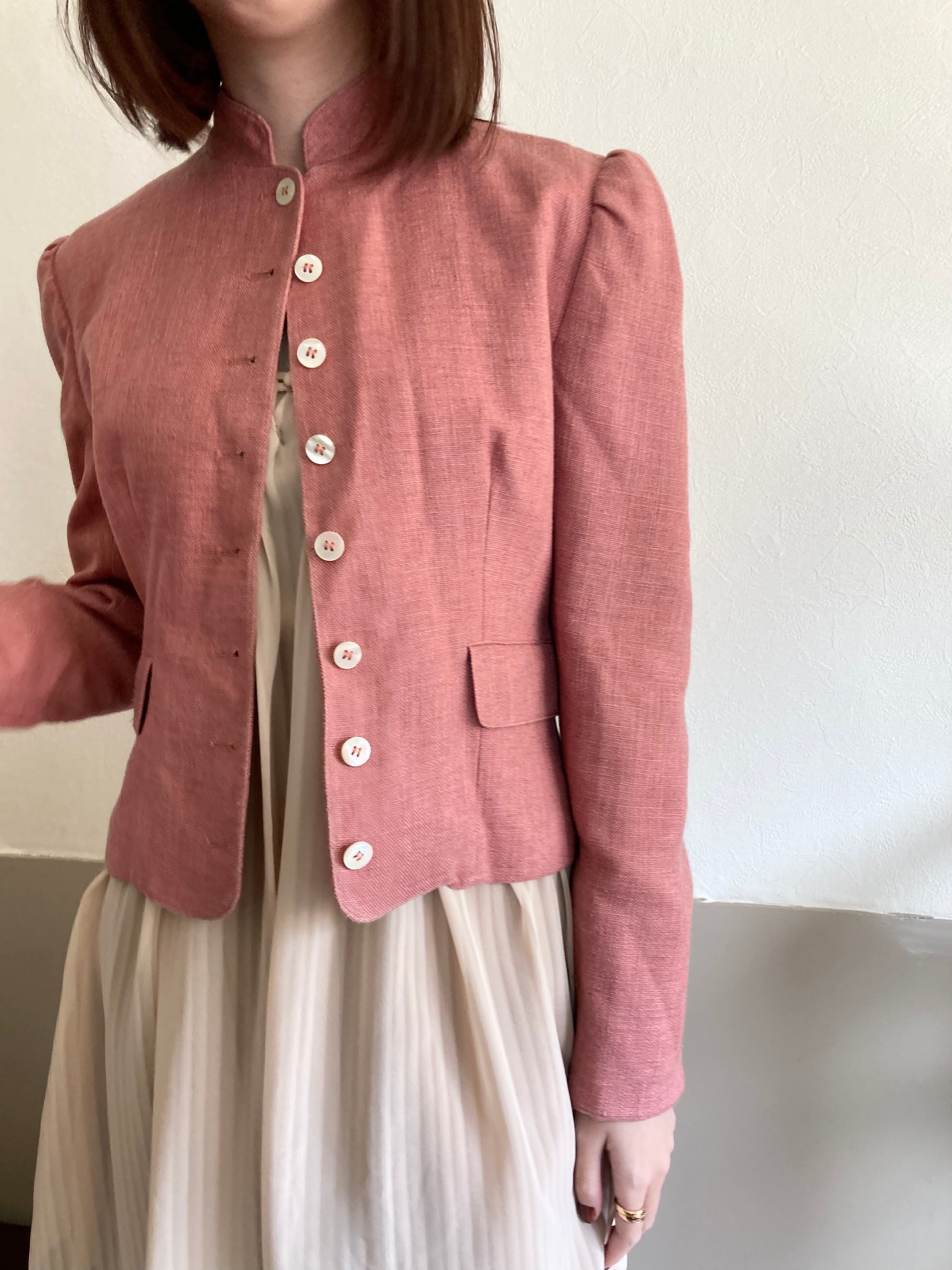 スタンドカラーや細かな間隔のボタン、