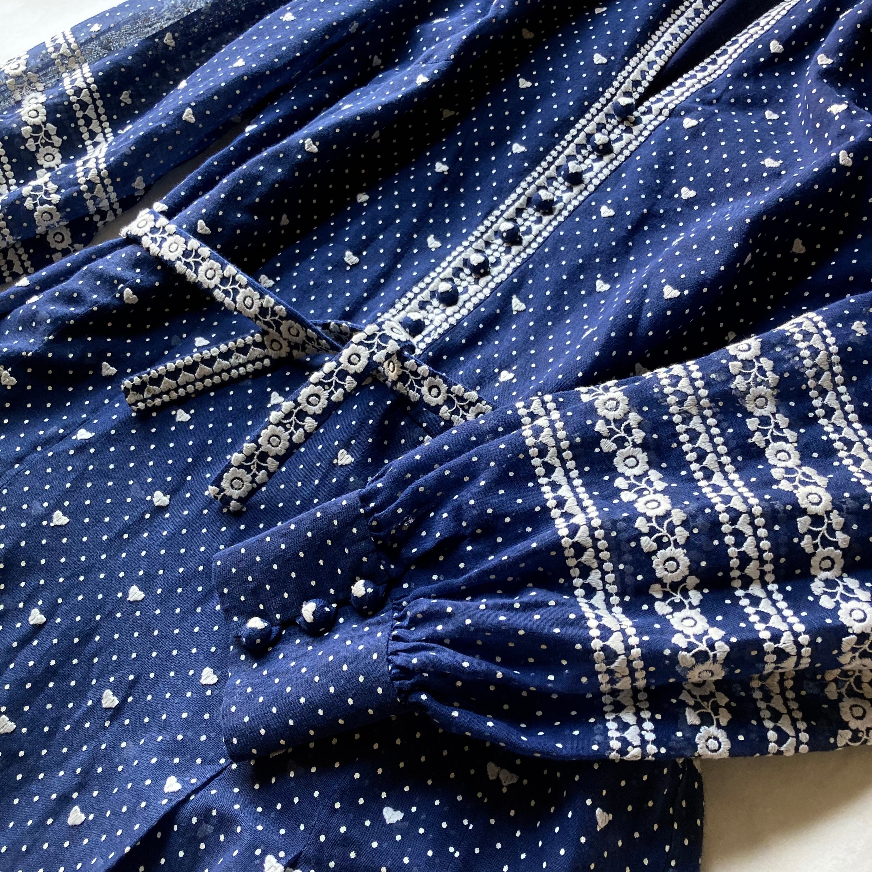 ネイビーカラーのヴィンテージ刺繍ワンピース。