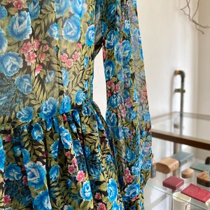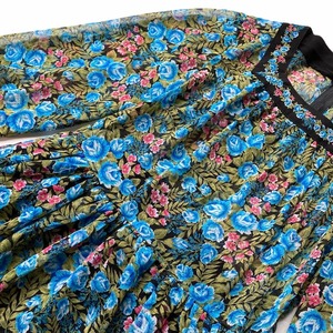 ブラックベースにブルーやグリーンのボタニカル柄が爽やかなシースルーワンピース。