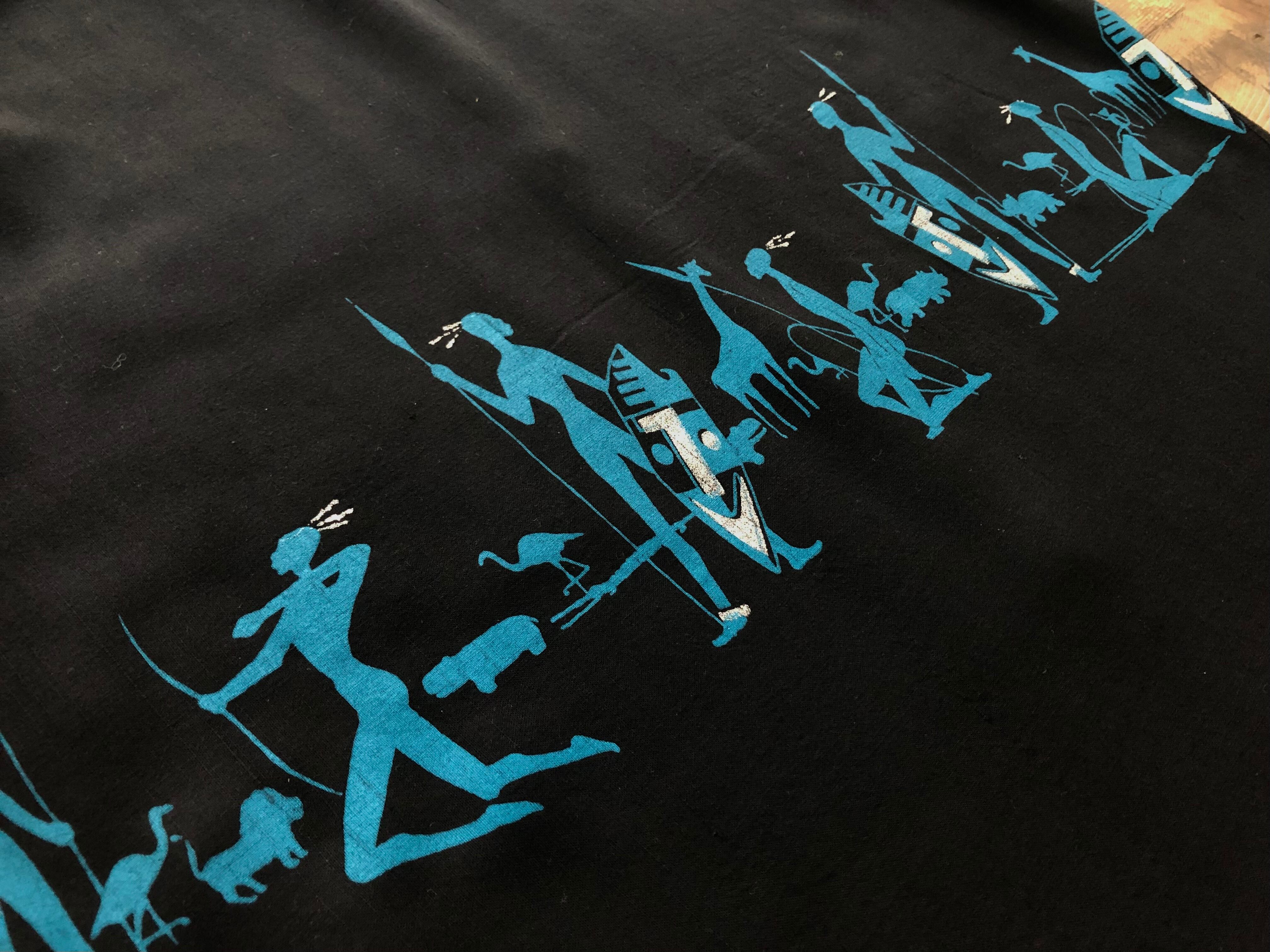 ブラックベースのボディに、ターコイズのトライバル柄のプリント。