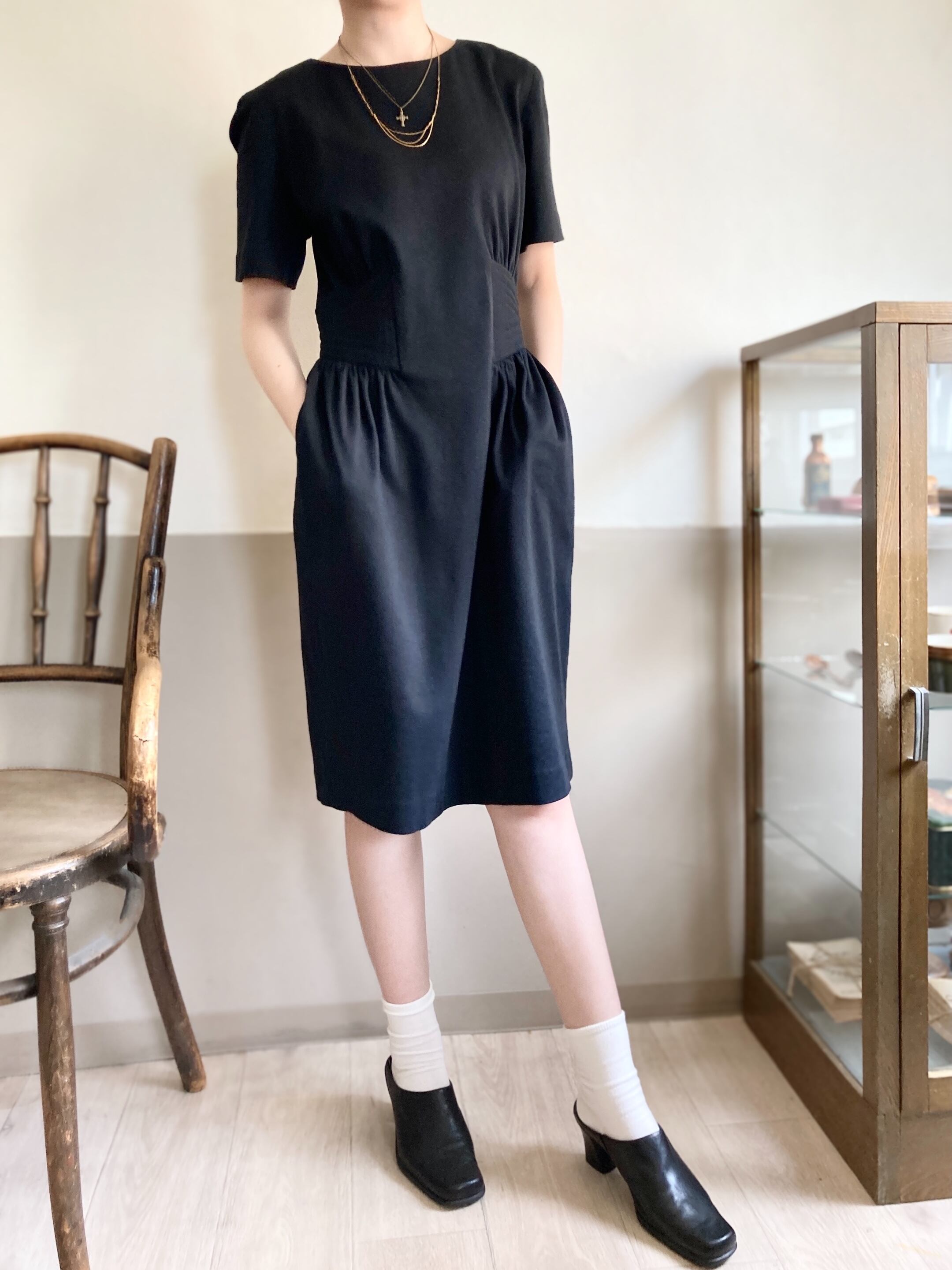 シンプルなブラックカラーの中厚素材が立体的なコクーンシルエットを際立たせます。