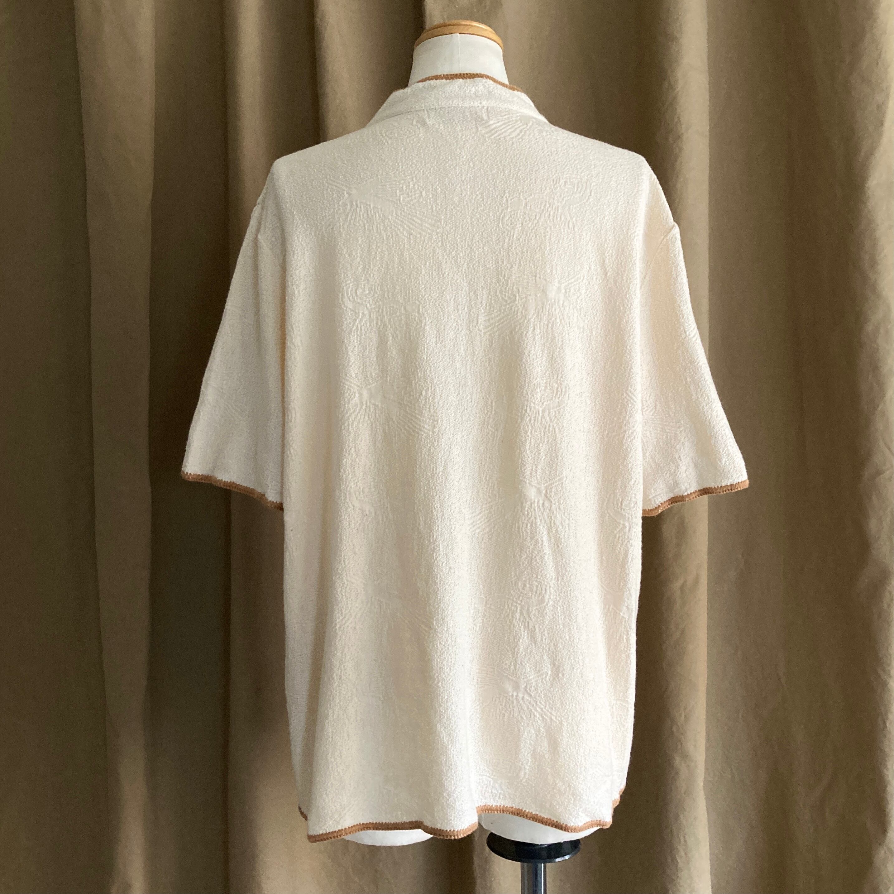 よく見るとナスカの地上絵モチーフが配されたジャカードニット素材。ペルー製。