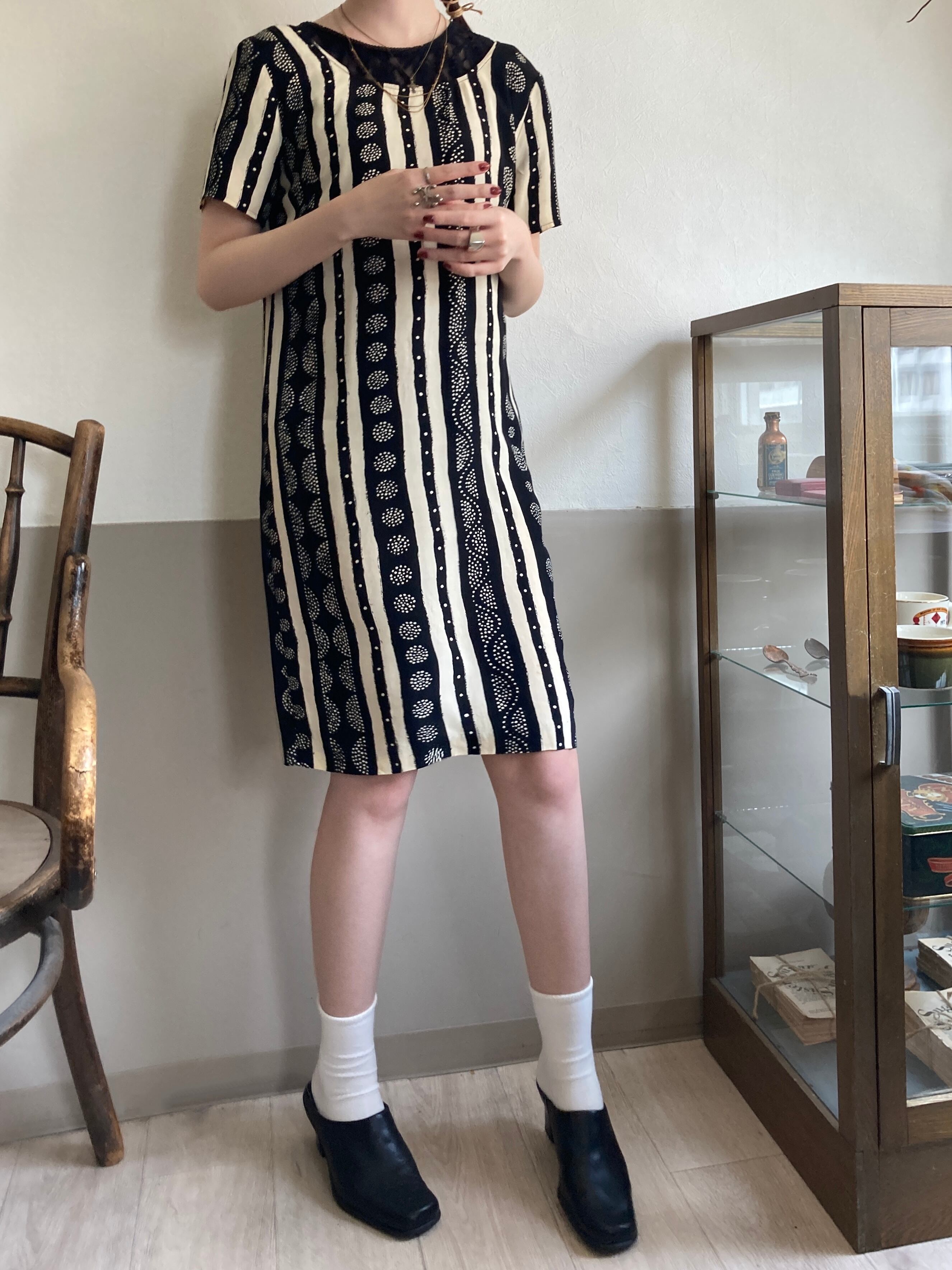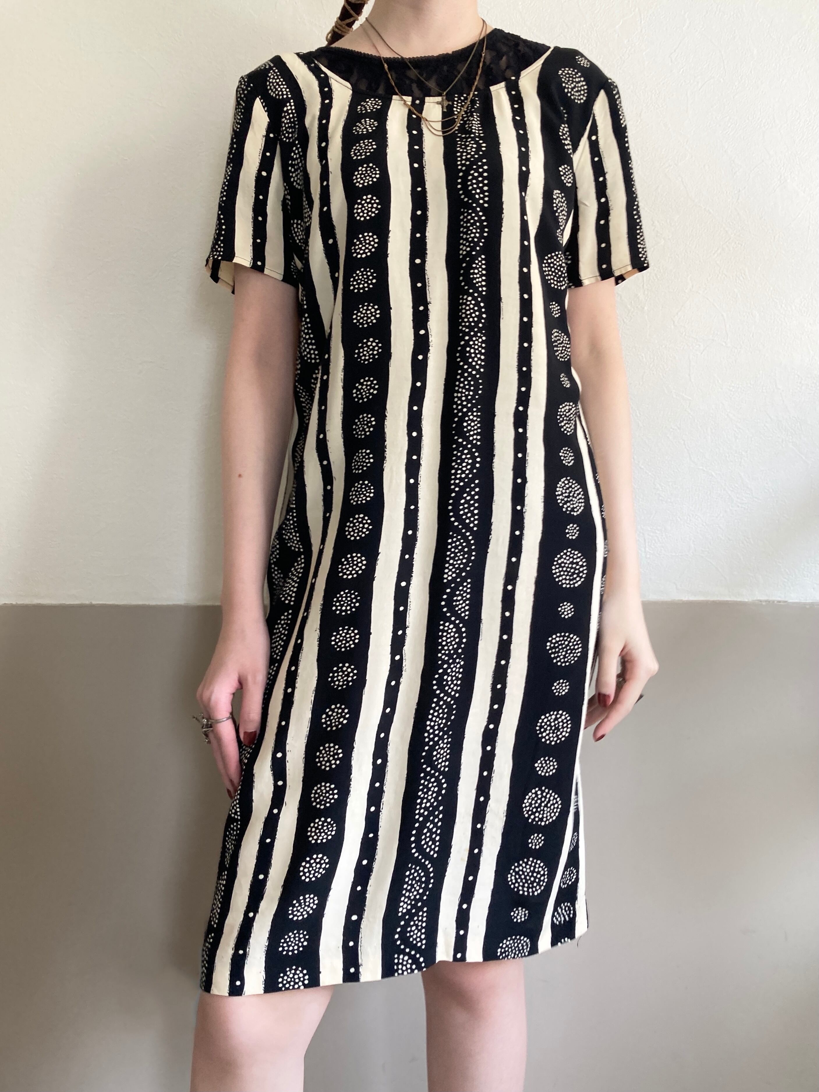 ハンドペイント風のストライプ柄とドットの組み合わせが楽しいプリント。