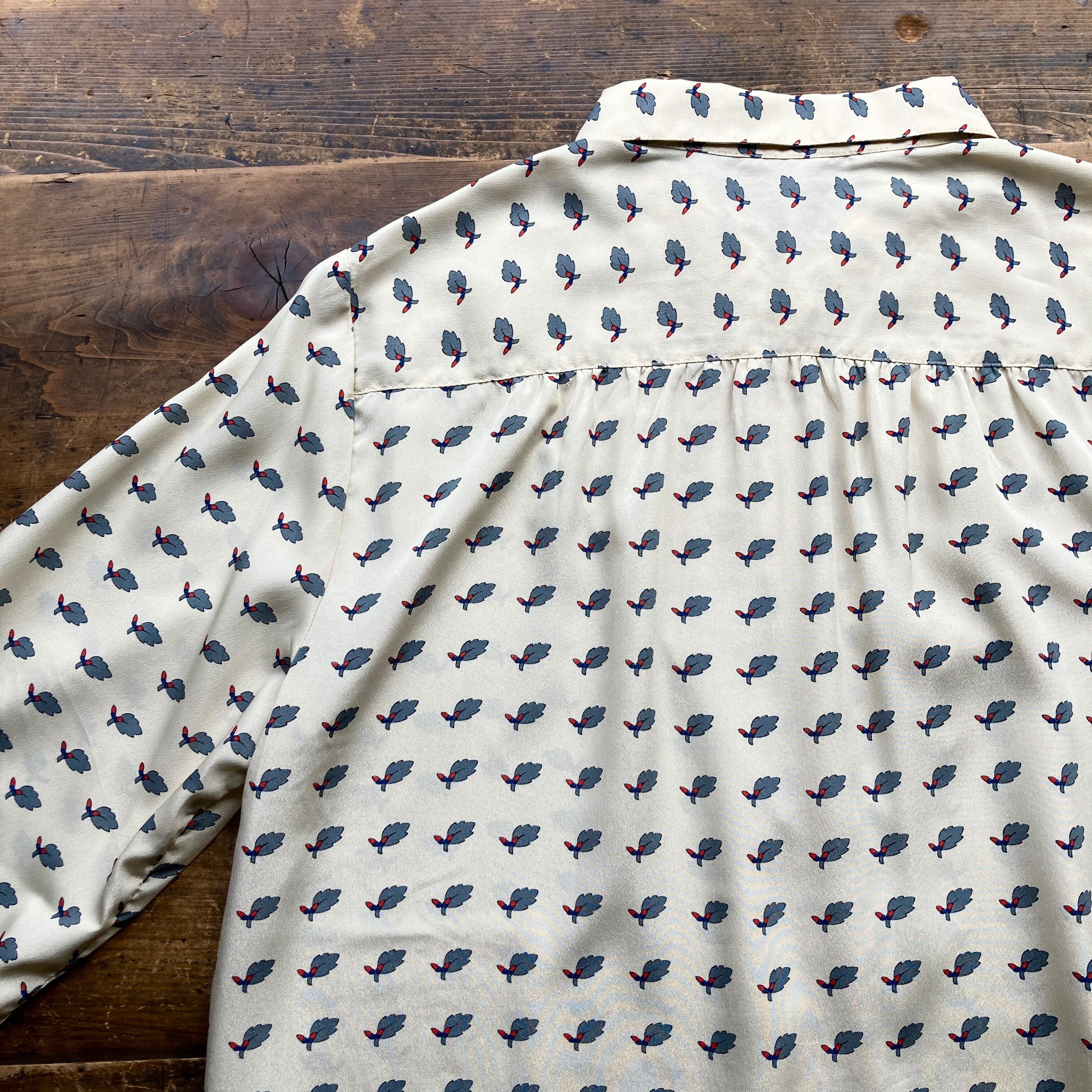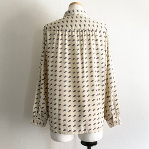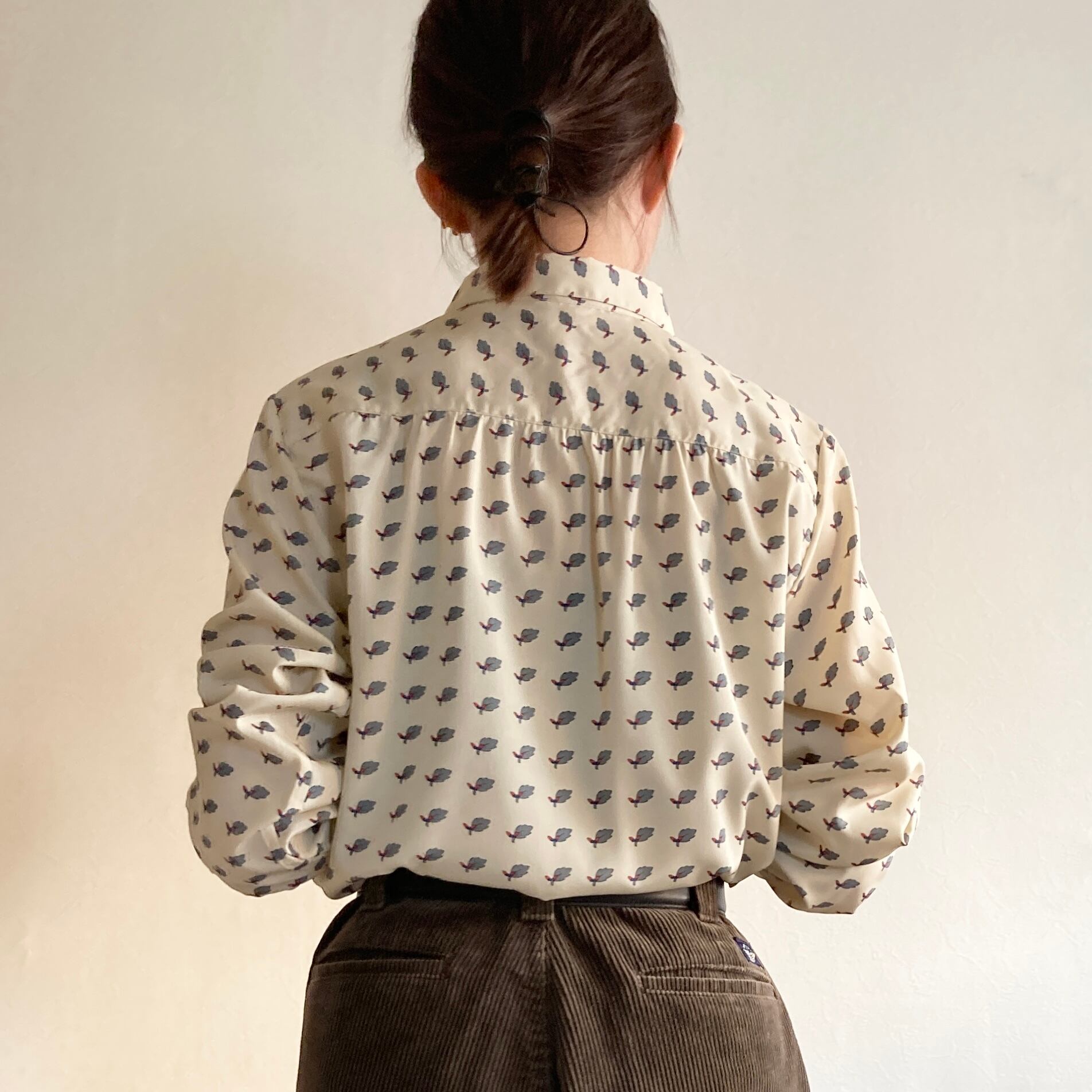 スクエアの小さなボタンや小ぶりな襟、バックの細かなギャザーなど繊細なディテールが盛り込まれたブラウス。
