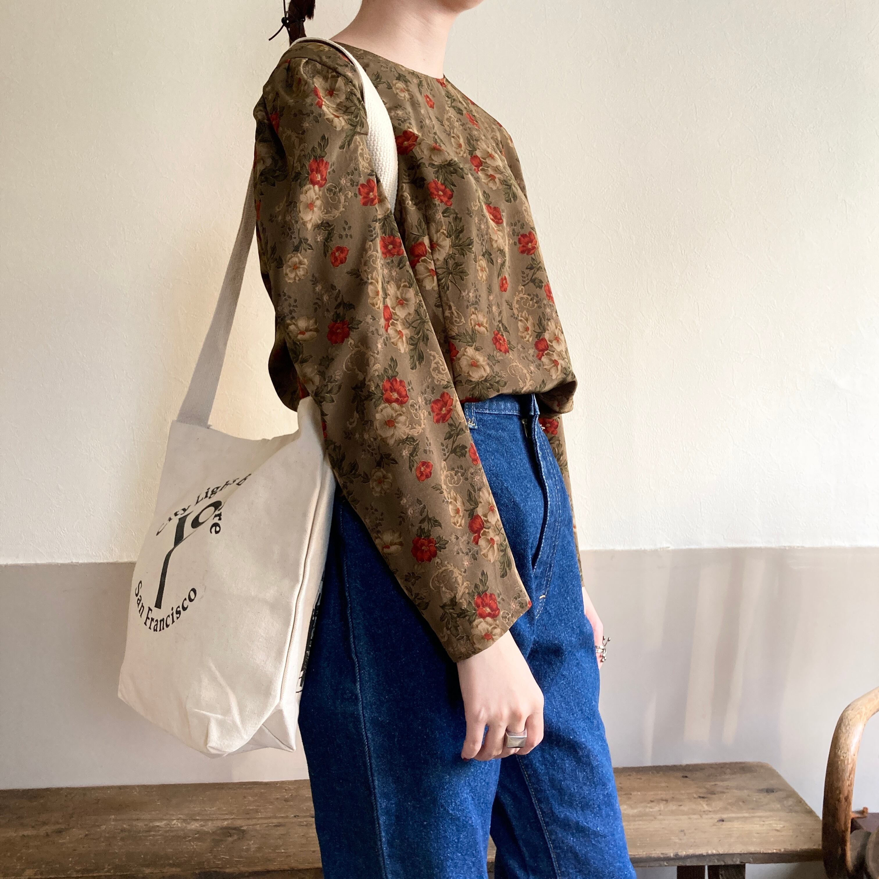 深みのある落ち着いたカラーリングのフラワーブラウス。