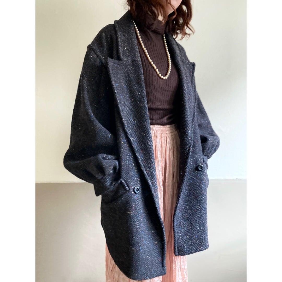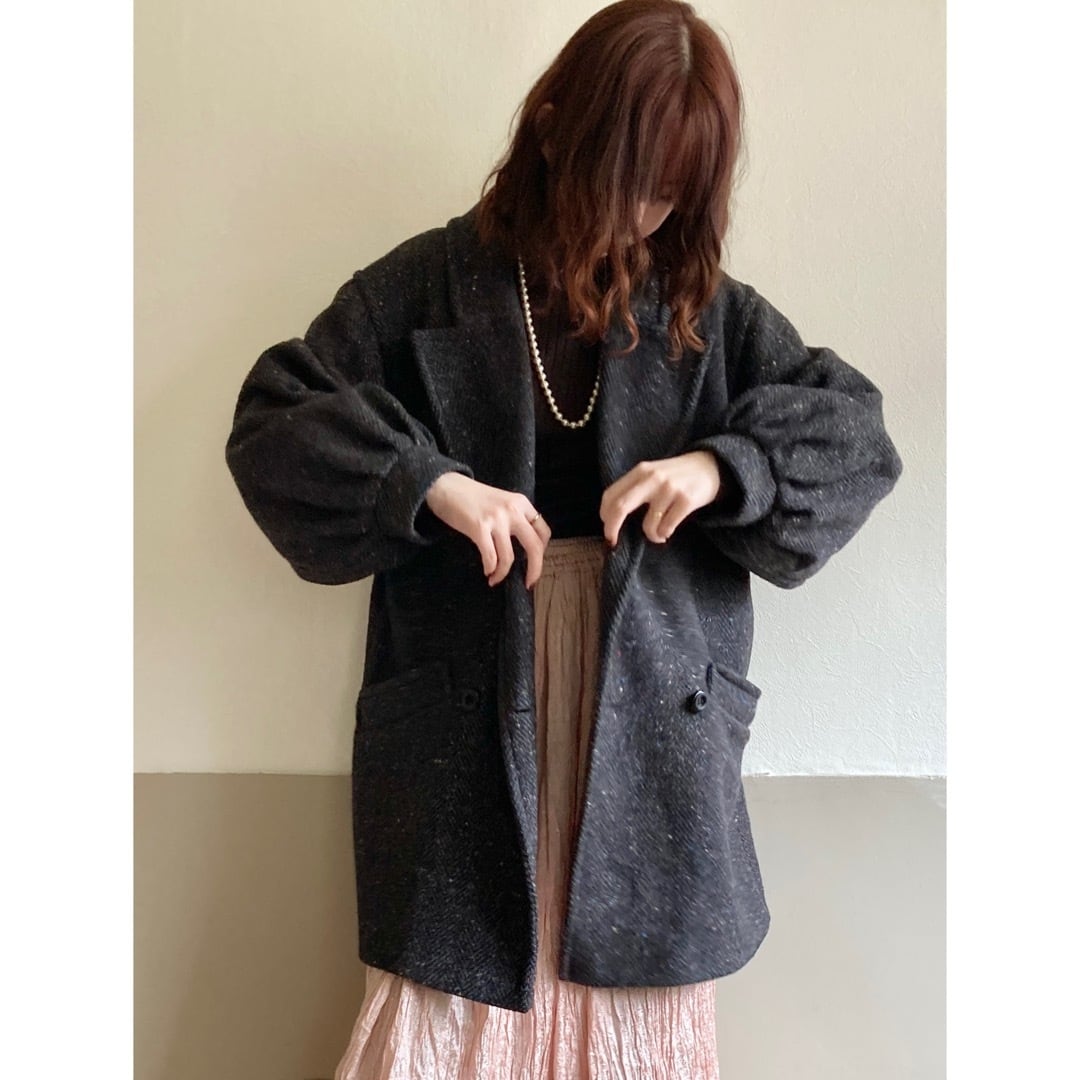ダブルブレストとパフスリーブが空気を纏うような独特なシルエット。