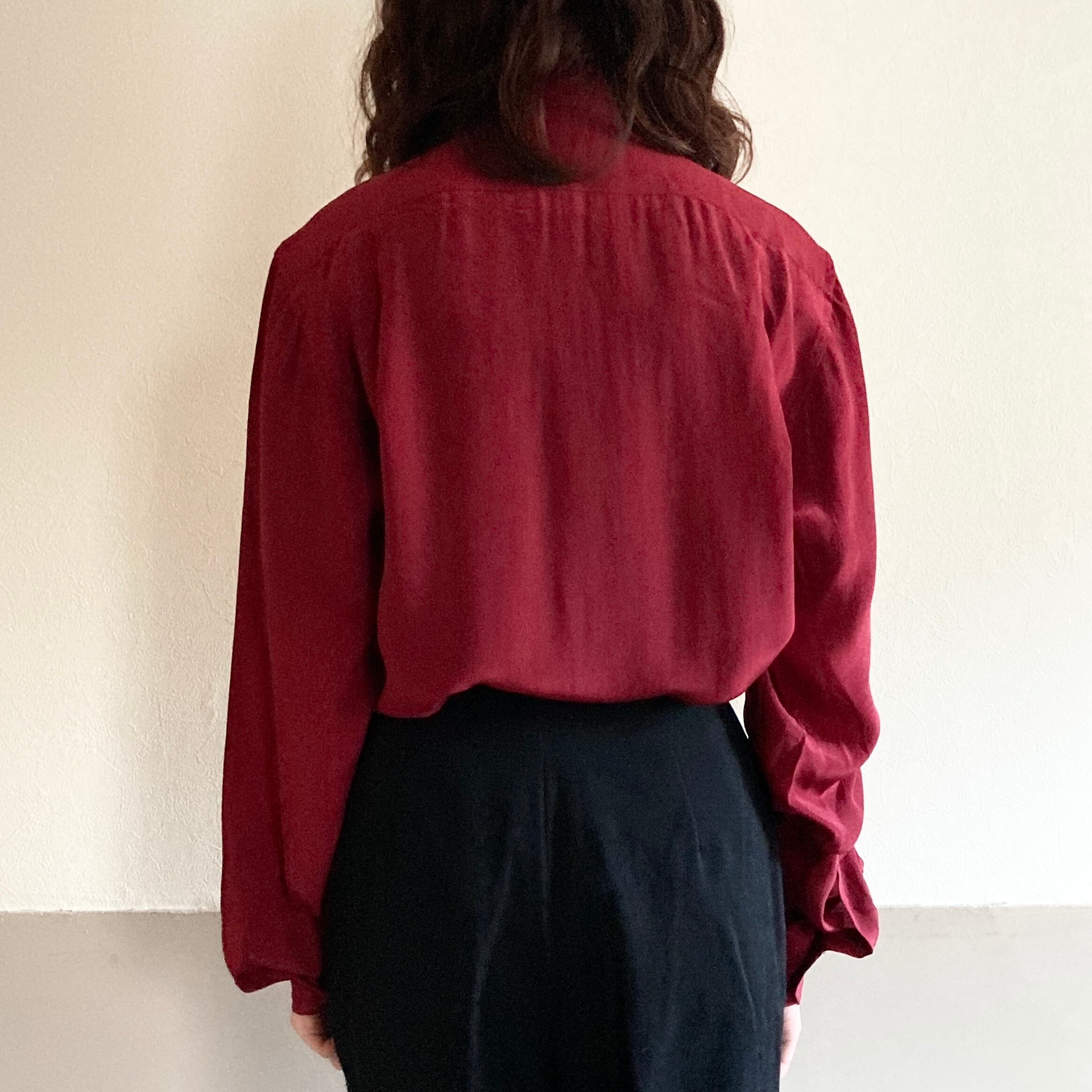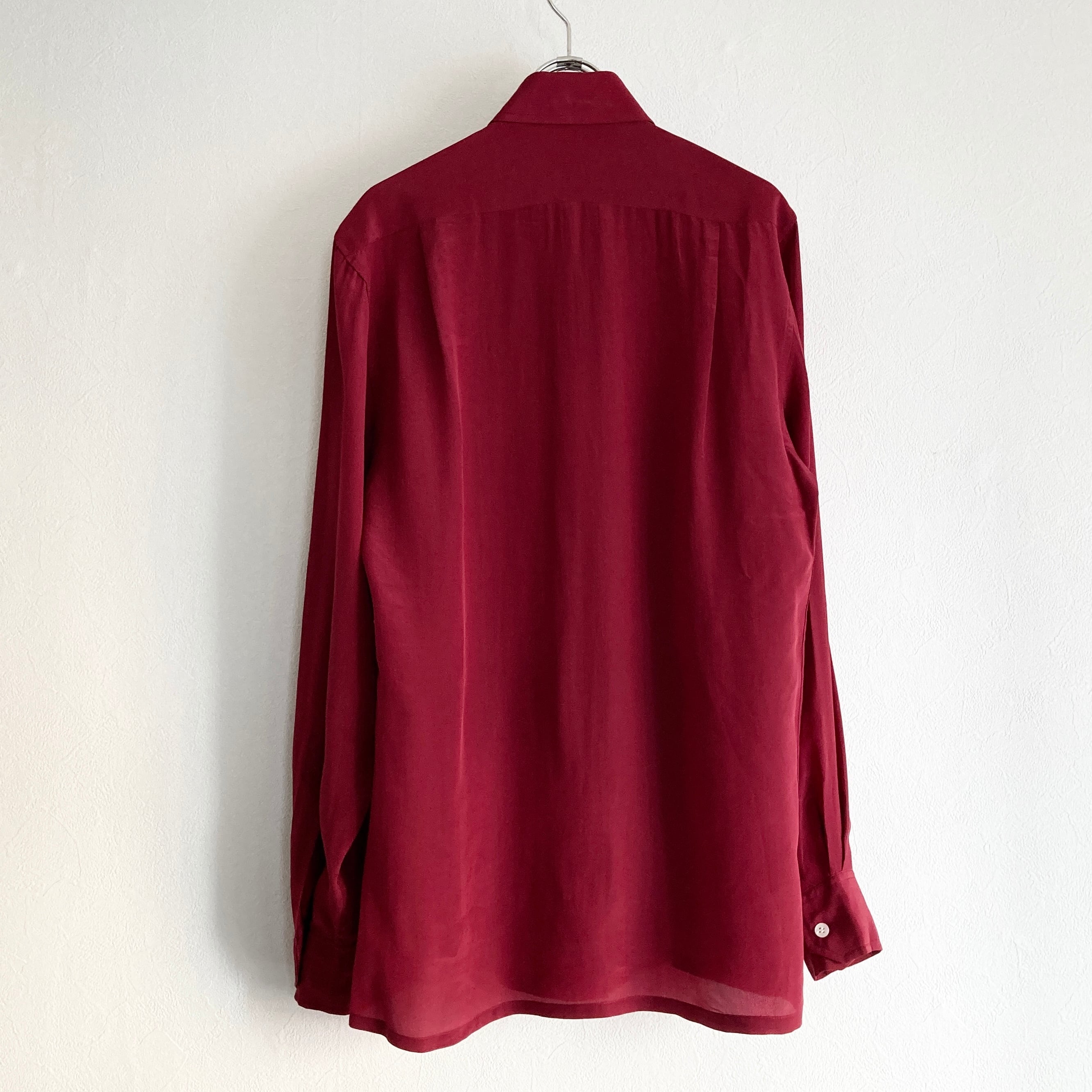 深みのある色彩と光沢が目を引くメンズ仕立てのシルクシャツ。